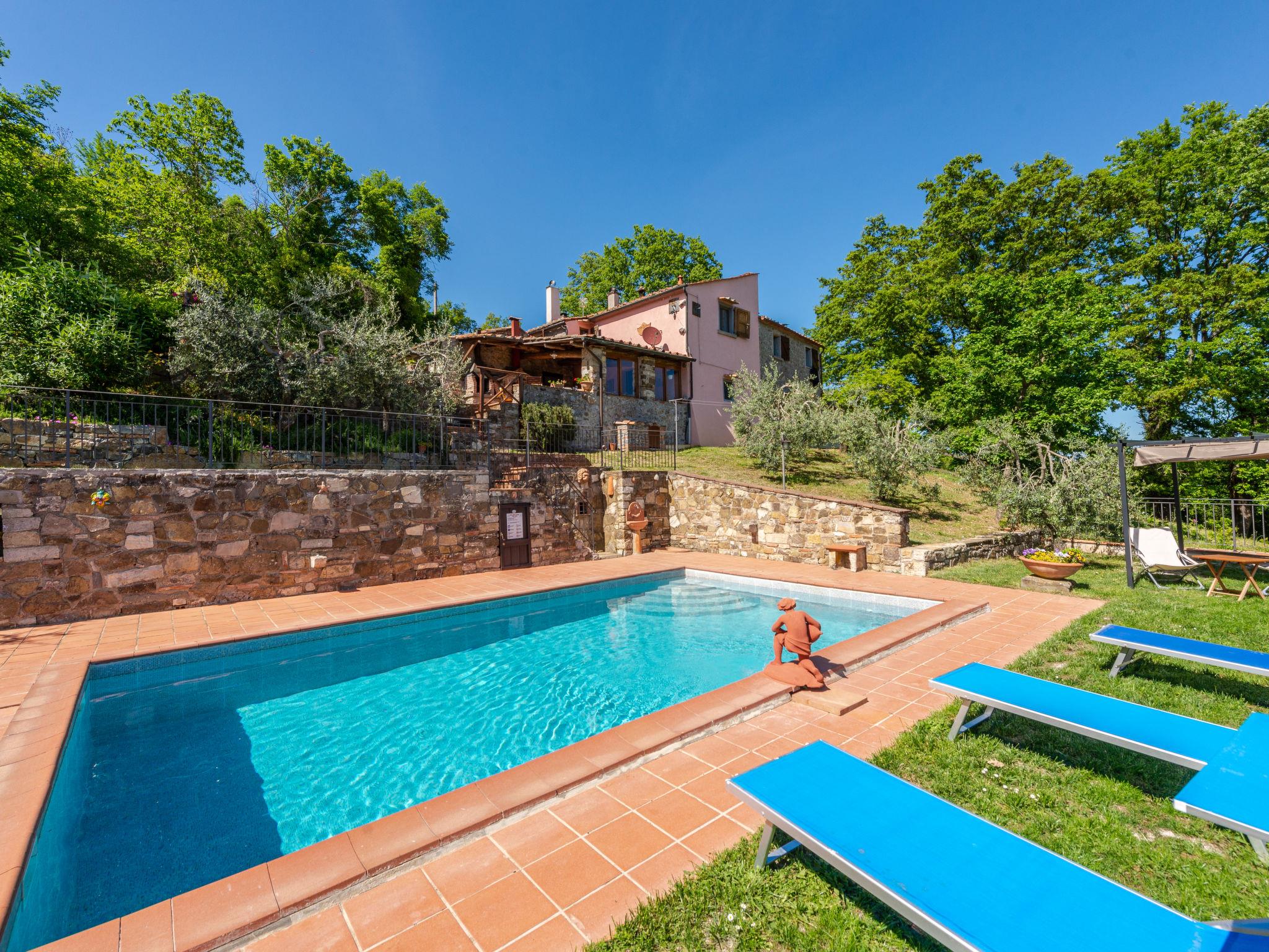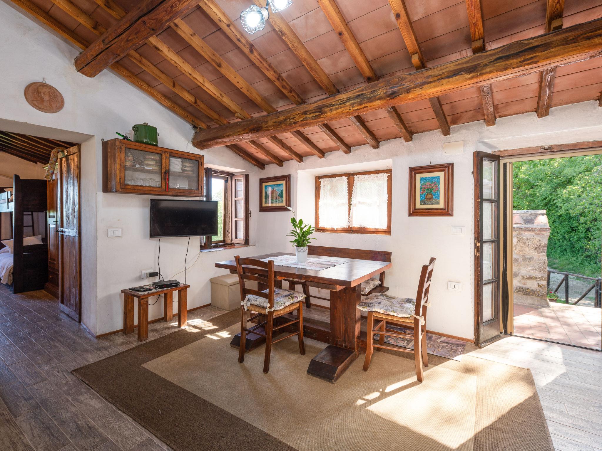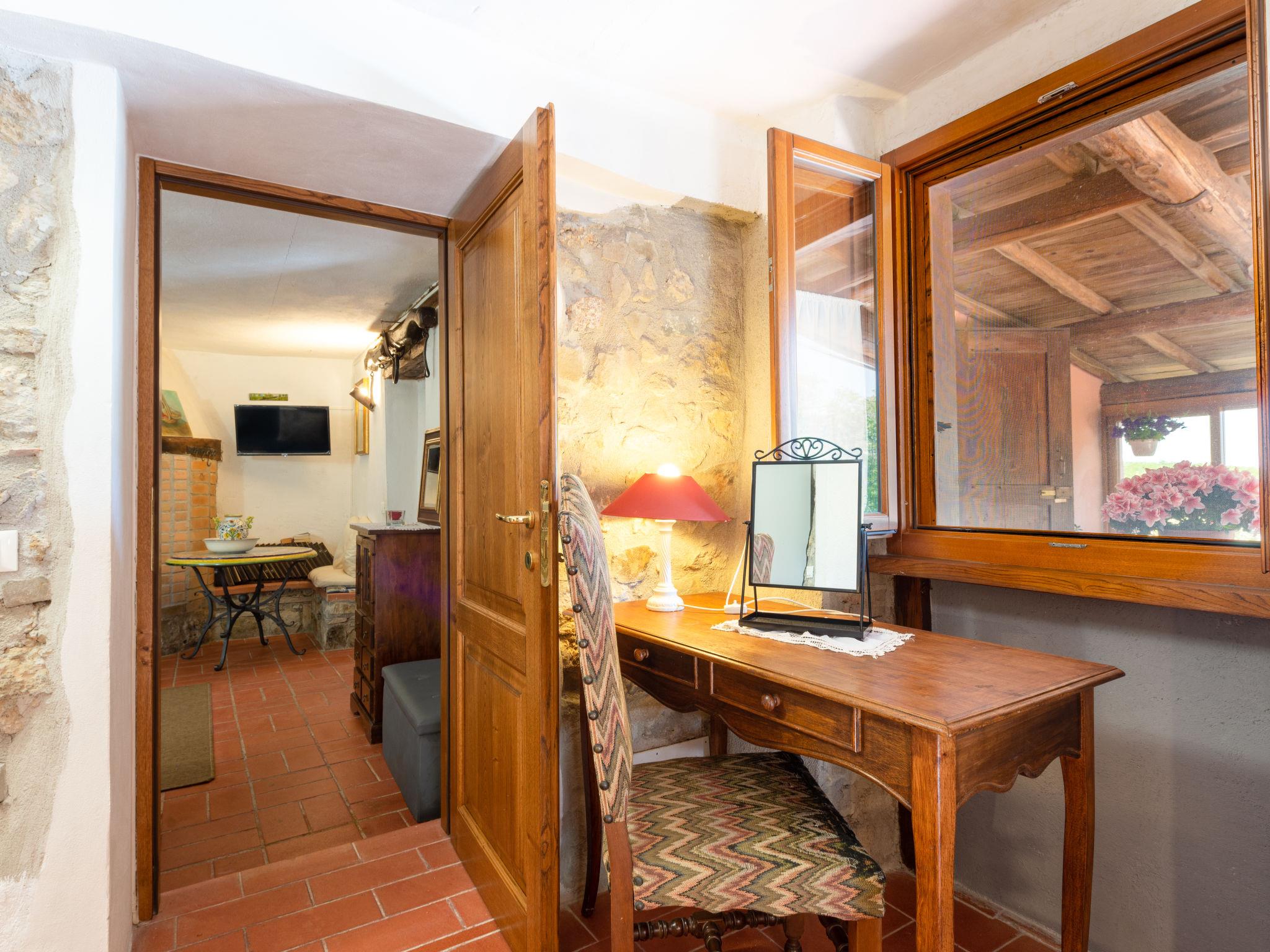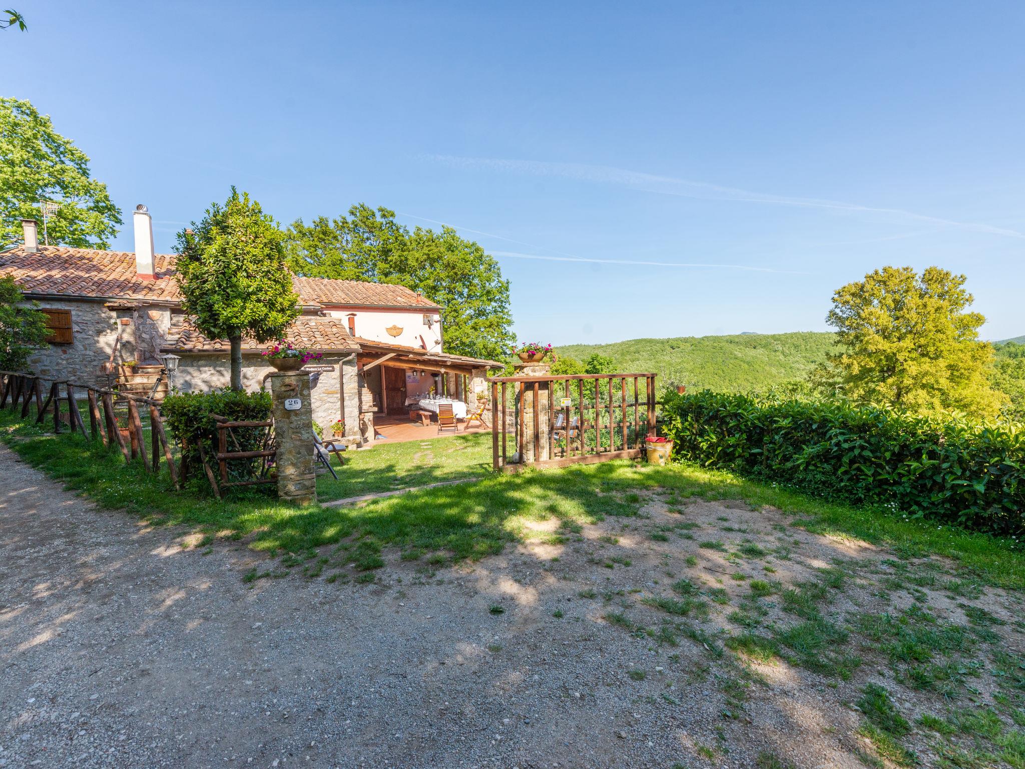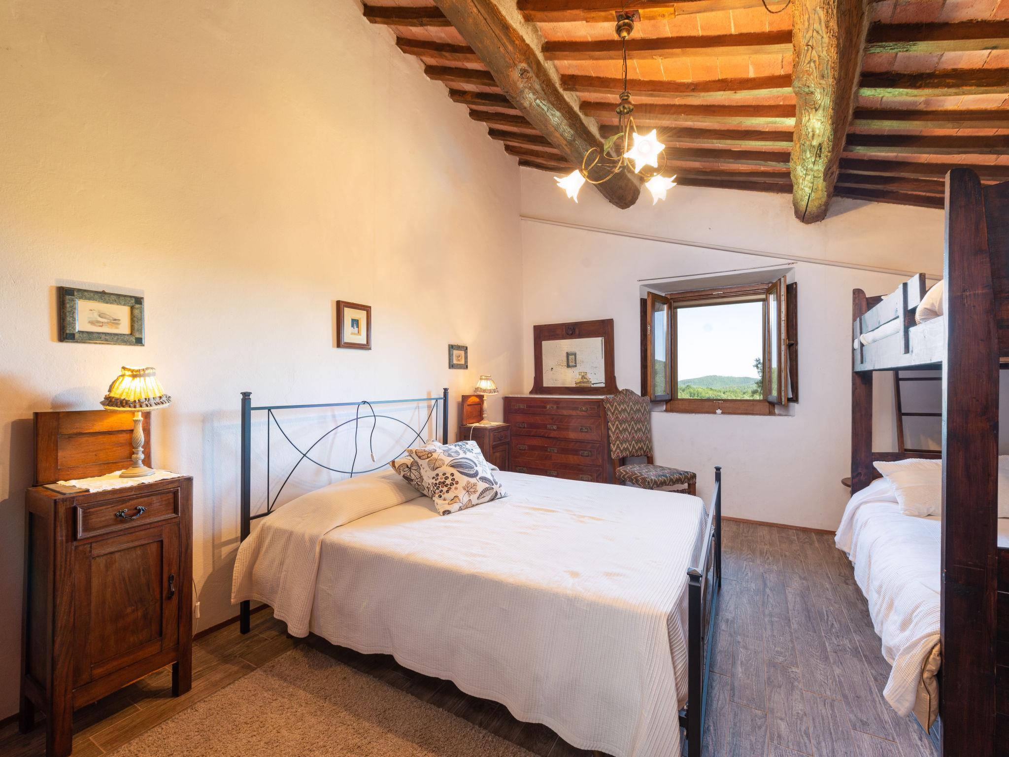 Rustic, comfortable cottage "La Casina", 2 storeys, terraced, surrounded by trees and fields. In the hamlet Montegusciani with 4 houses 4 km from the centre of Prata, 7 km from the centre of Boccheggiano, 17 km from the centre of Massa Marittima, on a slope, 25 km from the lake, in the countryside, in the woods. Private: property 350 m2 (fenced), terraced garden with trees, meadow, swimming pool (8 x 4 m, depth 140 - 180 cm, seasonal availability: 15.May. - 30.Sep.). Outdoor shower, pool maintenance by the owner/gardener. In the house: washing machine. 800 m long bumpy motor access (via unmade road). Parking (for 3 cars). Shop 4 km, grocery 4 km, restaurant 4 km, bar 4 km, bus stop 2.5 km, railway station "Follonica" 35 km, sandy beach "Follonica" 35 km. Riding stable 9 km, walking paths from the house 10 m. Nearby attractions: San Galgano Abbey 16 km, Giardino dei Suoni 5 km. Well-known lakes can easily be reached: Accesa 23 km. Hiking paths: Mountain-bike 9 km.