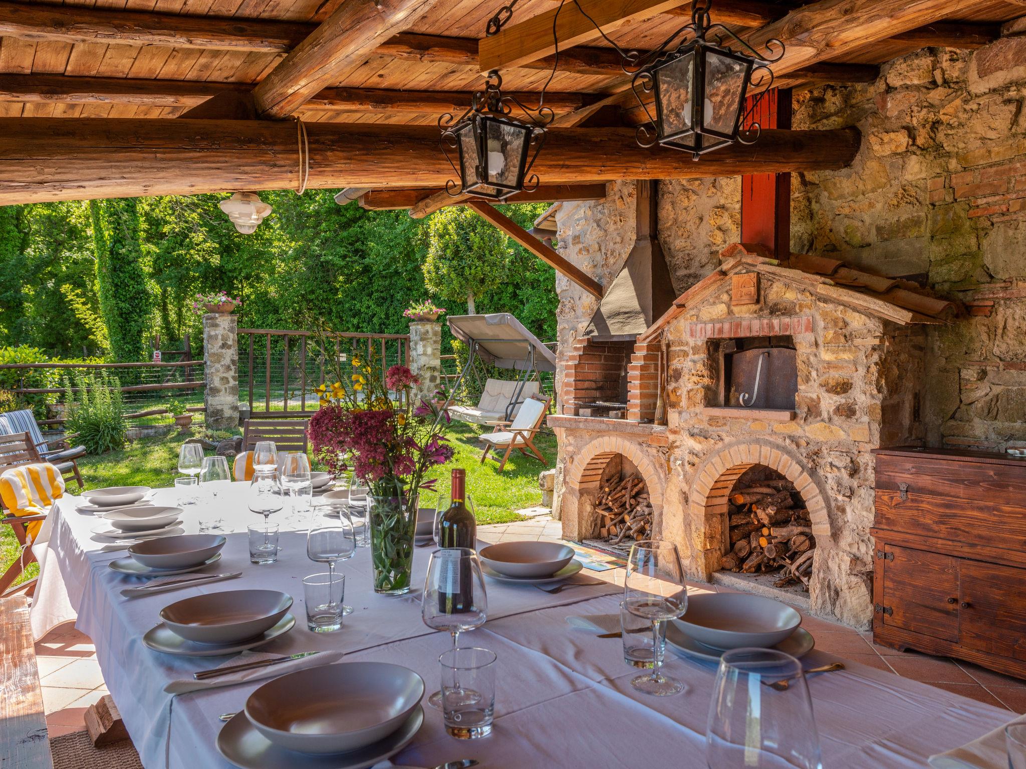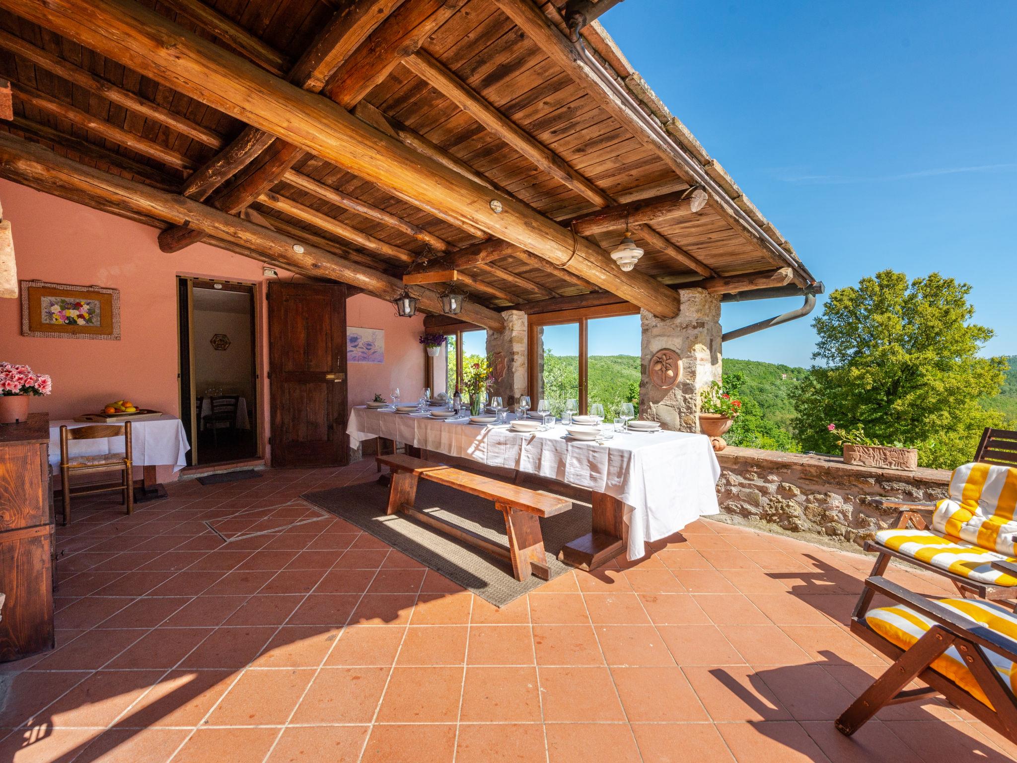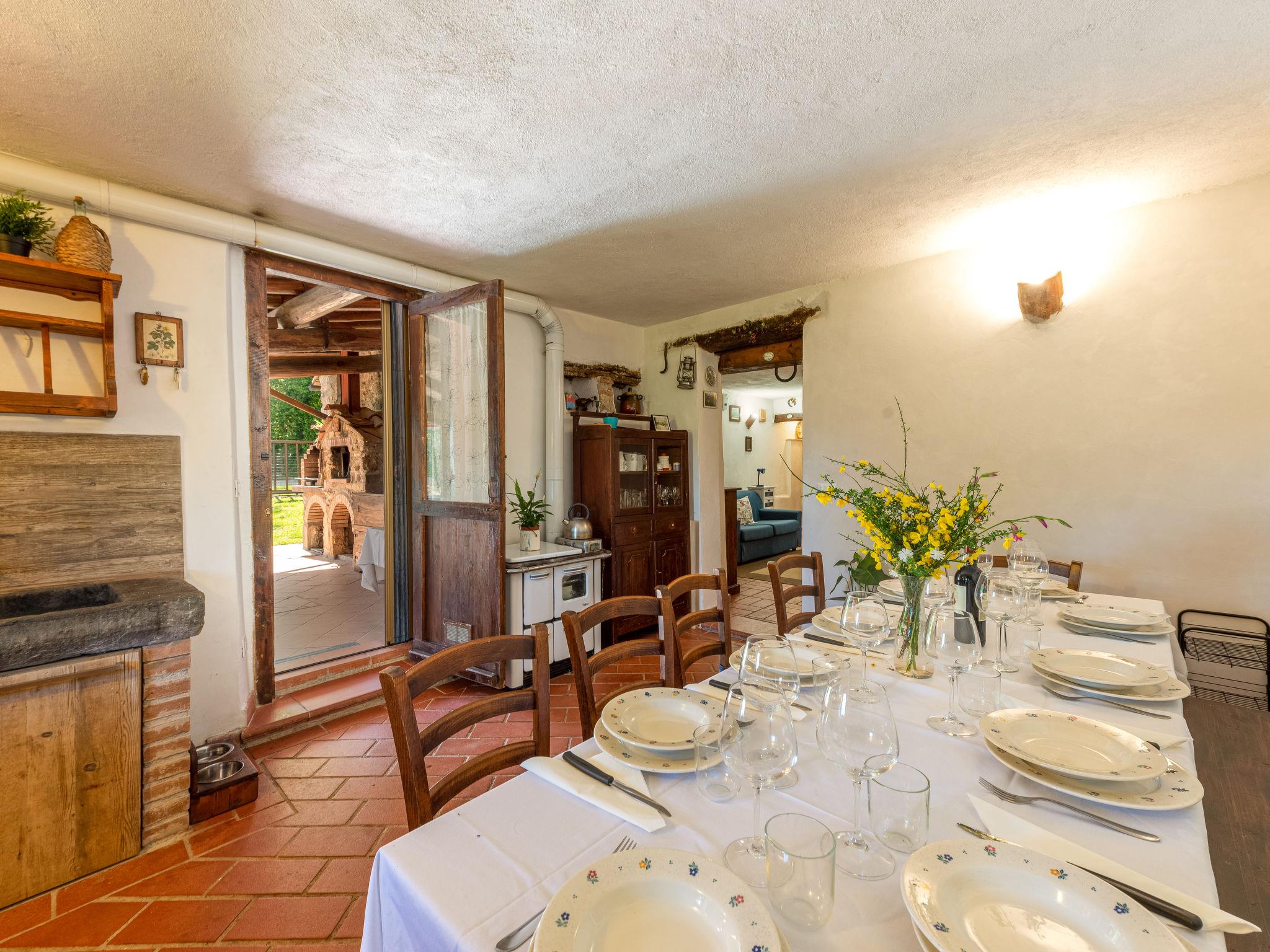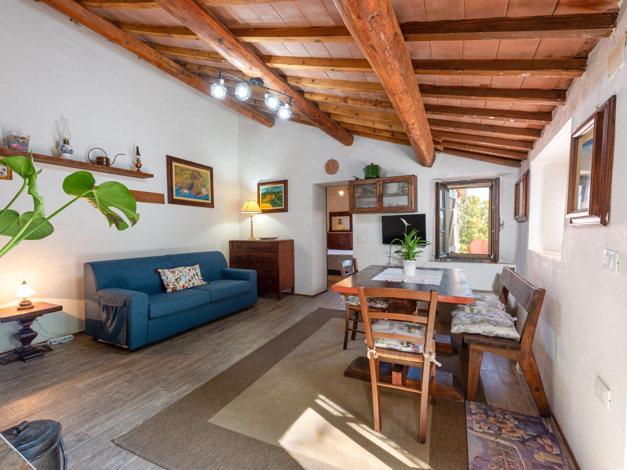 4-room semi-detached house 100 m2 on 2 levels. Comfortable and rustic furnishings: living/sleeping room with 1 double sofabed, open-hearth fireplace and satellite TV. 1 open small room with 1 bed (80 cm), shower/WC. 1 room with 1 double bed. Open kitchen (oven, dishwasher, 4 gas rings, toaster, kettle, freezer, electric coffee machine) with dining table and wood-burning stove. Exit to the terrace. Upper floor: (exterior staircase) living/sleeping room with 1 double sofabed, open-hearth fireplace, dining table and heating stove. Exit to the terrace. 1 room with 1 x 2 bunk beds (80 cm), 1 double bed. Kitchen (mini-oven, 4 induction hot plates, kettle). Shower/bidet/WC. Wood heating. Heating not available in all rooms. Natural stone floors. Terrace roofed. Barbecue, deck chairs (4). Panoramic view. Facilities: washing machine, iron, children's high chair, baby cot. Internet (WiFi, free). Please note: non-smokers only. Maximum 3 pets/ dogs allowed. No internal connecting door between the floors. IT053015C2LUP53ZO5