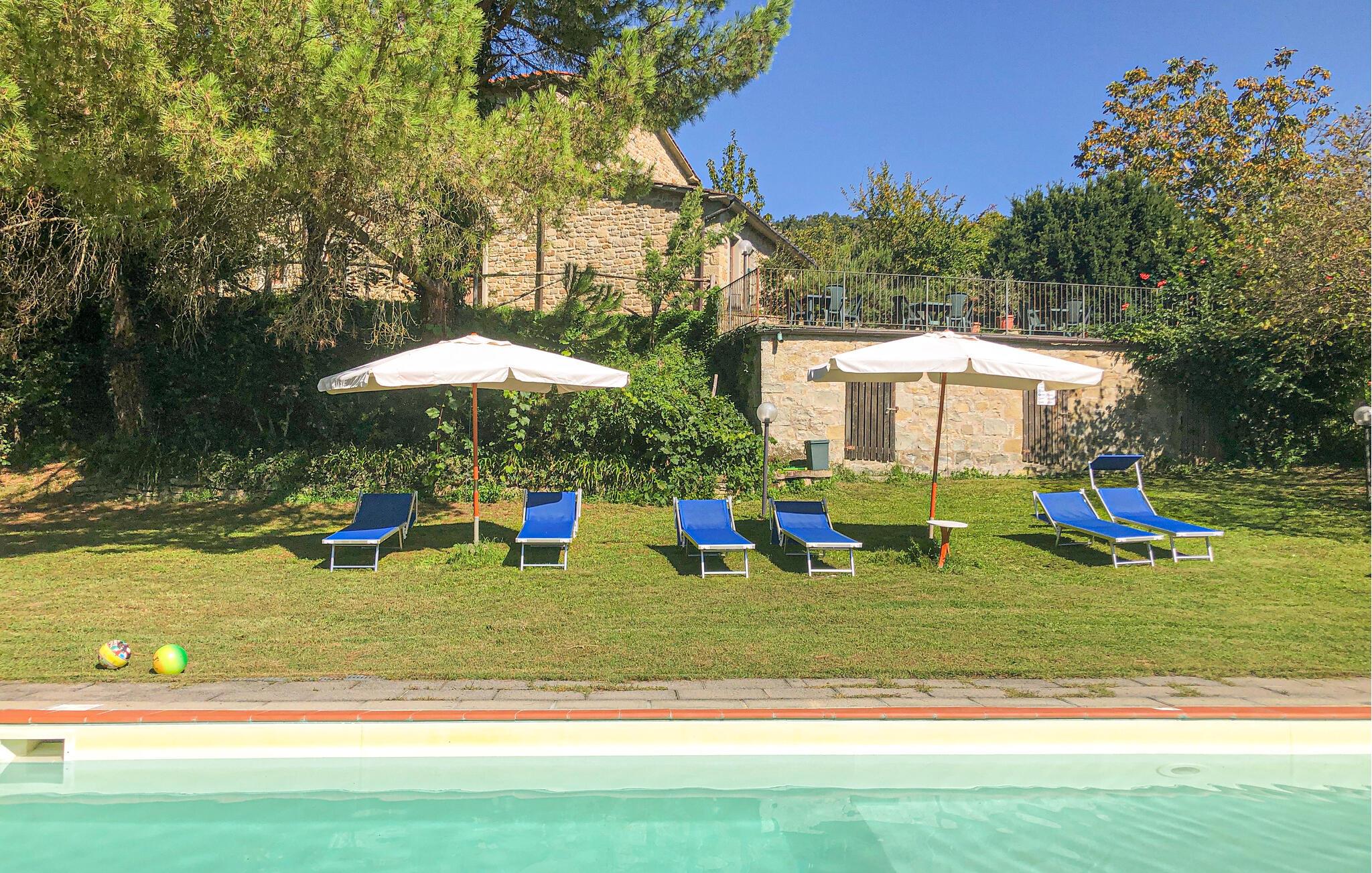 Lad batterierne op midt i det toscanske landskab, hvor dette charmerende feriehus med masser af plads, privatliv og autentisk landstedsstemning venter på jer. Nyd den varme atmosfære af de traditionelle materialer indeni. De fritlagte træbjælker, den store brændeovn og møblerne med et rustikt præg skaber en indbydende atmosfære. Slap af i stuen på de komfortable møbler eller tilbring omgængelige aftener med et glas vin.