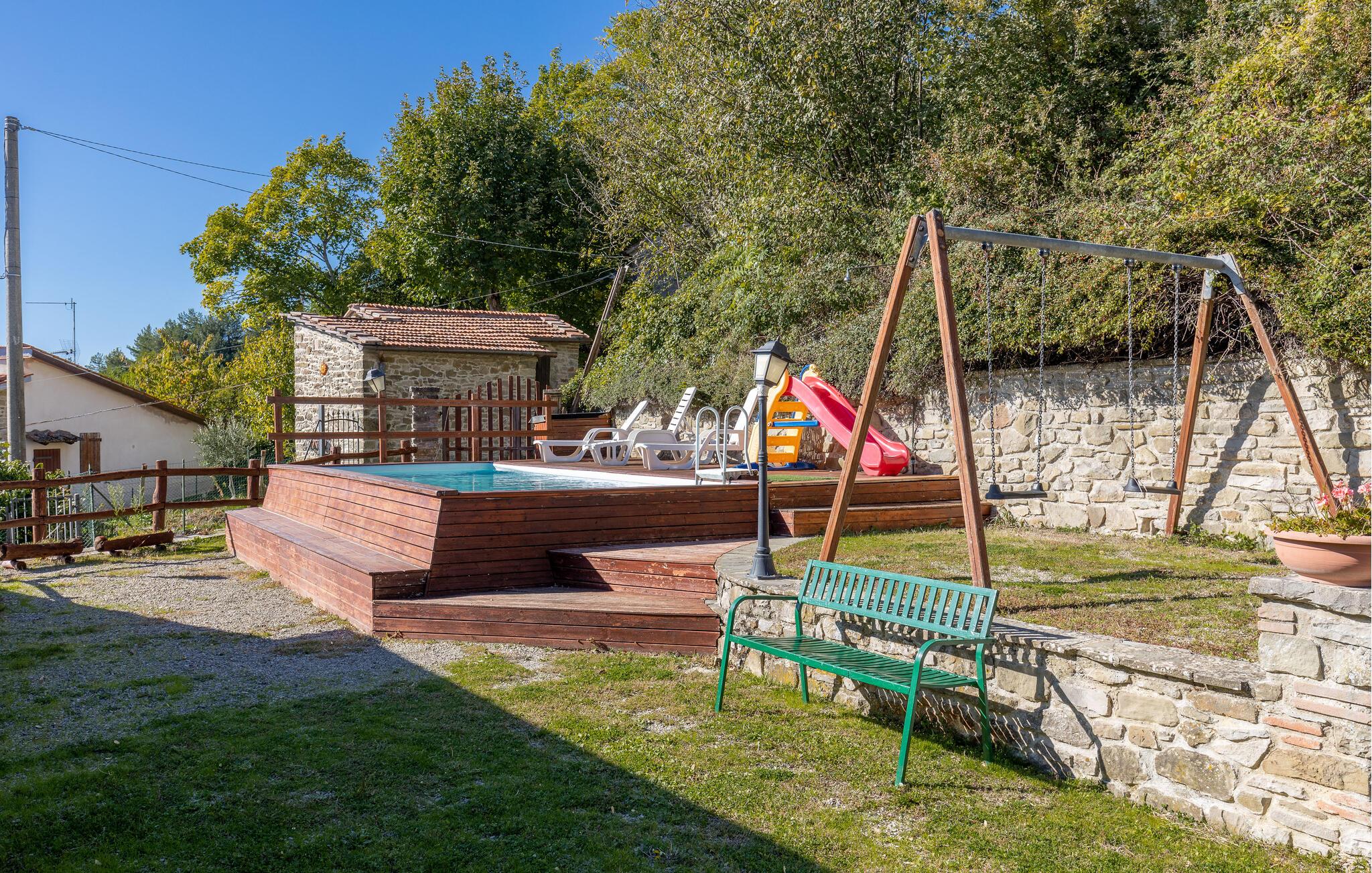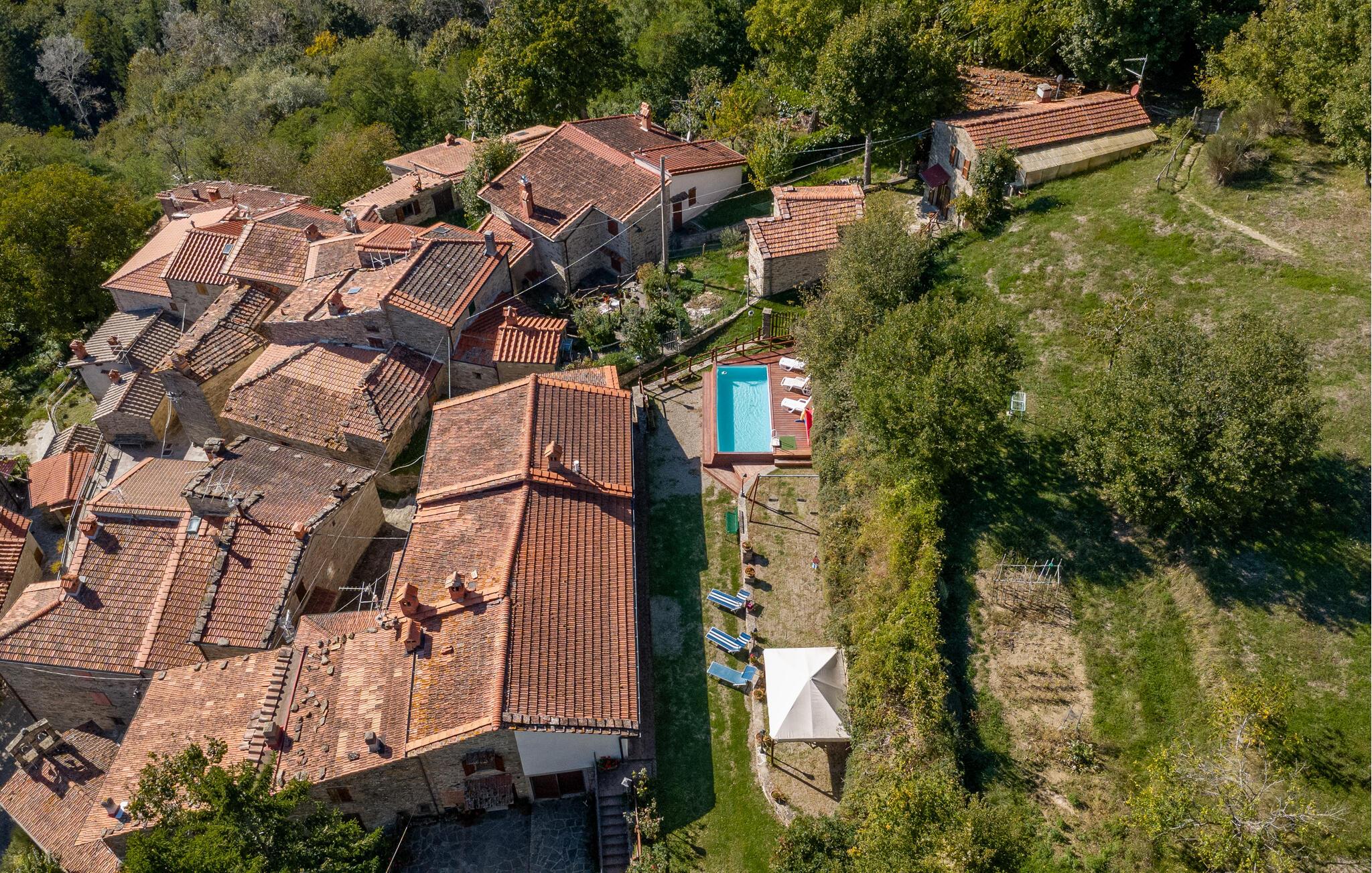 Stedet er ideelt til både afslapning og sportsaktiviteter: til trekking og mountainbiking gennem skoven i Casentino Naturpark med dets middelalderlige slotte og klostre; klosteret Camaldoli er særligt charmerende, kun 9 km over i bjergene. I Pratovecchio, 6 km væk, kan I få alt hvad I behøver til daglig brug, herunder cykeludlejning, ridning og togforbindelser til Arezzo. I Stia er der et vandland i den stadig unge Arno (9 km), hvor svømning er særlig sjov. Både Arezzo (45 km) og Firenze (55 km) kan nemt nås herfra.