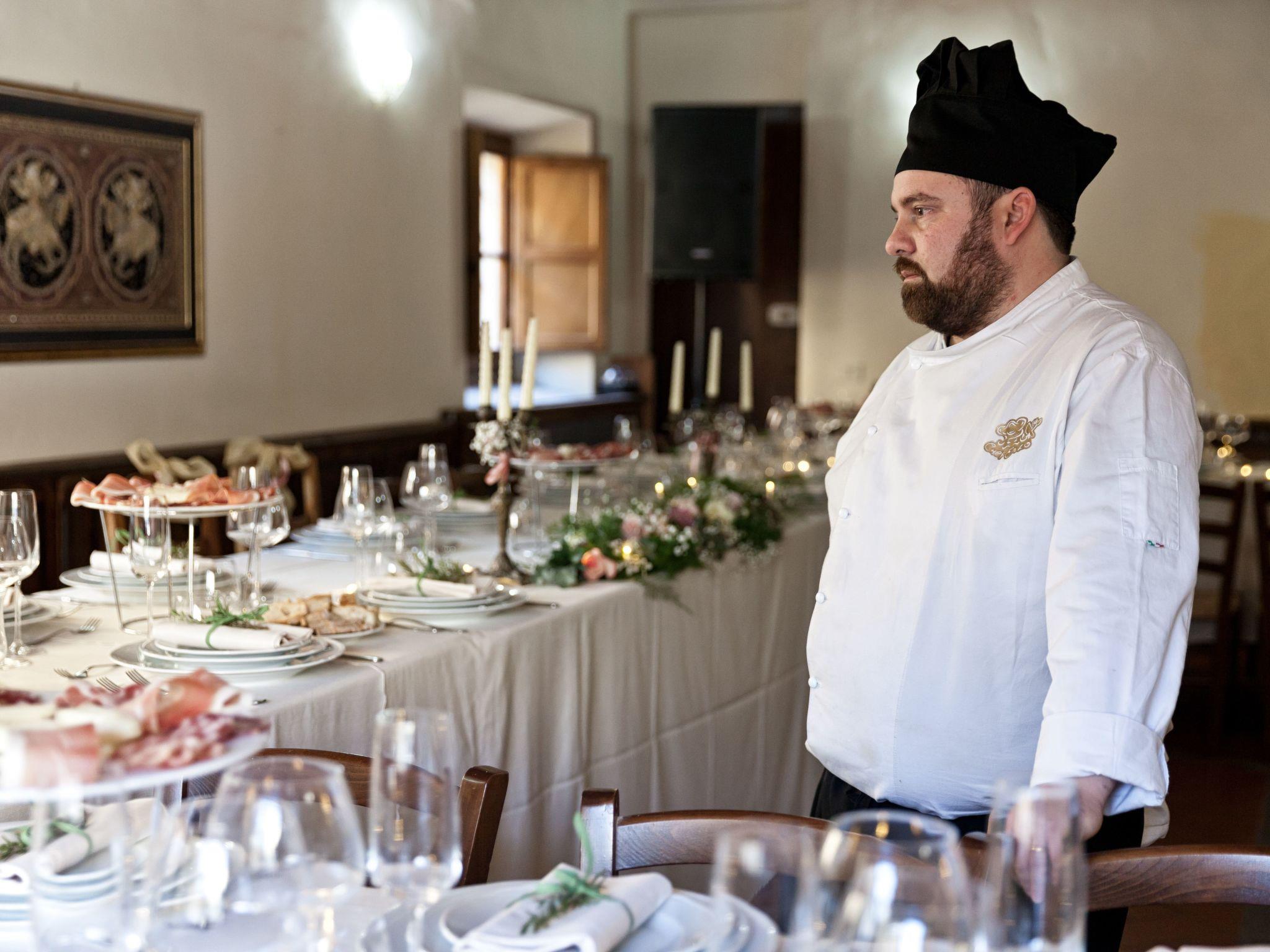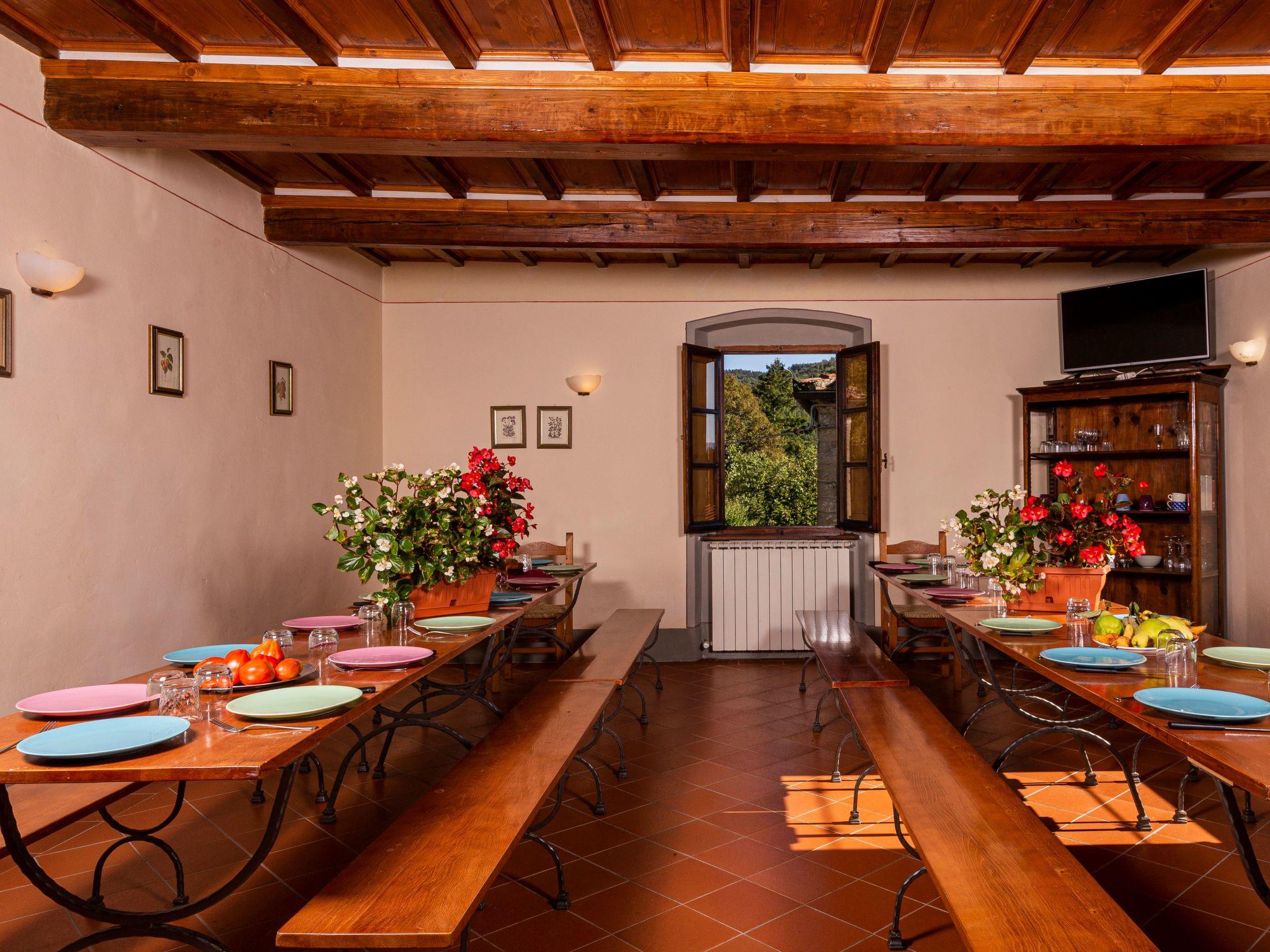 During the renovation of the villa in 2003, the decorations on the walls, the ceilings with wooden beams and the terracotta floors (some of which are still the ancient original floors) have regained their former glory. The villa is partially furnished with antique furniture. The single beds can be pushed together to form double beds. Bread can be delivered upon request (Monday, Wednesday, Friday, price depends on local order). A surprise awaits guests every week. The villa is ideal for family reunions, friends or club reunions, courses (painting, music, yoga, etc.), sports clubs and much more. It is also the perfect backdrop for weddings, as Casalino has a church where religious weddings can be celebrated and Poppi has a beautiful medieval castle where civil weddings can be celebrated. In the event that the wedding celebrations cannot take place outdoors due to bad weather, it is possible to use the rooms in the basement (blue zone in exposé).