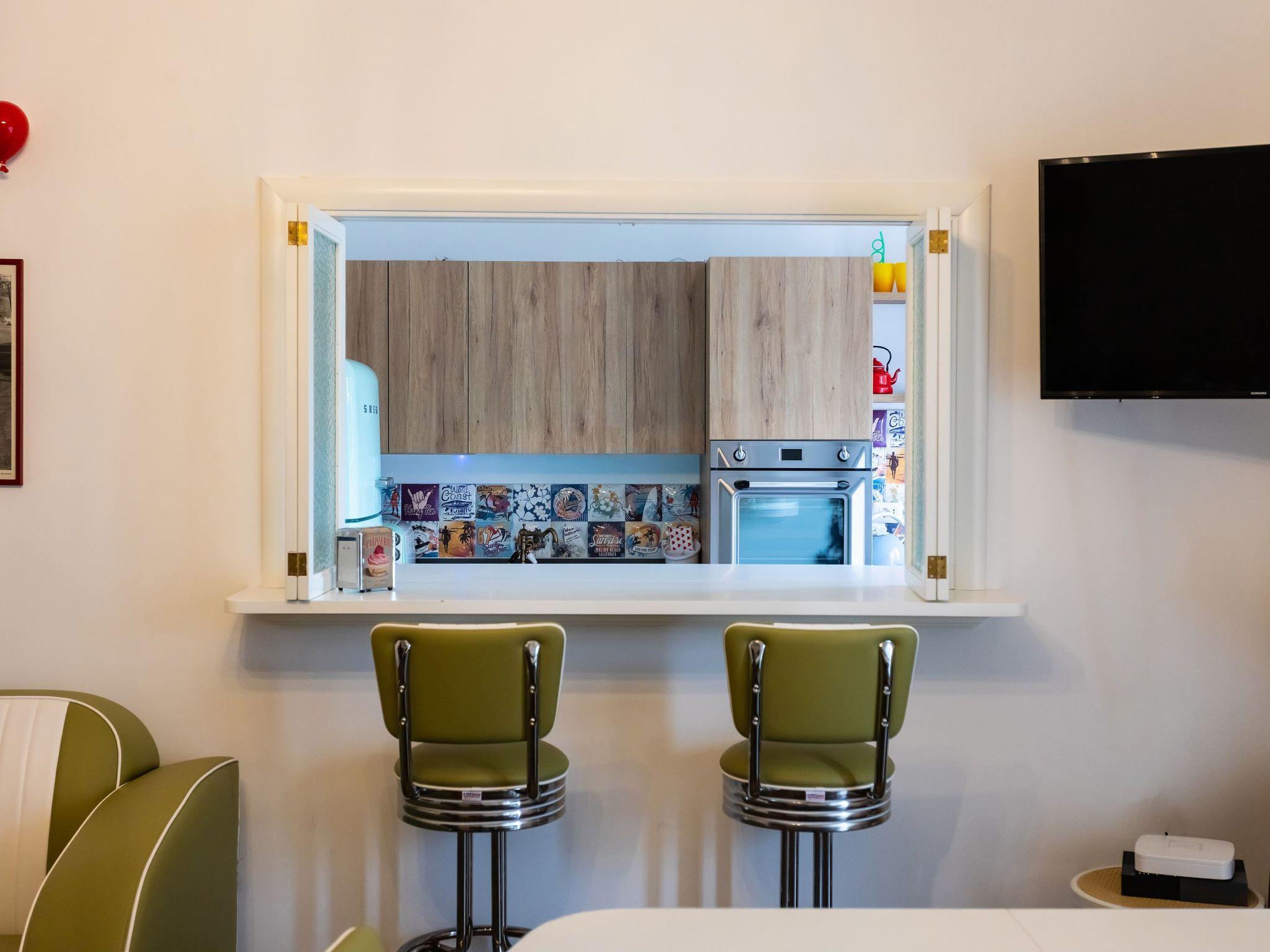 Discover the retro charm of 1950s America in this meticulously appointed flat, where comfort meets the vibrant, colourful style of the era. Located on a quiet side street and positioned on the first floor easily accessible by lift, this architectural gem is the perfect urban retreat for those seeking an escape from the daily grind without sacrificing comfort and elegance.