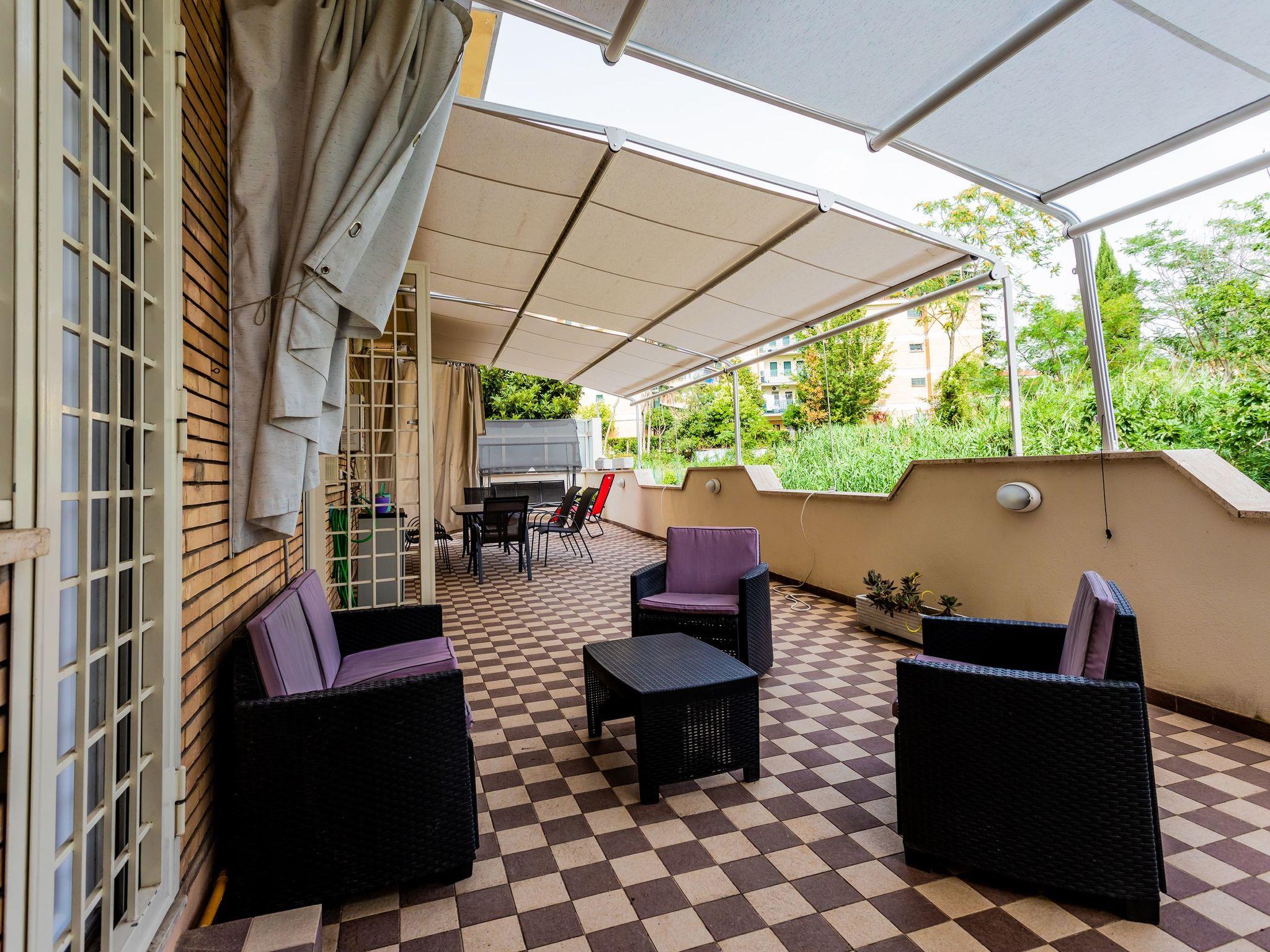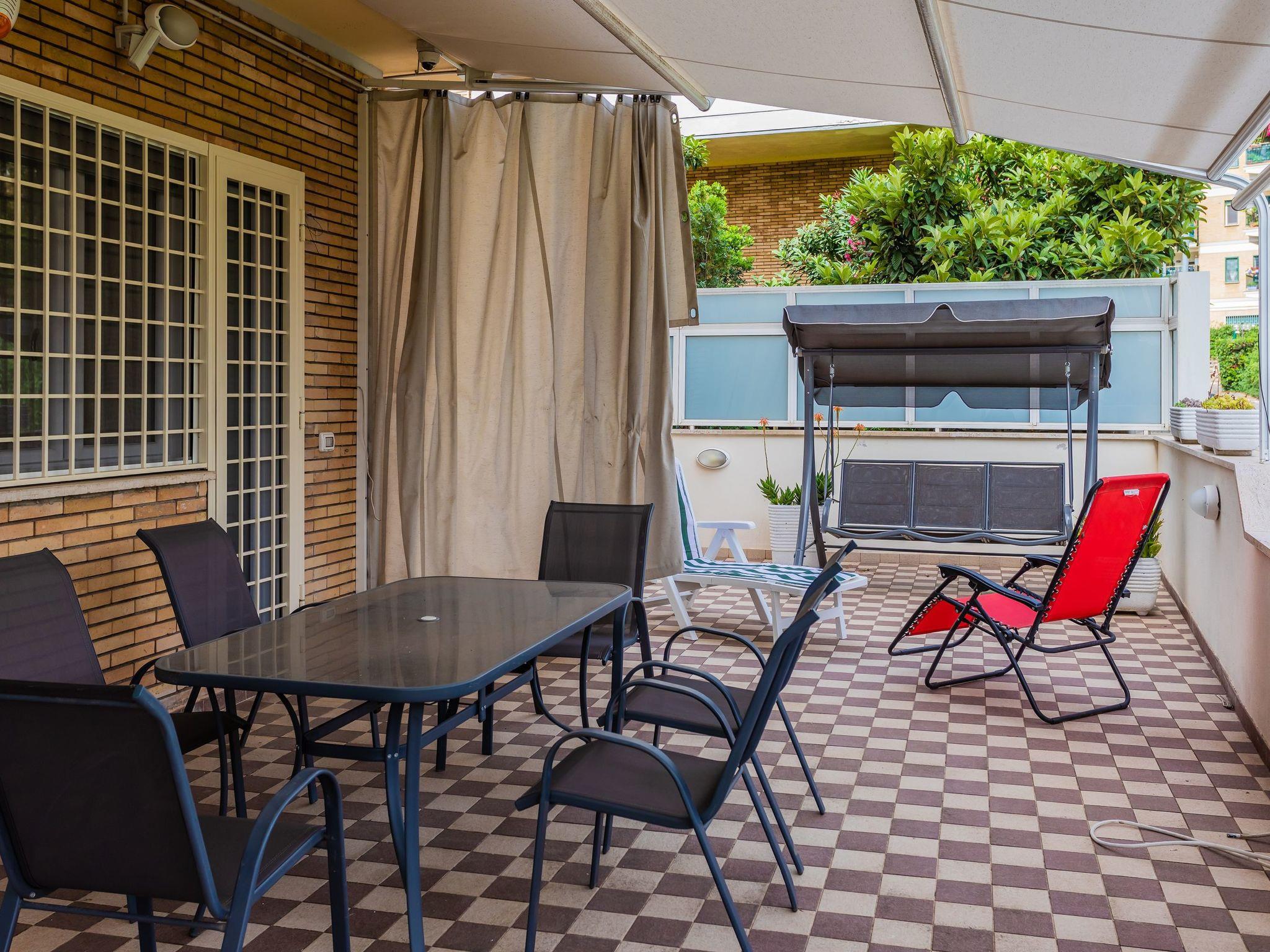 The outdoor area is equally impressive: a large furnished terrace that promises unforgettable moments, from peaceful awakenings with breakfast outdoors to aperitifs or dinners under the stars, all embraced by a serene view of a green area. This space is a true invitation to relax and enjoy the beauty that each day has to offer.