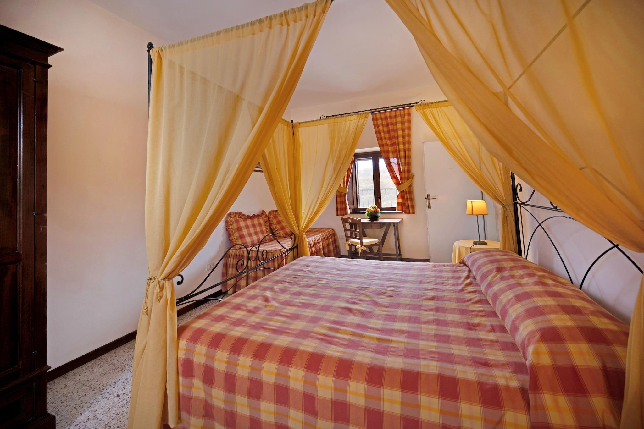 Træd ind i charmen fra en svunden tid i dette autentiske palæ i Prodo, Umbrien. Med sin vintage-arkitektur og naturskønne atmosfære føles hjemmet som taget direkte ud af en historisk film. Perfekt til store familier eller grupper på op til 16 gæster, det har en dejlig have med havemøbler, en ideel ramme for udendørs måltider eller rolige øjeblikke under vinstokkene. Denne store ejendom tilbyder komfort og karakter for dem, der ønsker at slappe af midt i naturen. Palæet strækker sig over flere etager med rummelige soveværelser møbleret med dobbelt- og enkeltsenge og flere badeværelser for nemheds skyld. Kælderen indeholder en hyggelig stue med pejs og et stort køkken udstyret med emhætte, ovn, opvaskemaskine og køleskab. Underholdning er aldrig langt væk takket være opholdsrummet med bordfodbold, legeredskaber og selskabsspil. En terrasse og have fuldender udendørstilbuddene, og dine lodne ledsagere er velkomne til at deltage i dit ophold. Beliggende i en fredelig landsby er beliggenheden perfekt til vandreture i naturen, cykling og dagsture til maleriske steder som Canonica, Fontanelle Di Bardano og Rocca Ripesena. Både Bolsenasøen og Corbarasøen ligger inden for nem køreafstand. Du finder også restauranter og supermarkeder i nærheden, hvilket gør det nemt at nyde lokal mad eller købe dagligvarer.
