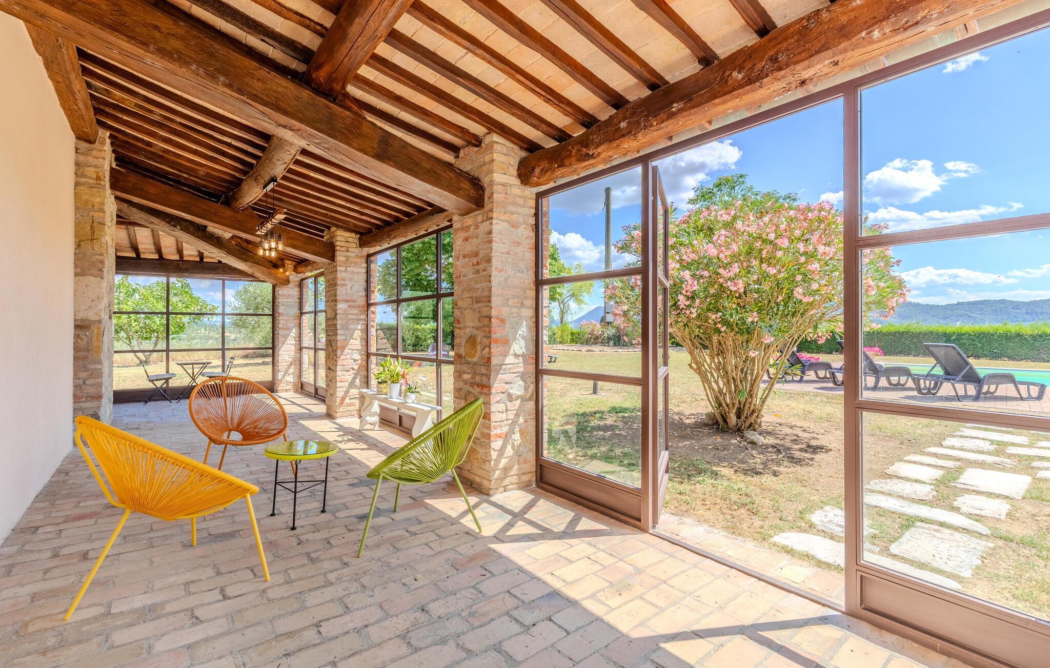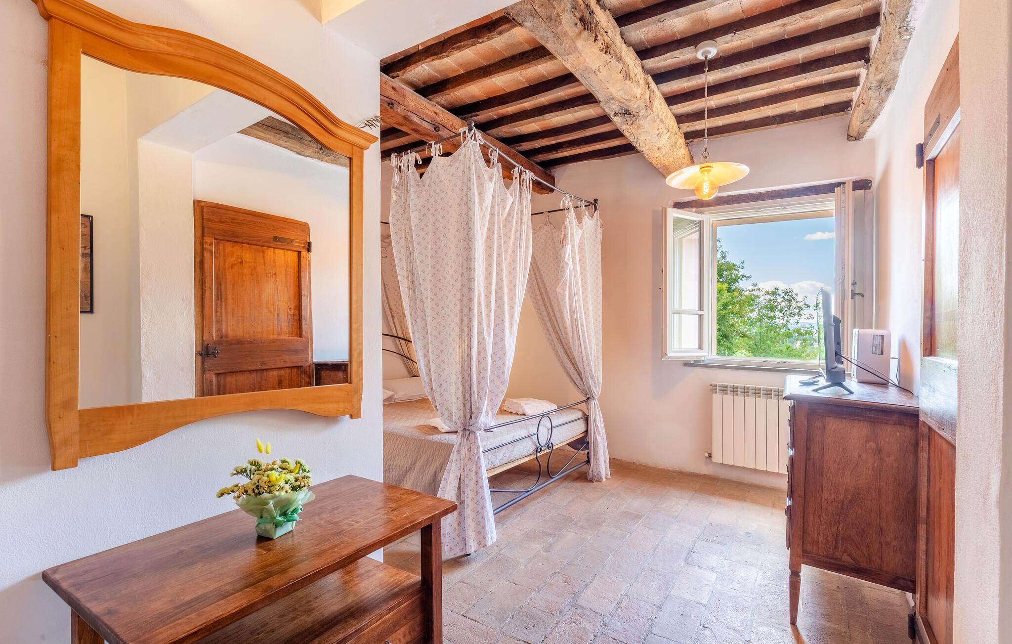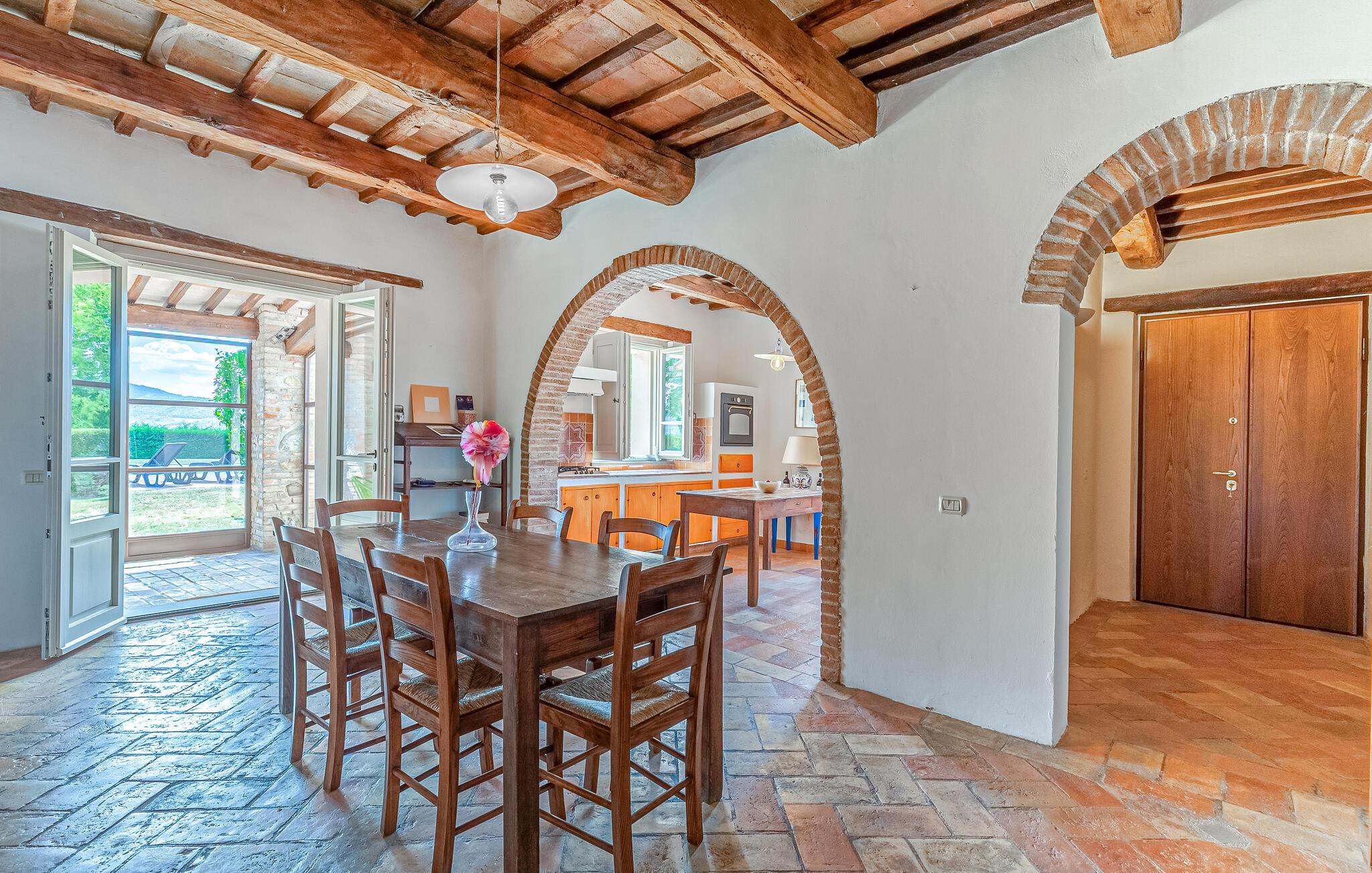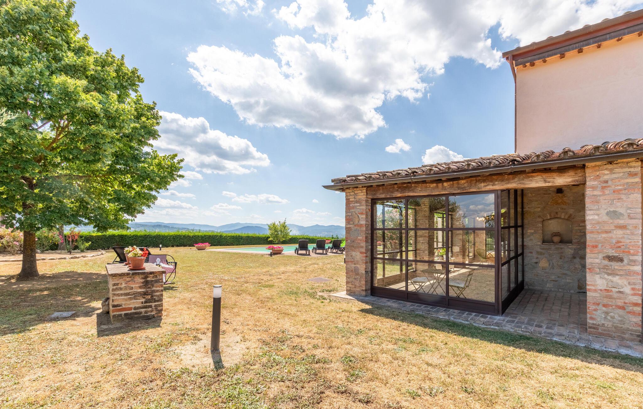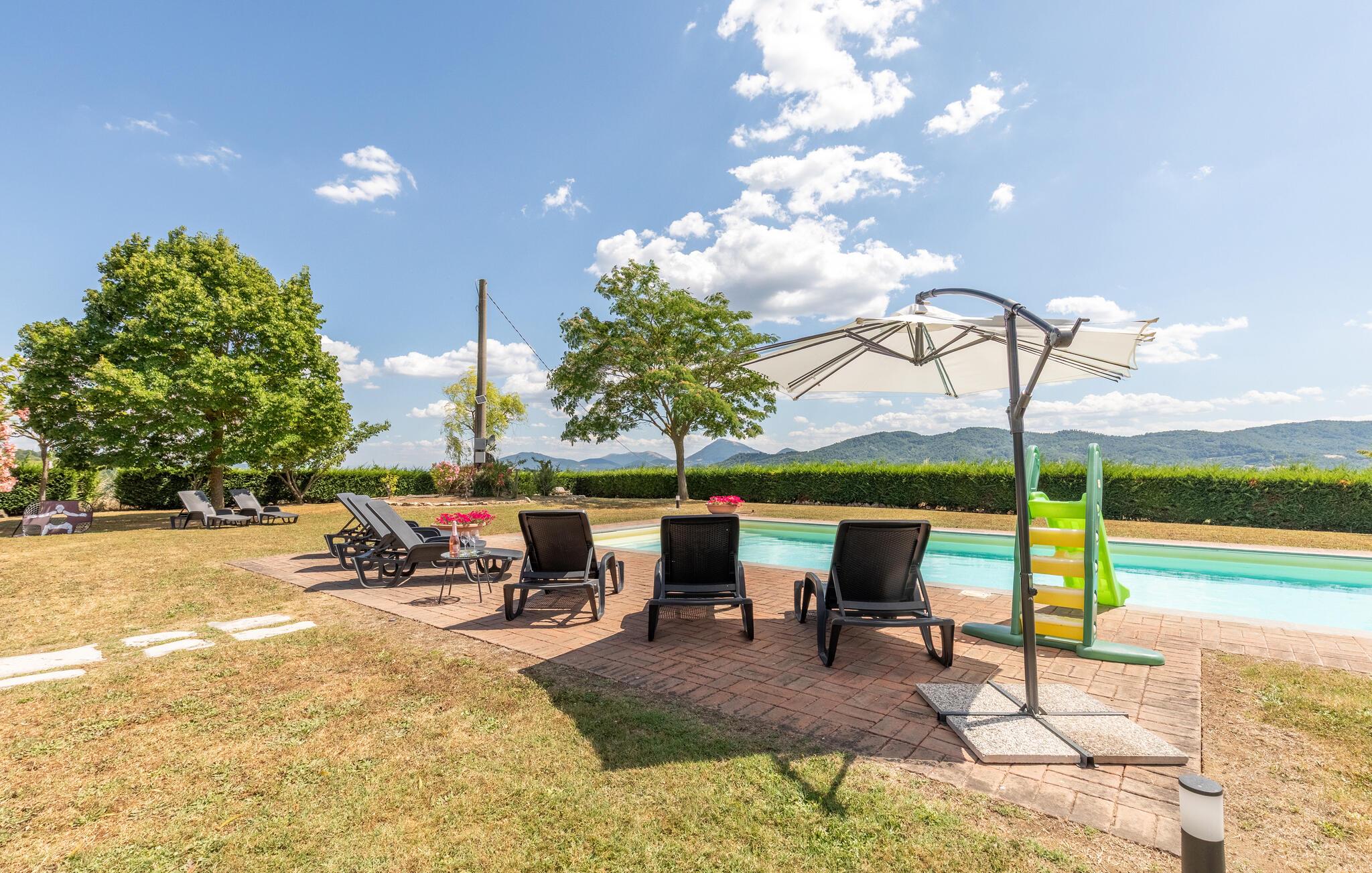 Nyd Umbriens skønhed i denne charmerende ferielejlighed i stueetagen af et tofamiliershus. Den fredelige beliggenhed giver jer en betagende udsigt over den vidtstrakte dal, mens den private veranda er perfekt til måltider under åben himmel. De lyse rum er enkelt, men hyggeligt indrettet og indbyder til afslapning efter en oplevelsesrig dag. Den fælles pool giver mulighed for en forfriskende dukkert, og det velholdte udendørsområde med sit mediterrane præg skaber en idyllisk atmosfære – ideelt til at koble helt af.