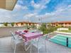 Trapperne fører til en stor, fælles terrasse, hvor I kan hoppe en tur i poolen eller slænge jer i liggestolene.