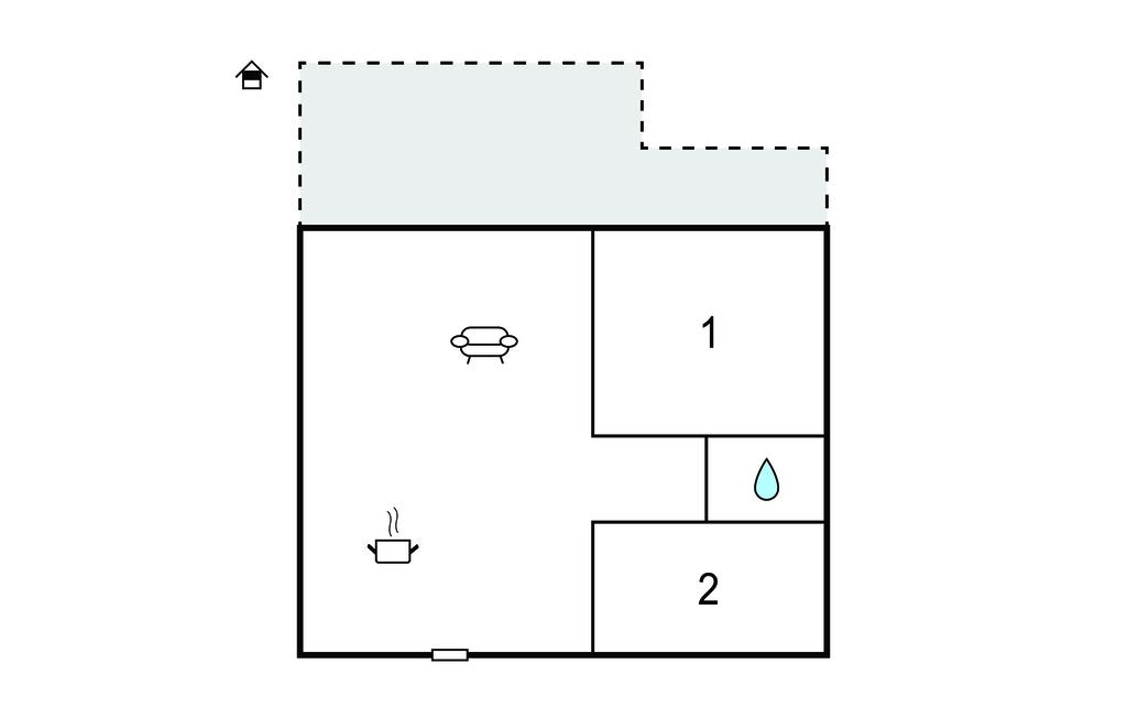 Opholdsstue/køkken 30m2 - 2 Sovepladser. (Sofa, madras eller lignende).