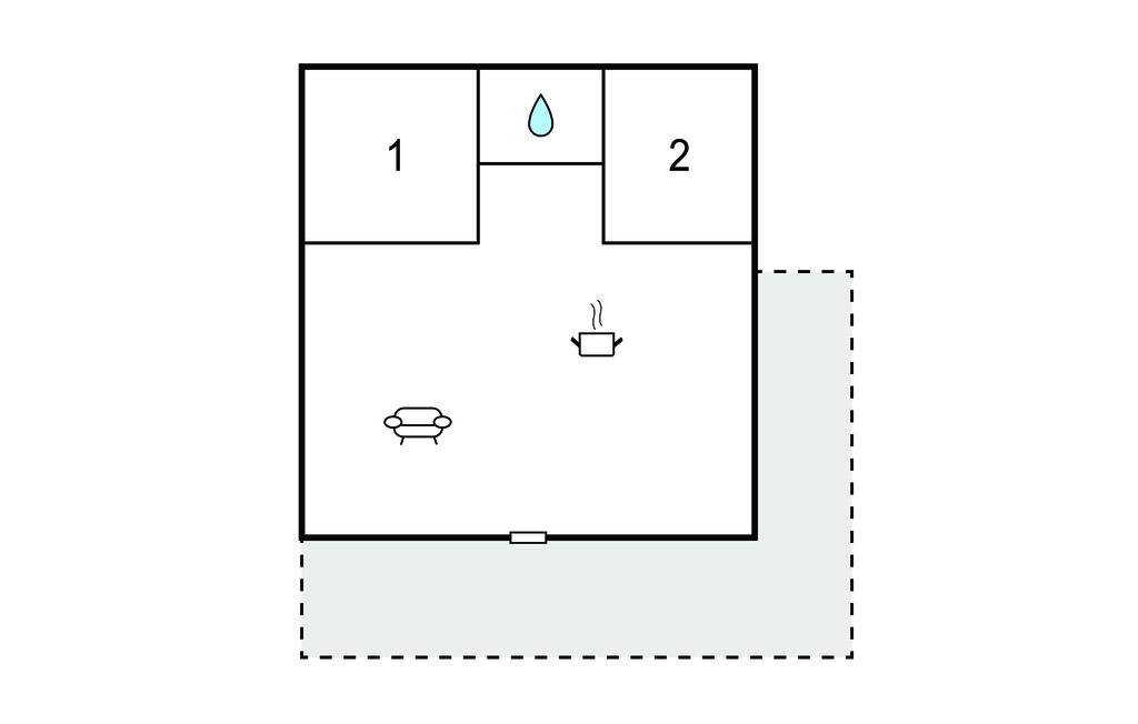 Opholdsstue/køkken 30m2 - 2 Sovepladser. (Sofa, madras eller lignende).