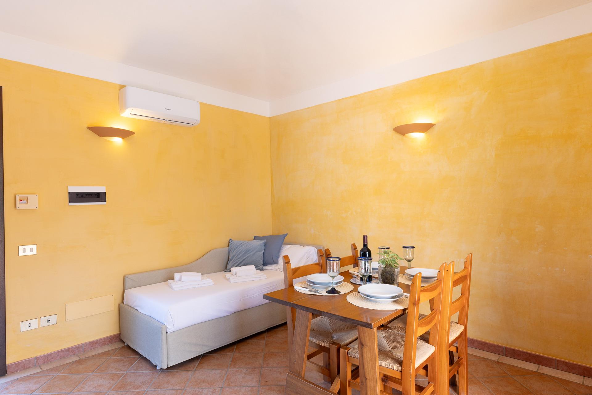 Die elegant eingerichteten Apartments sind halbkreisförmig um einen schönen Swimmingpool angeordnet und verfügen über eine ausgestattete Küchenzeile, Klimaanlage und ein eigenes Badezimmer mit Dusche. Jede Unterkunft verfügt über einen möblierten Balkon oder eine Terrasse mit Blick auf das üppige Grün des Pinienwaldes. Die Gäste können die gemeinsamen Einrichtungen nutzen: einen großen Salzwasserpool mit großem Solarium, den Grillplatz, ideal für gesellige Momente, eine Bar mit gemütlichem Entspannungsbereich und kostenlose Parkplätze für Gäste. Die Freundlichkeit und Hilfsbereitschaft unseres Empfangspersonals wird Ihren Urlaub krönen.