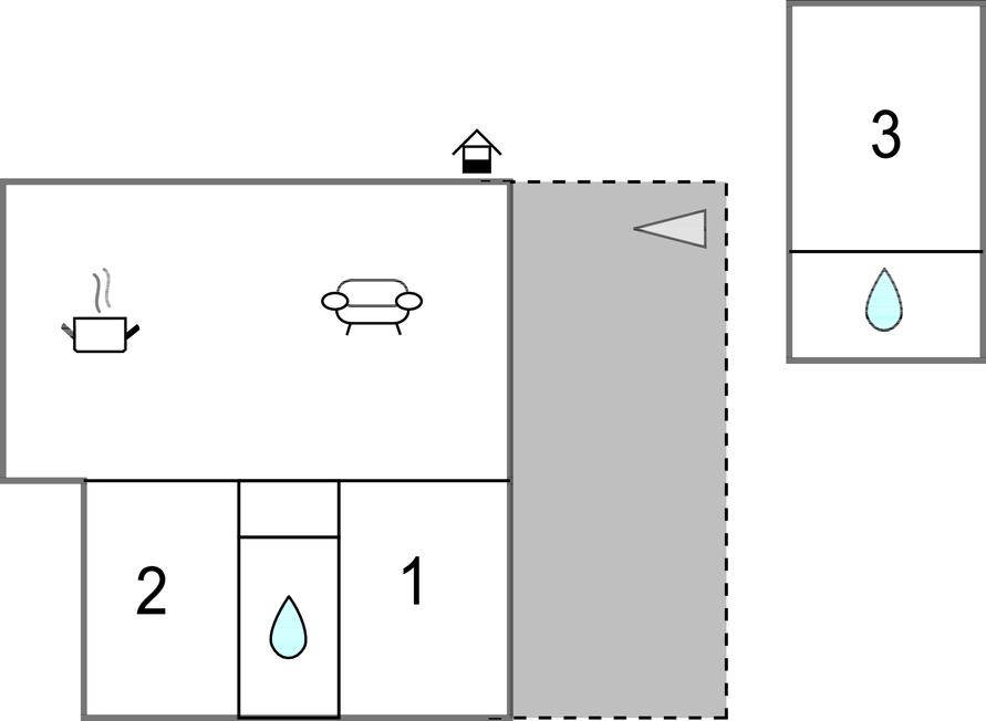 Opholdsstue/køkken 30m2 - 1 Soveplads. (Sofa, madras eller lignende).