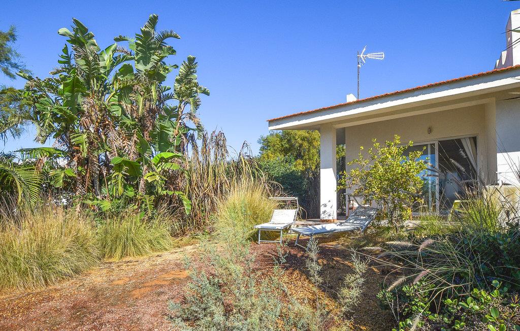Glæd jer til at dase på liggestolene i den lille have i første række til vandet.