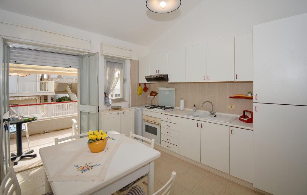 Nyd jeres tid i denne lyse og indbydende bolig, der er noget særligt med sin nærhed til stranden og middelhavsatmosfæren. Lav mad i det lyse køkken, lejlighedens hjerte, og tilbered nemt lækre retter. Nyd måltiderne sammen ved spisebordet og lad lyset strømme ind gennem de store vinduer. Møblerne er enkle og velholdte med muntre farver og små maritime detaljer, der forstærker charmen i denne hyggelige lejlighed.