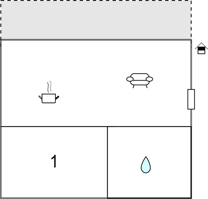 Opholdsstue/køkken - 2 Sovepladser. (Sofa, madras eller lignende).