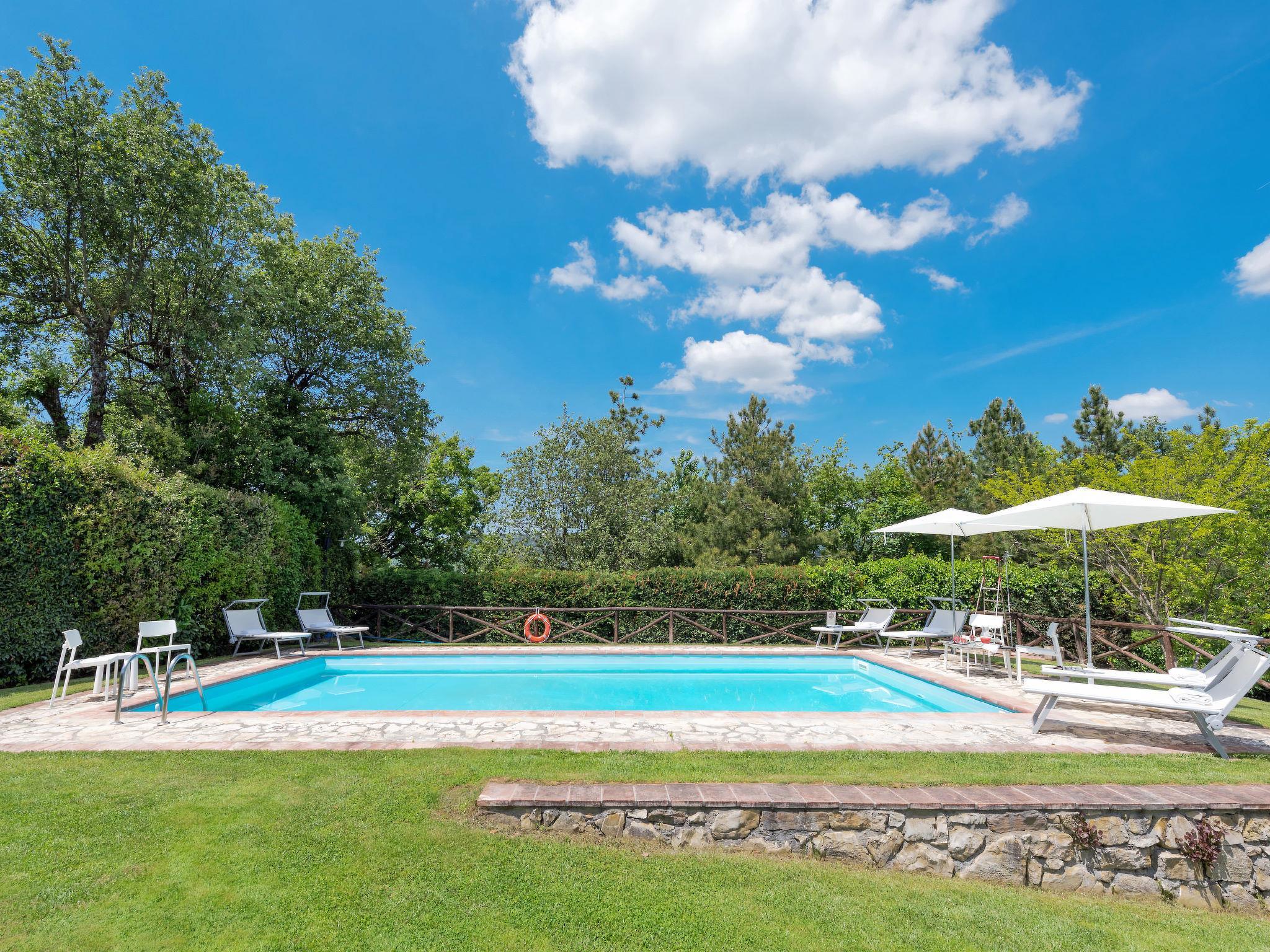 "Villa del Poggio", 4-room house 95 m2 on 2 levels. Beautiful and tasteful furnishings: living/sleeping room with 1 double sofabed, open-hearth fireplace, satellite TV, radio, CD-player and DVD. Exit to the terrace. 1 room with 1 french bed (160 cm), shower/bidet/WC. Exit to the garden. 1 room with 2 beds and shower/WC. Exit to the garden. Open kitchen (oven, dishwasher, 5 gas rings, toaster, kettle, microwave, freezer, electric coffee machine) with dining table. Exit to the garden. Upper floor: 1 room with sloping ceilings with 1 french bed (160 cm). Shower/WC. Gas heating, air-conditioning. Comfortable furnishings in the country house style. 2 terraces, porch. Terrace furniture, barbecue, deck chairs, box-room. Beautiful view of the garden, the countryside and the forest. Facilities: washing machine, safe, iron, mosquito net, children's high chair, baby cot. Internet (WiFi, free). Please note: non-smokers only. Maximum 2 small pets/ dogs allowed. IT052023C2ZT7IXE8D