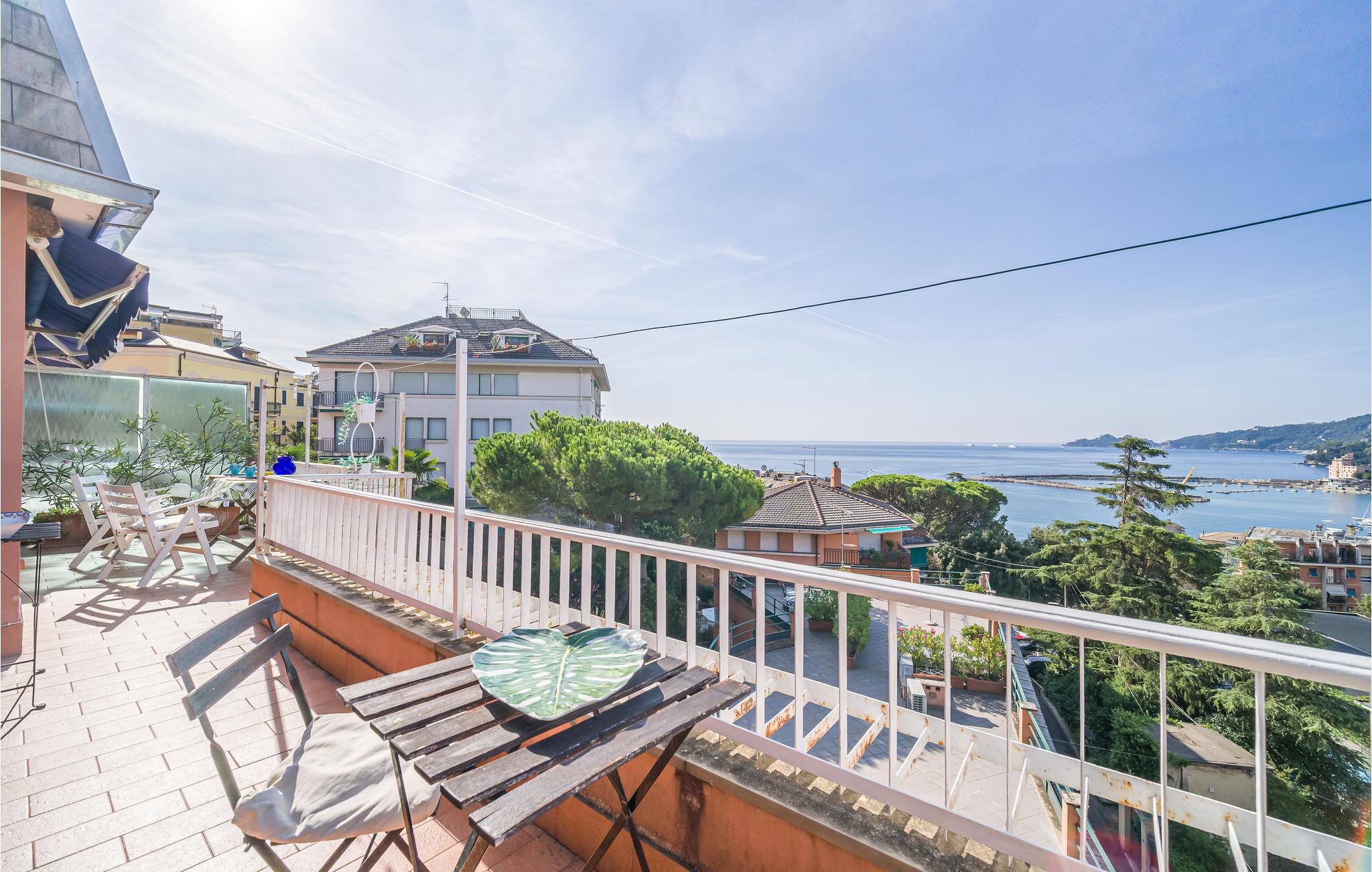 Fra den skønne altan med udgang fra stuen, er der en pragtfuld udsigt ud over Portofino. Her kan I sidde fra tidlig morgen og nyde dagens første kop kaffe til sen aften, hvor I kan nyde solen og den lune sommervind.