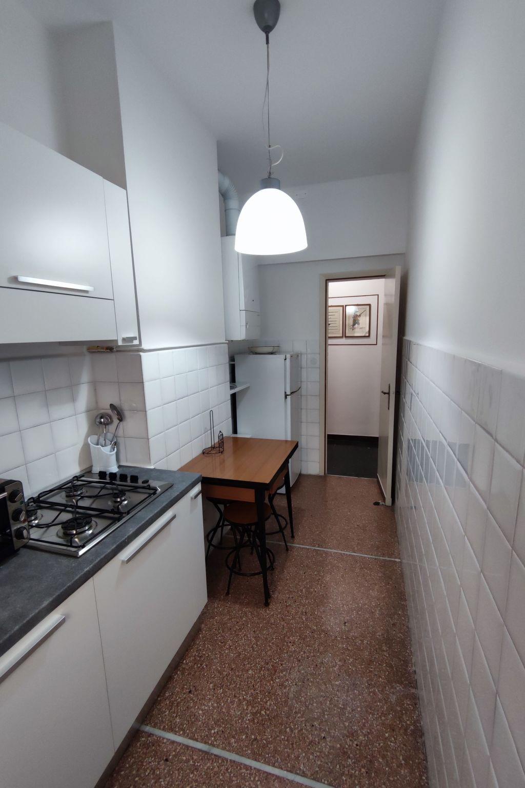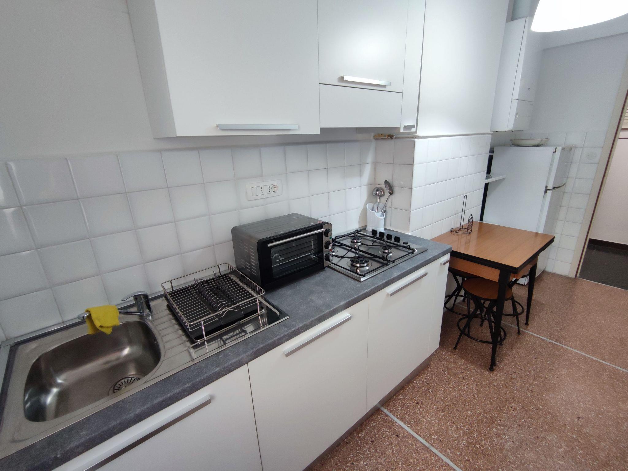 The interior of the flat is designed to ensure maximum comfort during your stay. Located on the 4th floor, easily accessible by lift, it is air-conditioned in all rooms to ensure an ideal temperature at any time of the year. The property consists of a cosy double bedroom, a bathroom with shower, and a fully equipped gas kitchen where you can prepare delicious meals just like at home. In addition, the presence of a washing machine for exclusive use further increases the convenience offered to guests.