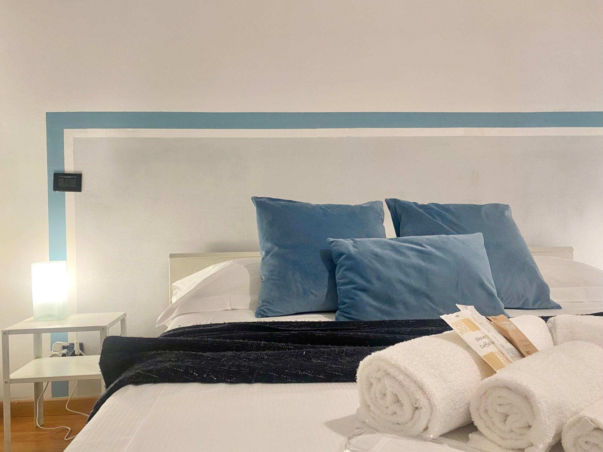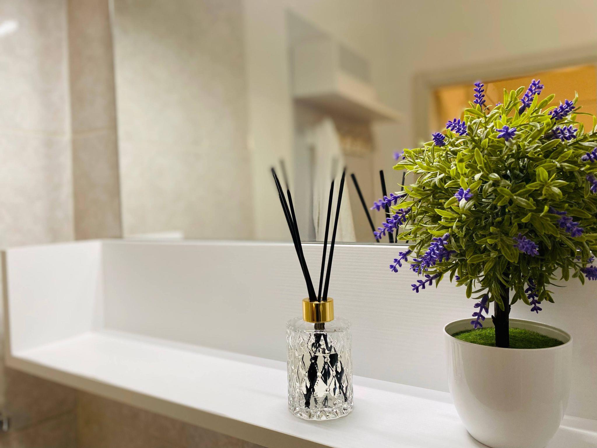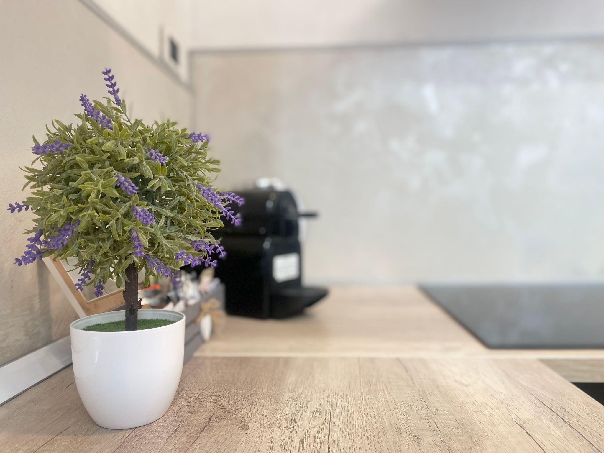 The interior of our flat has been designed to ensure maximum comfort: you will find a cosy living room for your moments of relaxation, a fully equipped kitchen with all the necessary utensils for preparing and eating your meals, including sugar, salt and oil at your disposal. For your comfort, a washing machine, complete with soap tablets, is available in the utility room next to the bedroom, and you will find fresh water in the refrigerator.