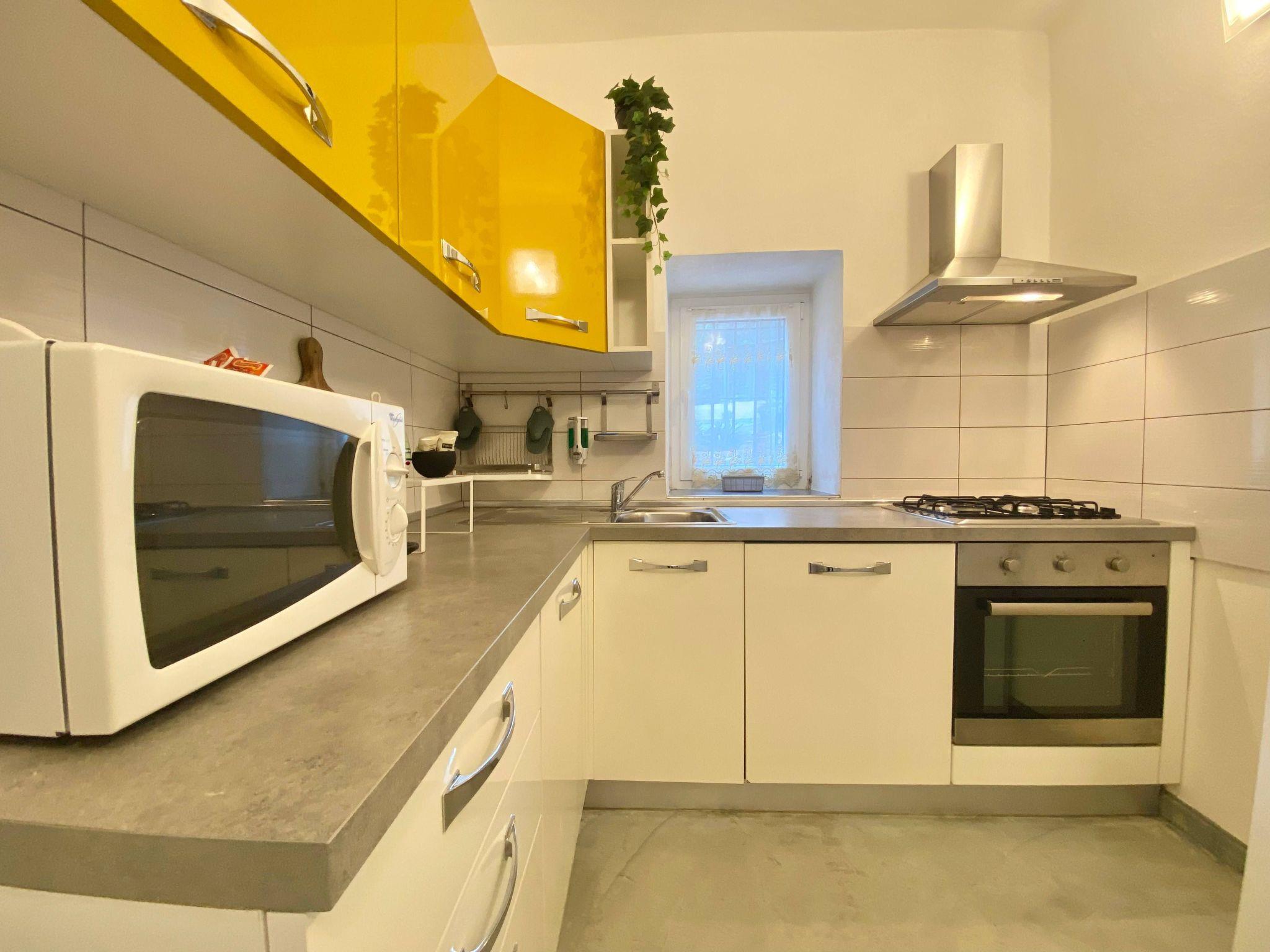 Inside, the flat was finely renovated in 2016, combining the traditional charm of Genoese houses with modern comforts, such as practical and modern furniture. The apartment consists of a cosy dining room, a second room with TV and sofa bed that can accommodate two people, two bedrooms (one with a double bed and one with two single beds), a fully equipped kitchen with washing machine and dishwasher, and a bathroom with elegant LED lights.