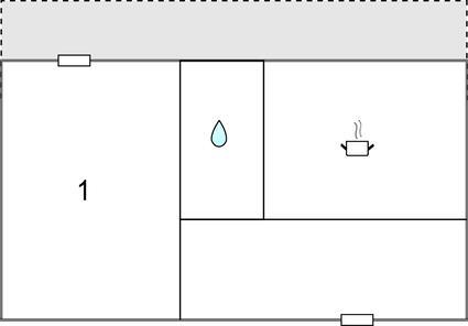 Badeværelse 5m2 (nr. 1) - WC. Varmt og koldt vand. Bruser