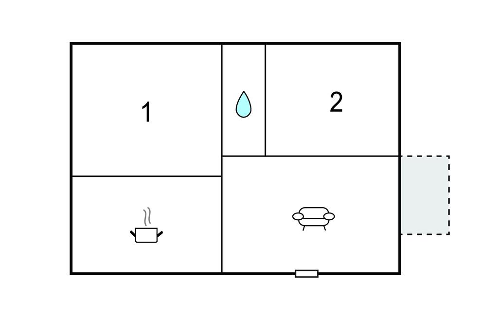 Badeværelse 3m2 (nr. 1) - WC. Varmt og koldt vand. Badekar