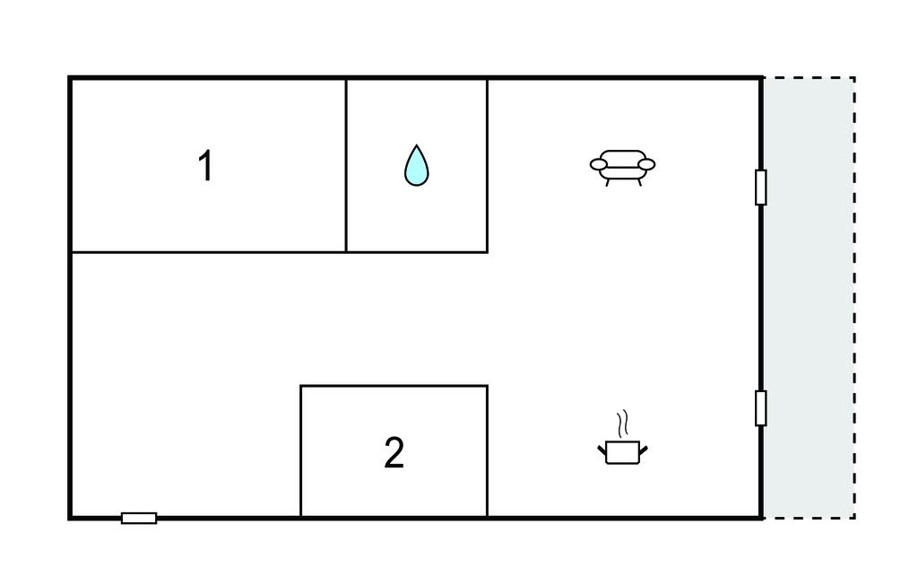 Komb. spisestue/køkken 40m2 - 2 Sovepladser. (Sofa, madras eller lignende).