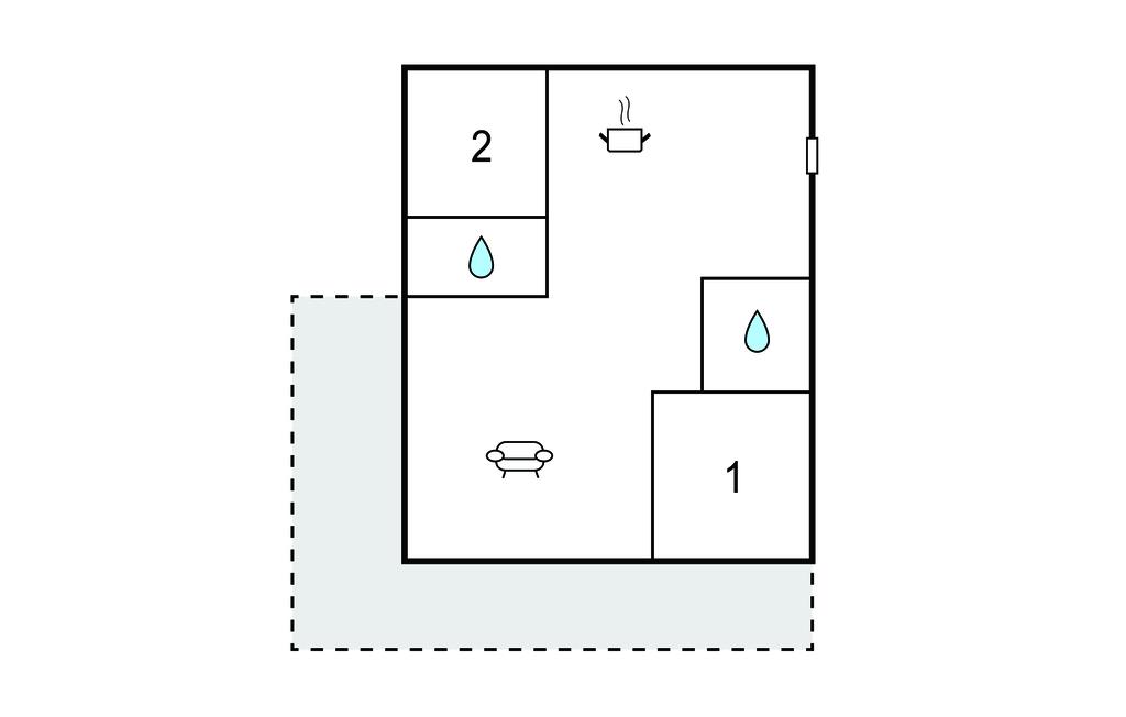 Opholdsstue/køkken 35m2 - 2 Sovepladser. (Sofa, madras eller lignende).