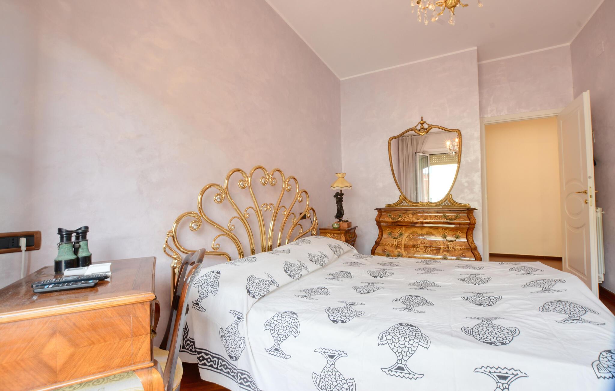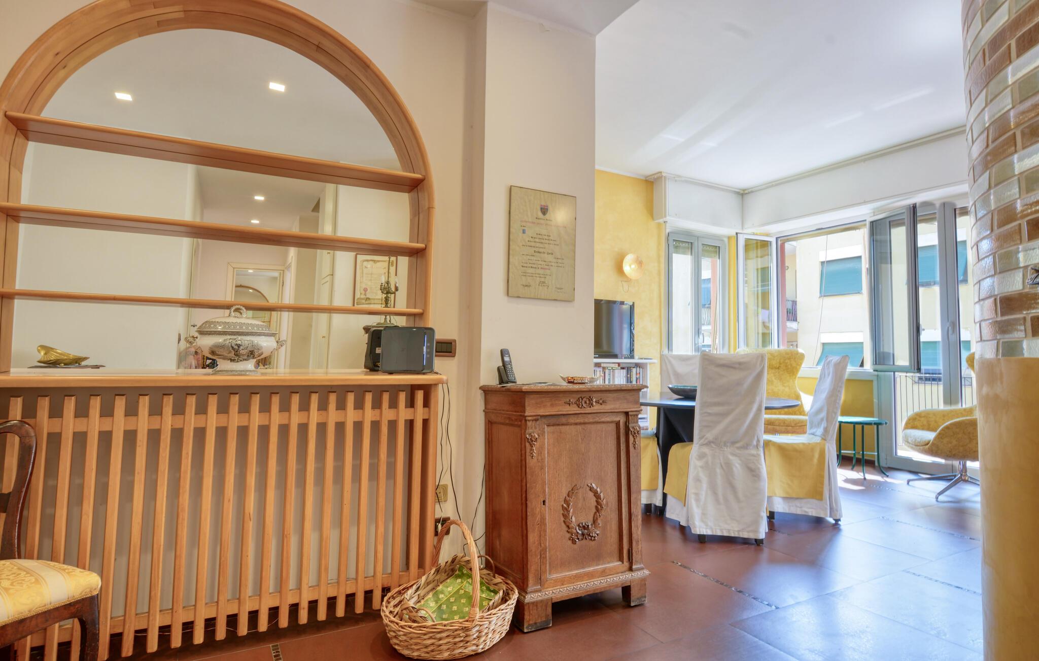Slip for den daglige travlhed og nyd en pause i denne smukke ferielejlighed ved kysten. Velkommen til denne lyse ferielejlighed i hjertet af kystbyen Recco. Føl jer hjemme, mens I tilbereder lækre måltider for to med friske råvarer fra markedet og nyder dem i den hyggelige stue. Planlæg jeres aktiviteter i fred og ro med et glas vin i de behagelige lænestole, og slap af efter en travl dag med en film eller en god bog. Gå en tur til den nærliggende strand om morgenen og genopliv jeres sanser med en forfriskende dukkert i havet, eller slentr langs den maleriske strandpromenade. På vej tilbage kan I fylde op med lækre søde sager til morgenmad og finde en hyggelig restaurant til aftenen. Gå en tur gennem Parco Naturale Regionale di Portofino, besøg charmerende nabobyer som Camogli eller Santa Margherita Ligure, og nyd frisk fisk og skaldyr i en traditionel trattoria. Oplev skjulte bugter på en bådtur, og udforsk museer og paladser i Genova.