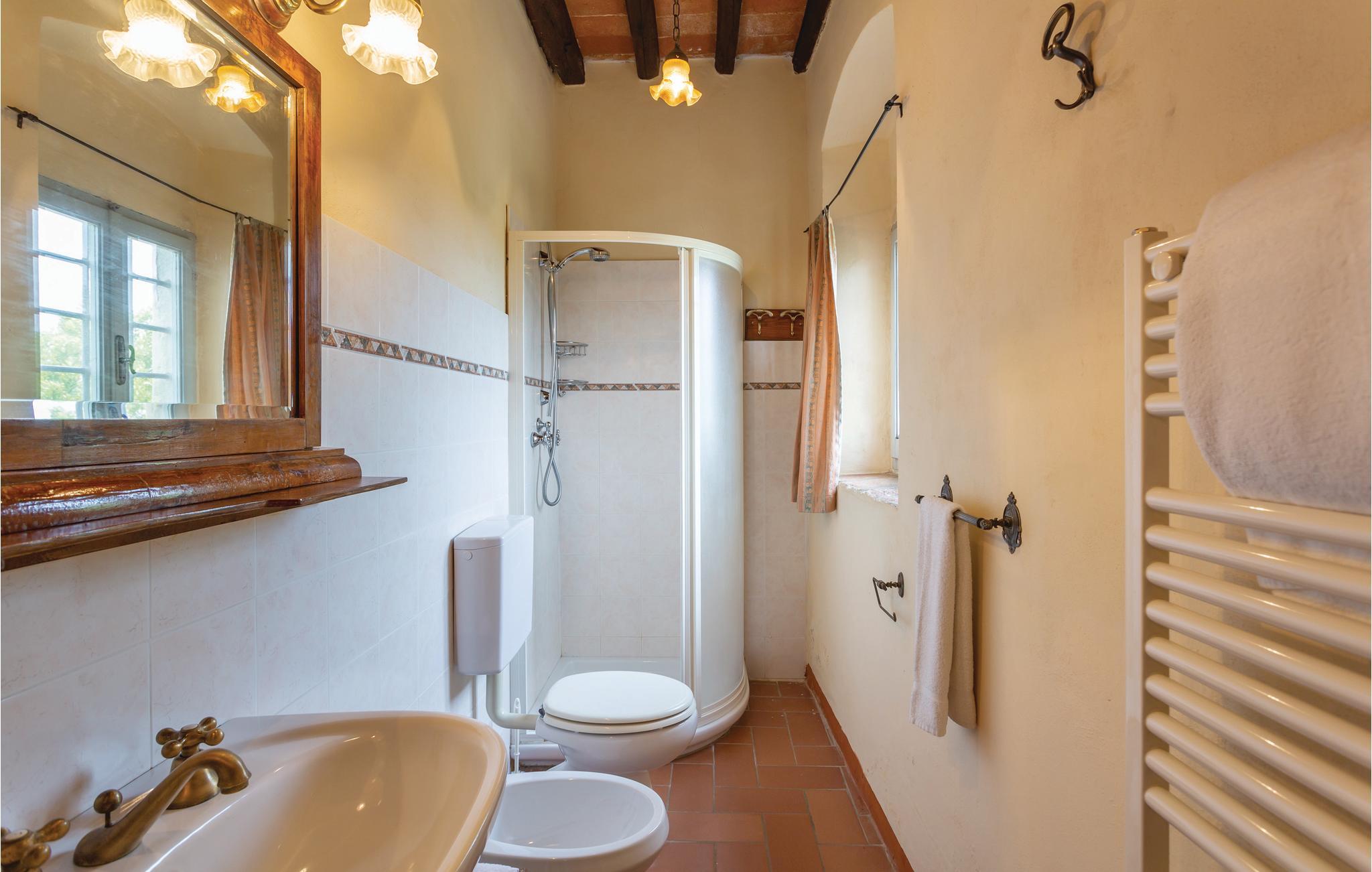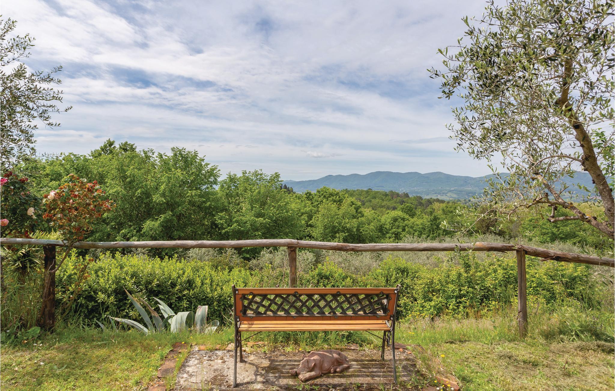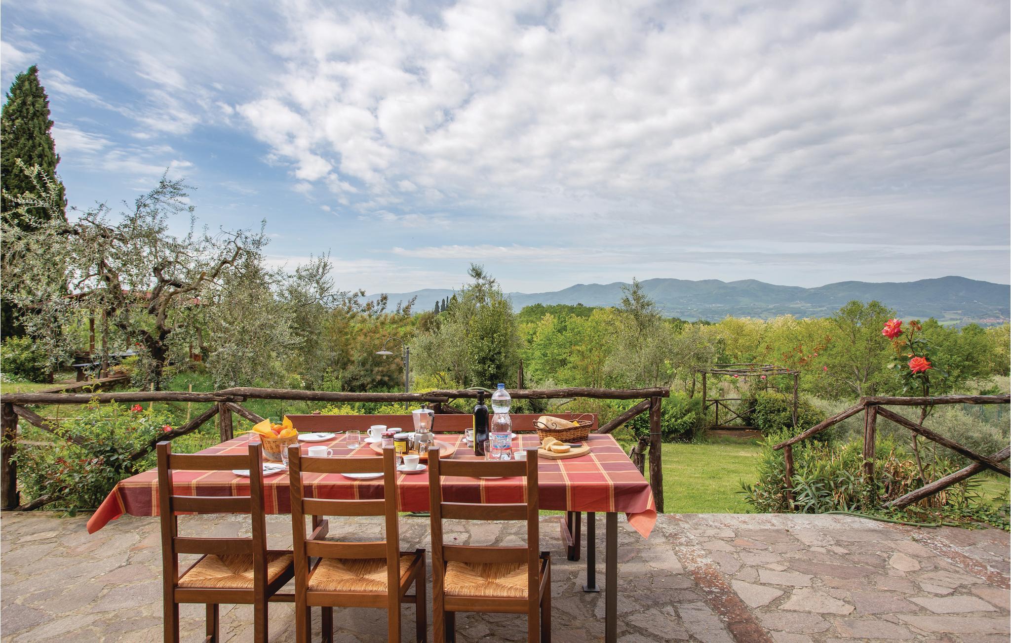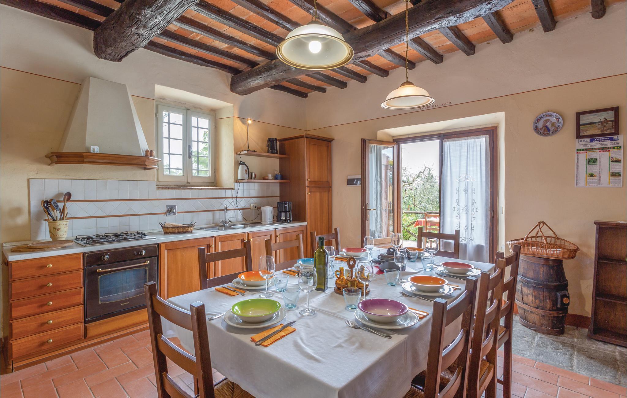Jeres feriebolig består af tre uafhængige ferielejligheder, den større i stuen og de lidt mindre på første sal, i et stort, antikt landhus med panoramaudsigt, på et landgods. Ejendommen ligger roligt og ca. 6 km fra Reggello. Fra udendørsområderne kan I nyde den vidunderlige, vide udsigt til Arno-dalen. Grunden er omgivet af typisk toskansk landskab med oliventræer, vinbjerge og skov. En stor, privat have med pool står til rådighed for gæsterne, hvor I kan runde dagen af med ro og afslapning efter dagens indtryk af dejlige Toscana. Dertil er der fodbold- og tennisbane og et bordtennisbord. I stuen er der desuden et fællesrum med satellit-tv og et vaskerum med vaskemaskine. Indretningen er tiltalende og hyggelig i toskansk stil. Ejendommens beliggenhed er ideelt til at besøge Toscanas vidunderlige kunstbyer, og til at opdage alle områdets små bebyggelser og landsbyer. Nogle afstande og tips til udflugter: Der er 4 km til den lille by Cancelli, hvor I kan købe ind til mad, ca. 6 km til Reggello med alle slags butikker og restauranter, 11 km væk, tæt på byen Incisa Valdarno, er der et kendt designer-outlet, 36 km til den vidunderlige by Firenze med sit berømte ”Galleria degli Uffizi” og ca. 40 km til Arezzo. Den gæstfrie og tysktalende ejer, står gerne til rådighed for gæsterne med anbefalinger og gode råd.