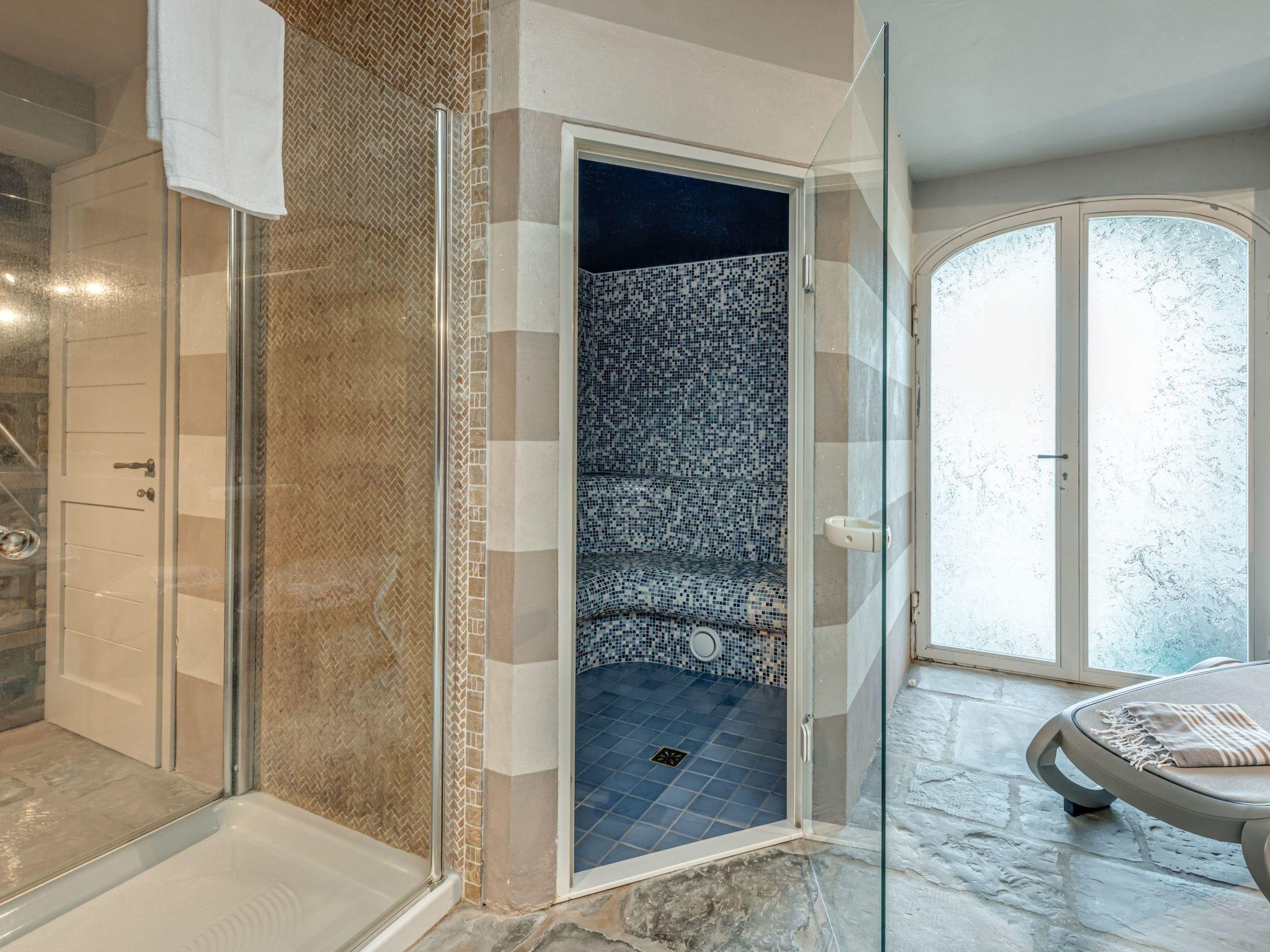 Downstairs is the private spa with whirlpool tub, steam bath and shower, while on the first floor is the master bedroom with en-suite bathroom with tub and hairdryer.