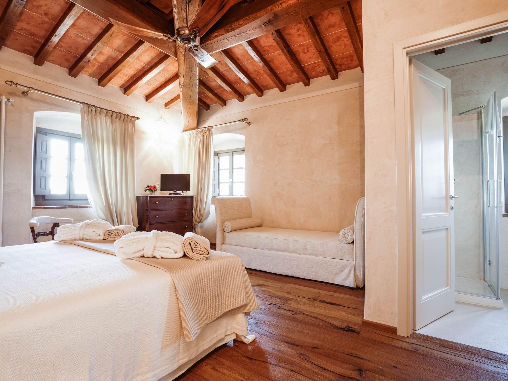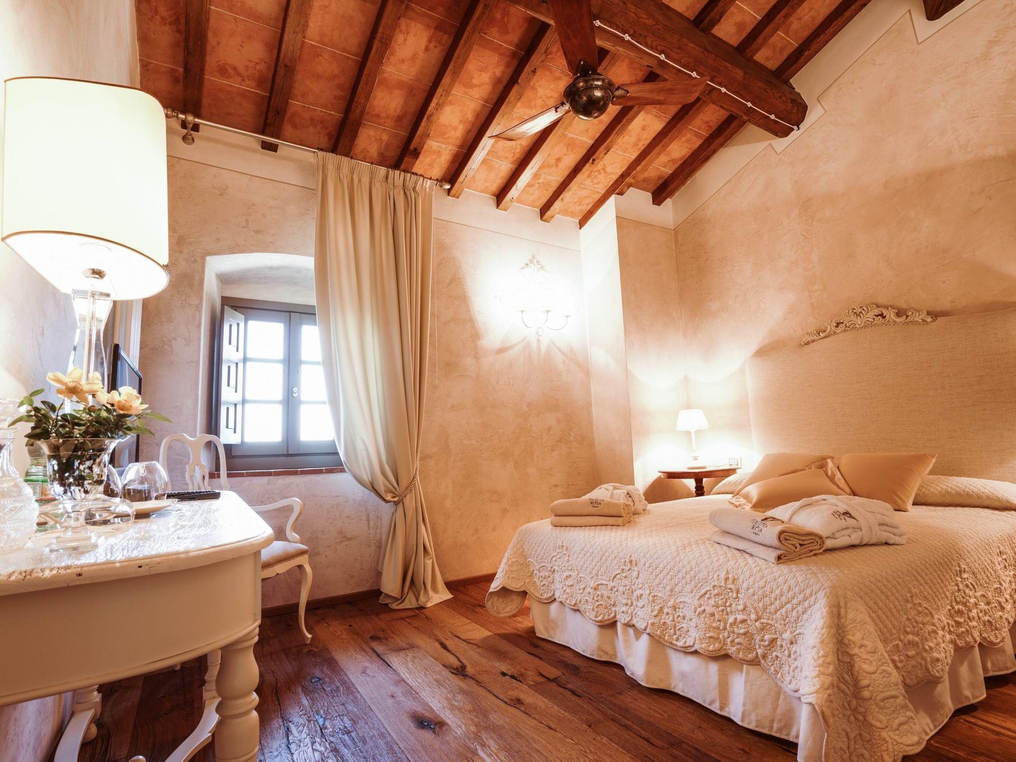 The rooms, all with views of the Tuscan countryside, are equipped with Wi-Fi, safe, minibar, satellite TV and air conditioning.