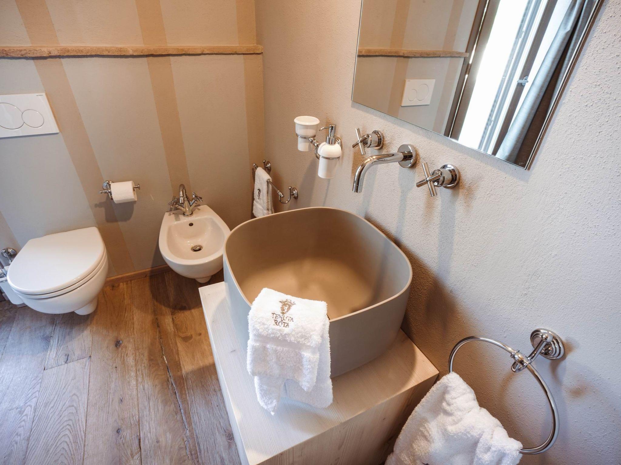 The villa, which can accommodate up to 18 people, has a large, well-kept garden, a beautiful terrace with barbecue for outdoor dining and a saltwater swimming pool overlooking the valley (14x7 m, 140 cm deep, with outdoor shower and heatable on request) located on a solarium, next to a small relaxation area with sauna, treadmill, exercise bike and bathroom with shower. Recently renovated, with special attention to detail and furnishings, the house offers a warm and cosy atmosphere, a charm that will make your holiday unforgettable.