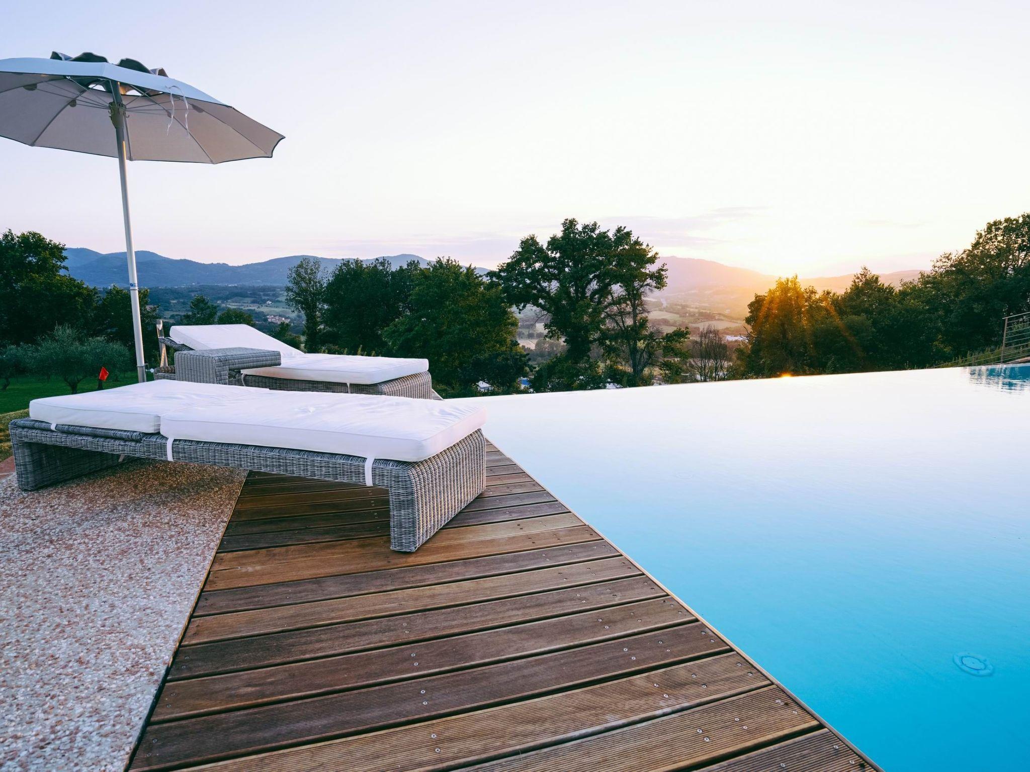 The location is fabulous; surrounded by vineyards, olive groves, castles and small villages with their ancient stone churches, the villa enjoys breathtaking views, especially at sunset.