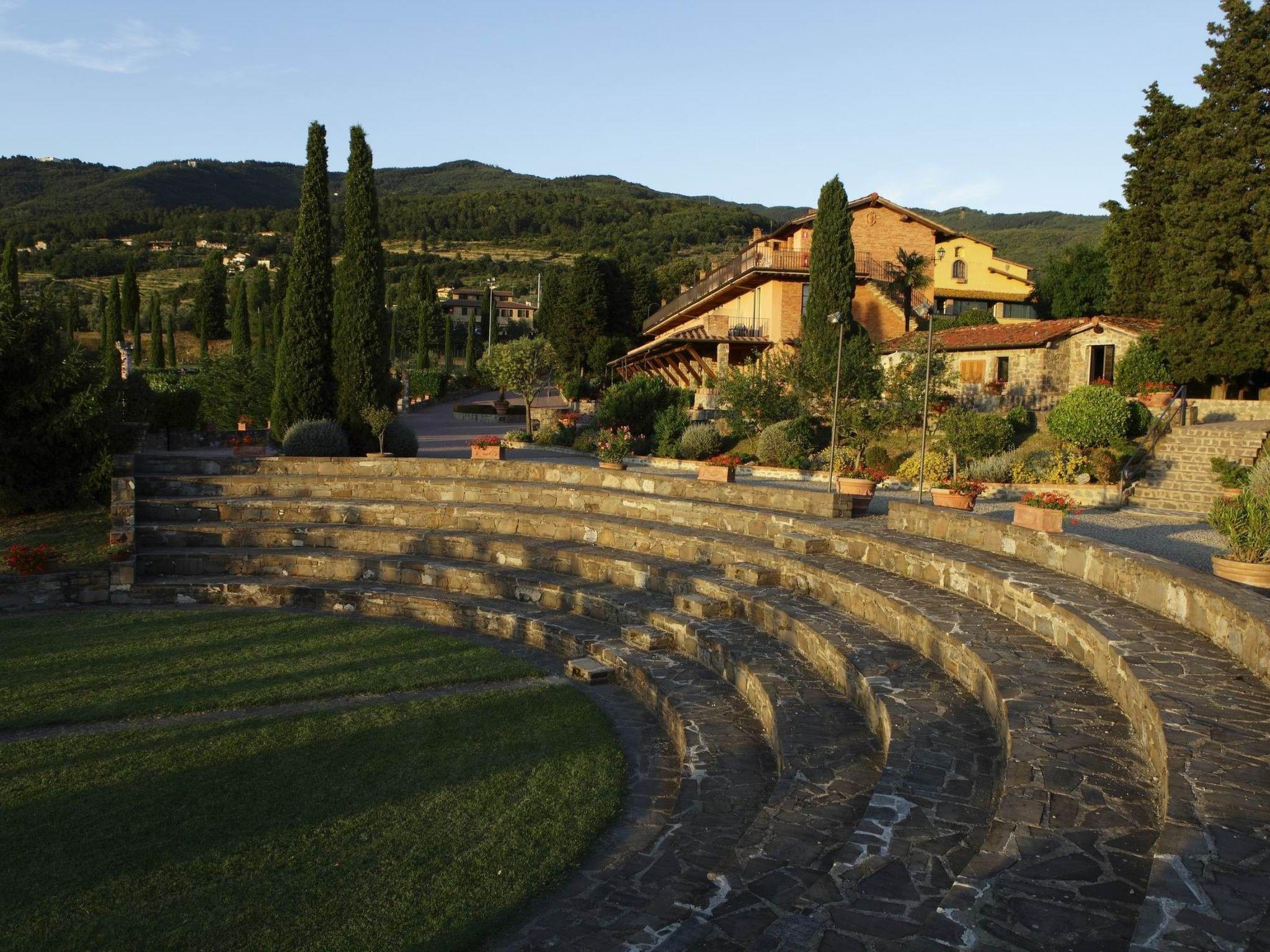 The property consists of 43 comfortable flats and offers numerous amenities and entertainment options for guests. These include a large garden, a swimming pool (approx. 20 x 8 m, open from April to October), a children's pool, a barbecue, a riding school, a tennis court, a children's playground, a table tennis table, a billiard table, a laundry room, bicycles, wine and oil tasting'oliva e un ristorante.