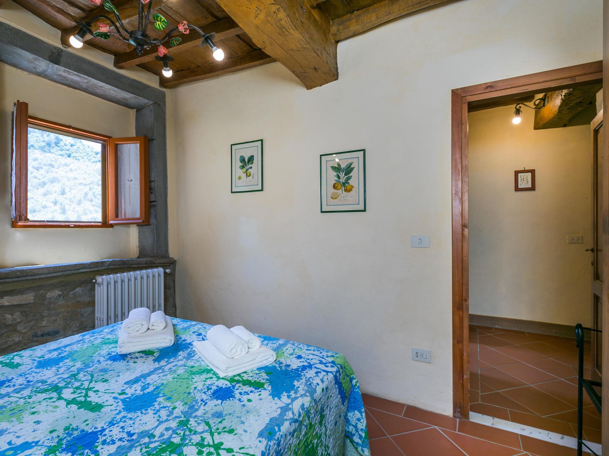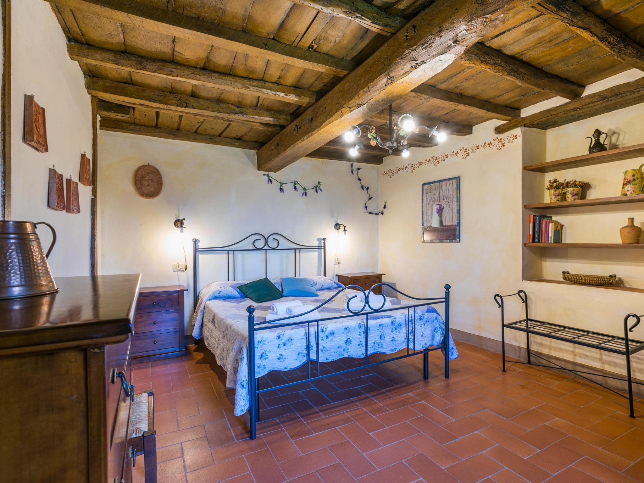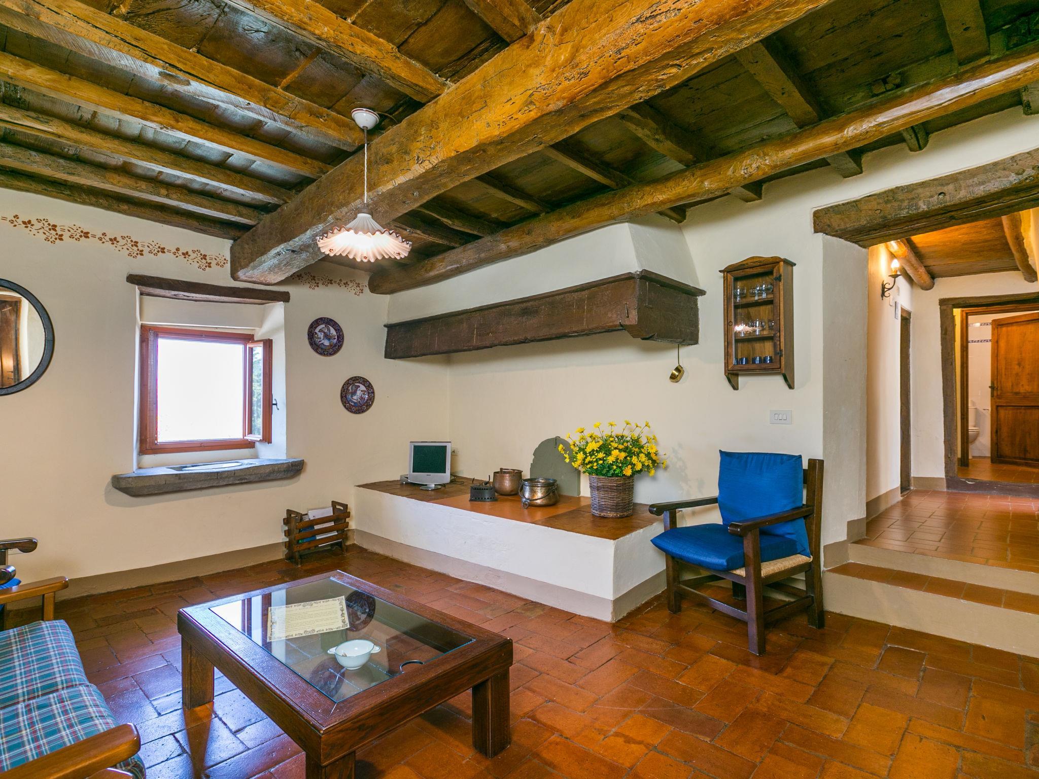 Borgo Stoppi, situated at 600 m a.s.l. at the foot of the Castello Poggio alla Regina, was a property of the counts Guidi since the 11th Century and after some changes of owners, in the 14th Century it became the main centre of the medieval district named "Curia del Castiglione" and agricultural capital of the surrounding mountain area, with its own town hall and big weekly market. Today, the old houses of the hamlet have been restored to 8 units, enhancing in a superb manner the beauty this affascinating place has maintained during the centuries: cypress, oak, pine and chestnuts trees are silent testimonies of Nature and wild boars, hares, squirrels, phaesants and owls may be watched in the surroundings. From the terrace covered with olive trees that produce one of the best and genuine olive oils of the area, you can enjoy a magnificent panorama over the Arno valley and the Chianti hills. Residence "Borgo Stoppi", 600 m a.s.l.. 2.5 km from the centre of Reggello, 30 km from the centre of Firenze, 35 km from the centre of Arezzo, in a quiet, sunny, elevated position, 70 km from the lake, in a cul-de-sac, in the countryside. For shared use: property 5'000 m2, swimming pool (6 x 12 m, depth 150 cm, seasonal availability: 22.May. - 08.Oct. pool opening hours: 08:00-21:00). Outdoor shower. Heating to be paid on the spot, heating available only from 01.Nov. - 07.Apr.. Steep motor access to the house (800 m via unmade road). Parking on the premises. Shop 2.5 km, grocery 2.5 km, supermarket 2.5 km, restaurant 2.5 km, bar 2.5 km, café 2.5 km, bus stop 3.5 km, railway station "Figline Valdarno" 10 km, bathing lake "Lago di Bilancino" 70 km. Nearby attractions: Firenze 40 km, Siena 86 km, Arezzo 64 km, Abazzia di Vallombrosa 16 km. Please note: car recommended. Suitable for families. The photograph shows a typical example.