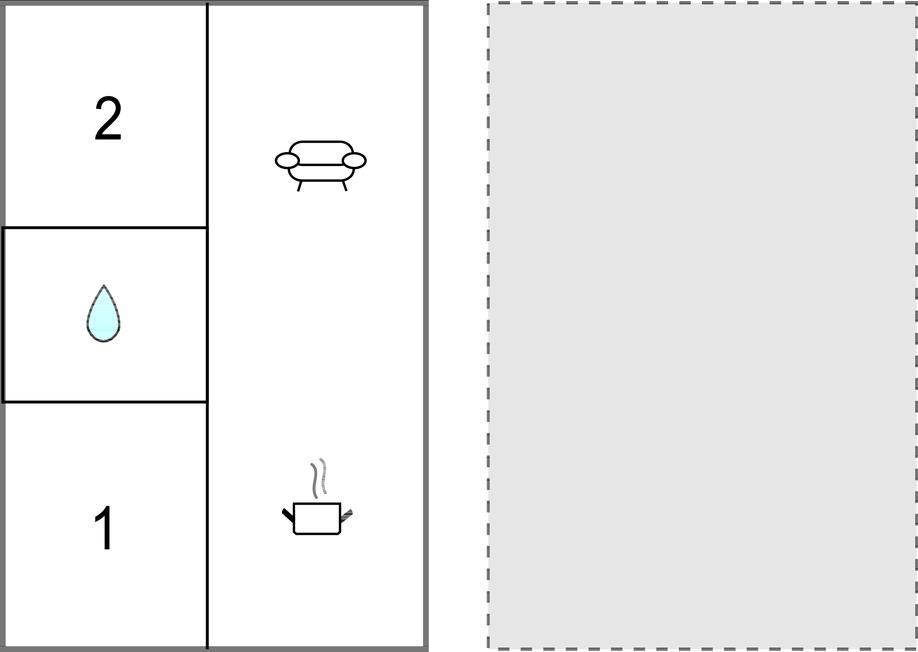 Opholdsstue/køkken - 1 Soveplads. (Sofa, madras eller lignende).