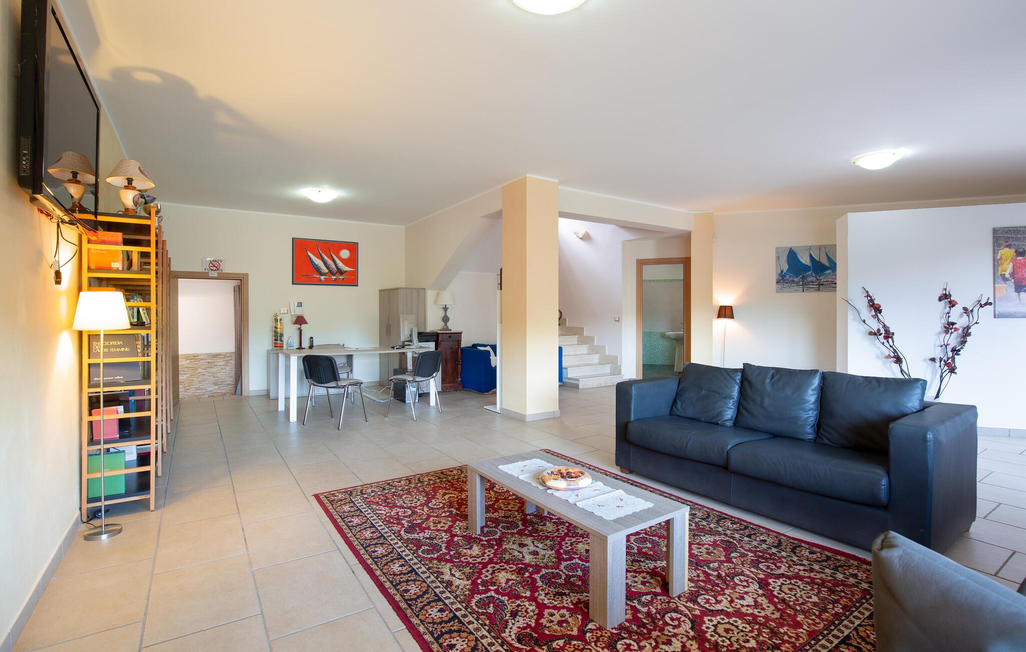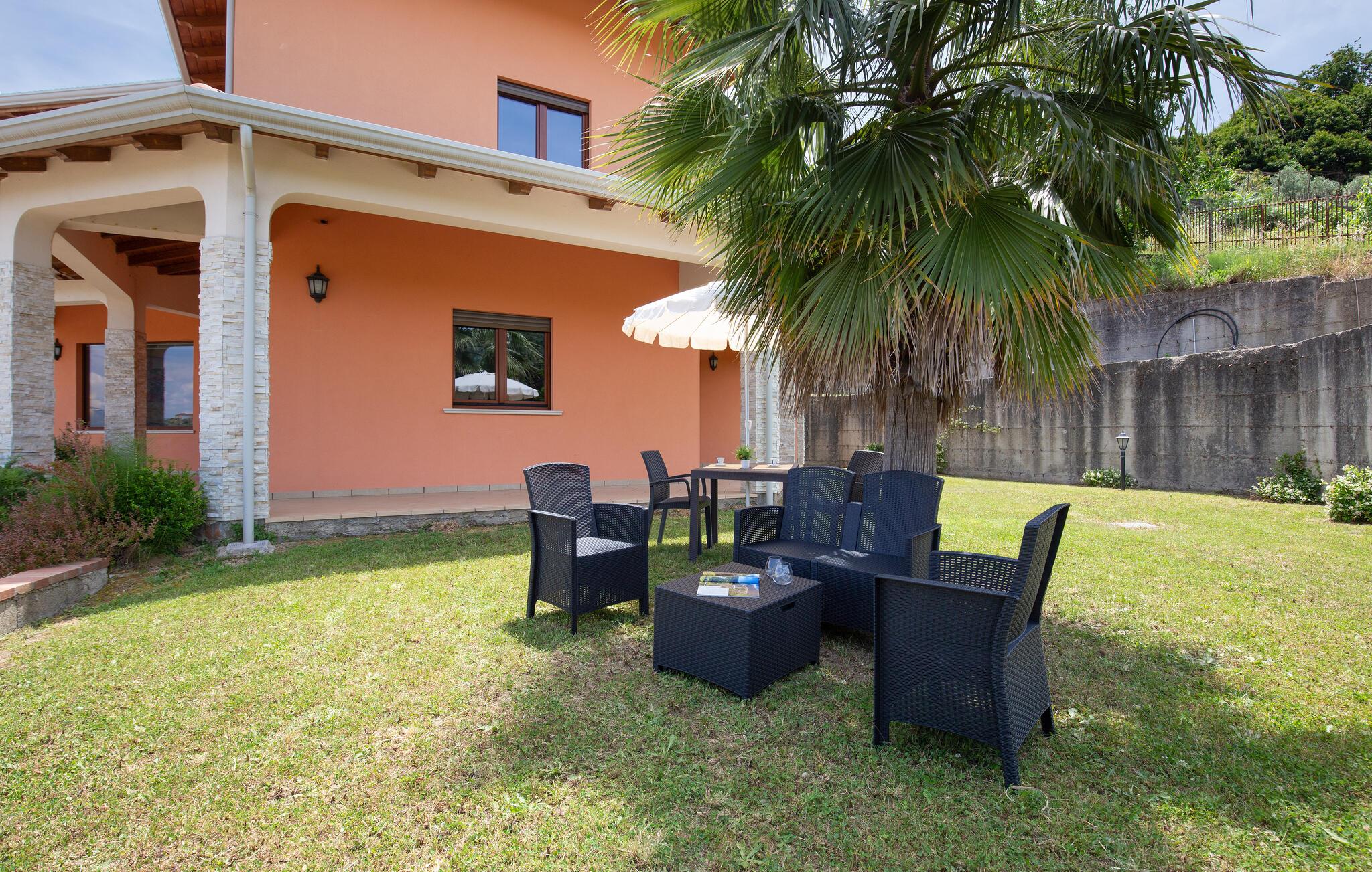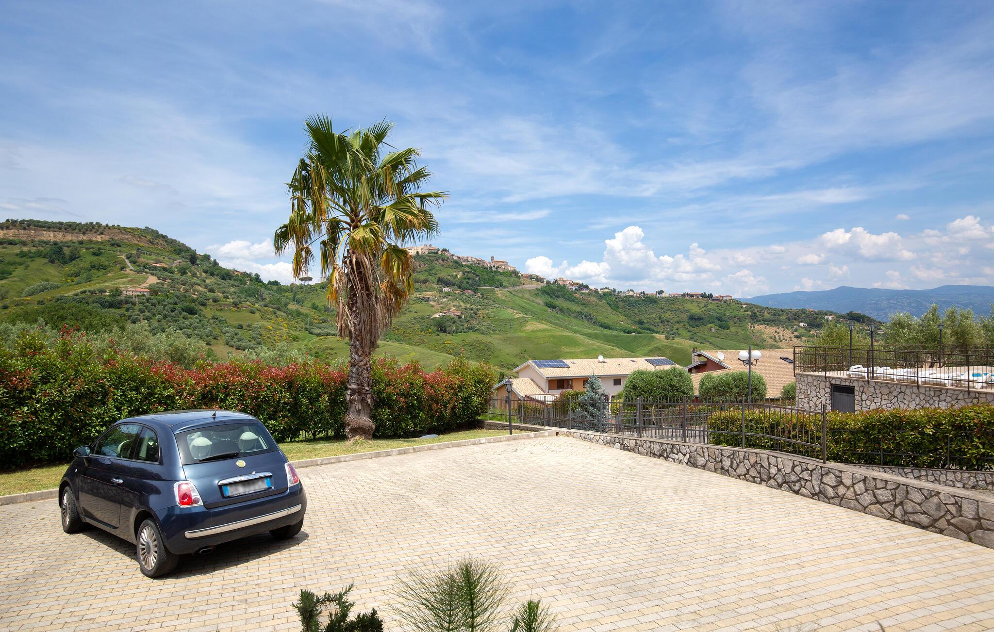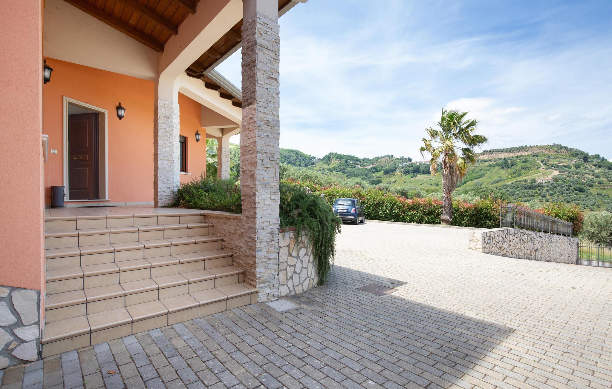 Dette store feriehus ligger i nærheden af Cosenza (5 km) og råder over en legeplads til børnene og grill i indhegnet have. Nyd den flotte udsigt over landskabet af Rende! Ferieboligen er helt perfekt til familier med børn, som gerne vil holde ferie i rolige omgivelser. Alle soveværelser har eget badeværelse med douche. En rummelig og lys stue inviterer til hyggelige og afslappende timer. Spændende udflugtsmål er Sila-Nationalparken (58 km), nationalparken Pollino (93 km) og de flotte byer Maratea (137 km) og Tropea (144 km). Ikke langt fra huset ligger IKK385.