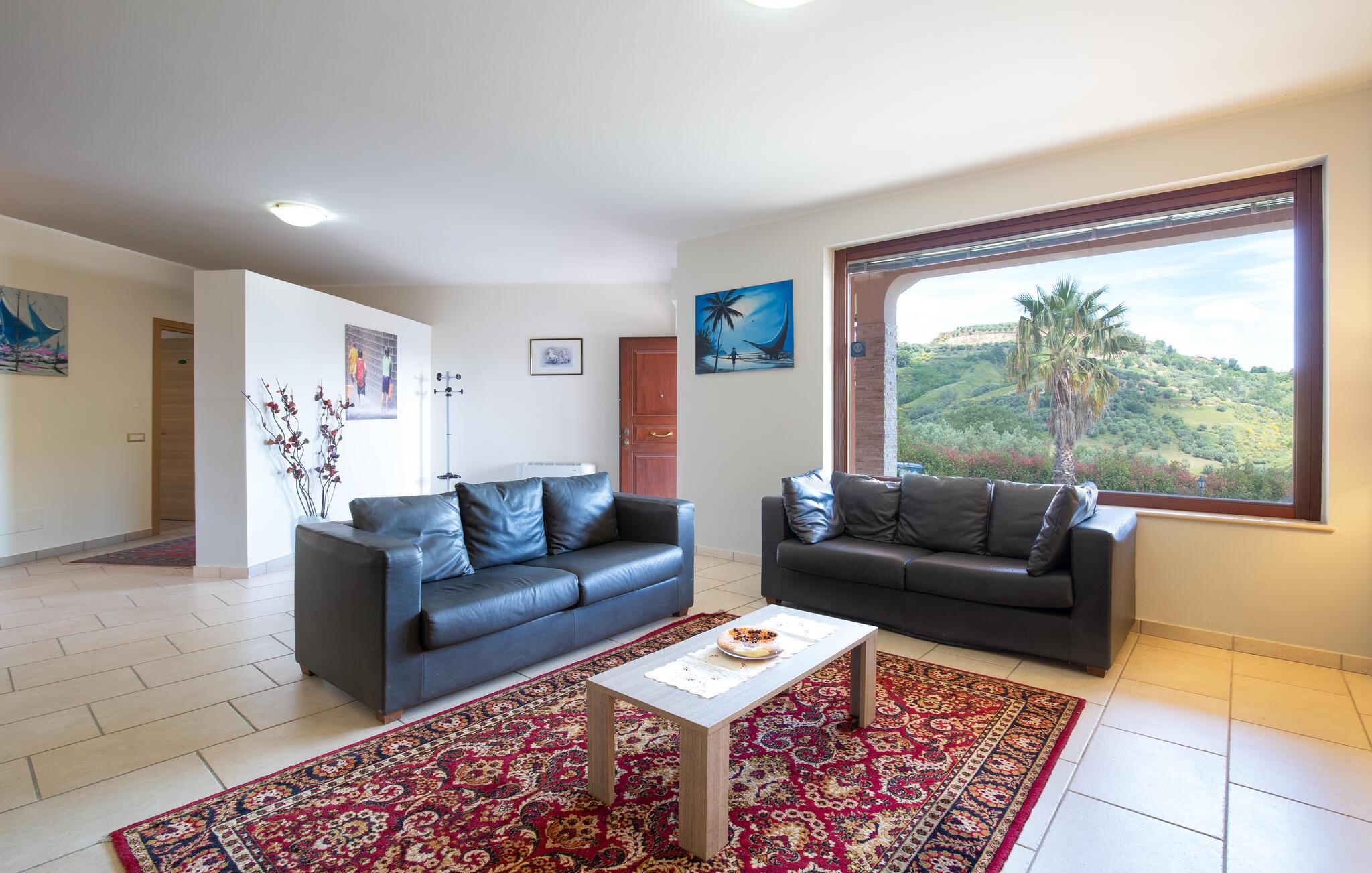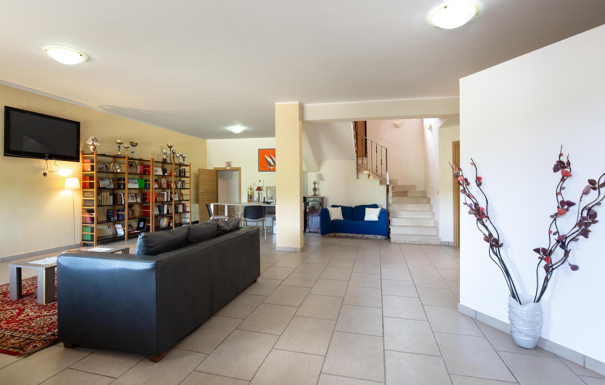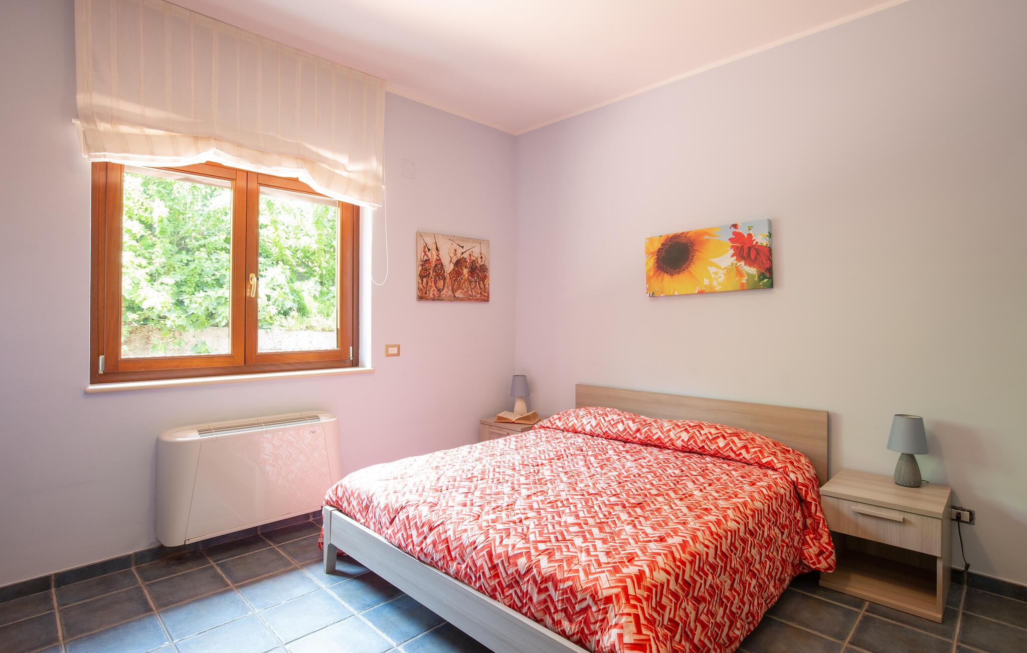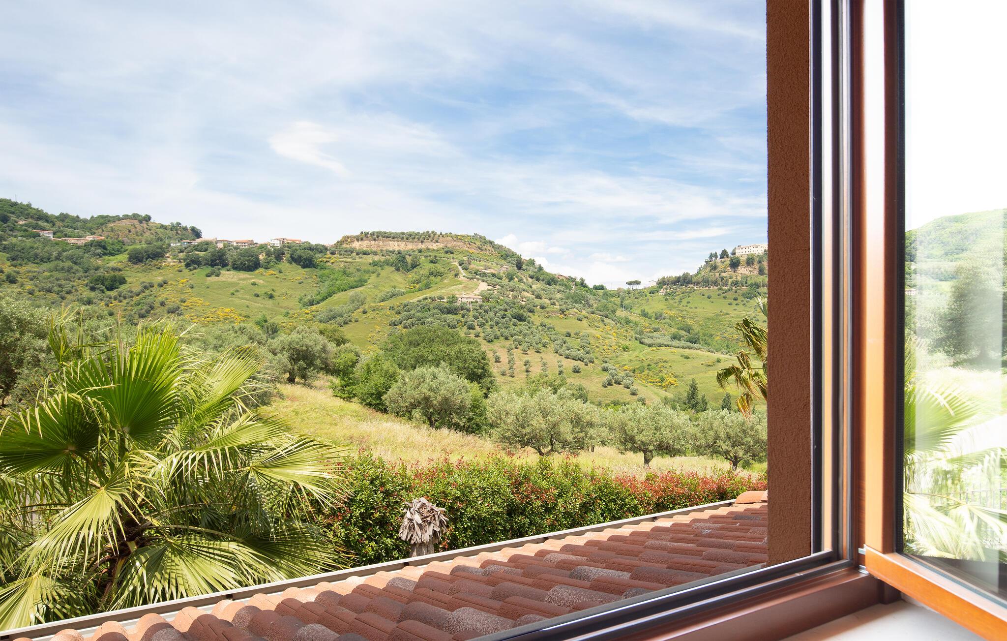 Dette store feriehus ligger i nærheden af Cosenza (5 km) og råder over en legeplads til børnene og grill i indhegnet have. Nyd den flotte udsigt over landskabet af Rende! Ferieboligen er helt perfekt til familier med børn, som gerne vil holde ferie i rolige omgivelser. Alle soveværelser har eget badeværelse med douche. En rummelig og lys stue inviterer til hyggelige og afslappende timer. Spændende udflugtsmål er Sila-Nationalparken (58 km), nationalparken Pollino (93 km) og de flotte byer Maratea (137 km) og Tropea (144 km). Ikke langt fra huset ligger IKK385.