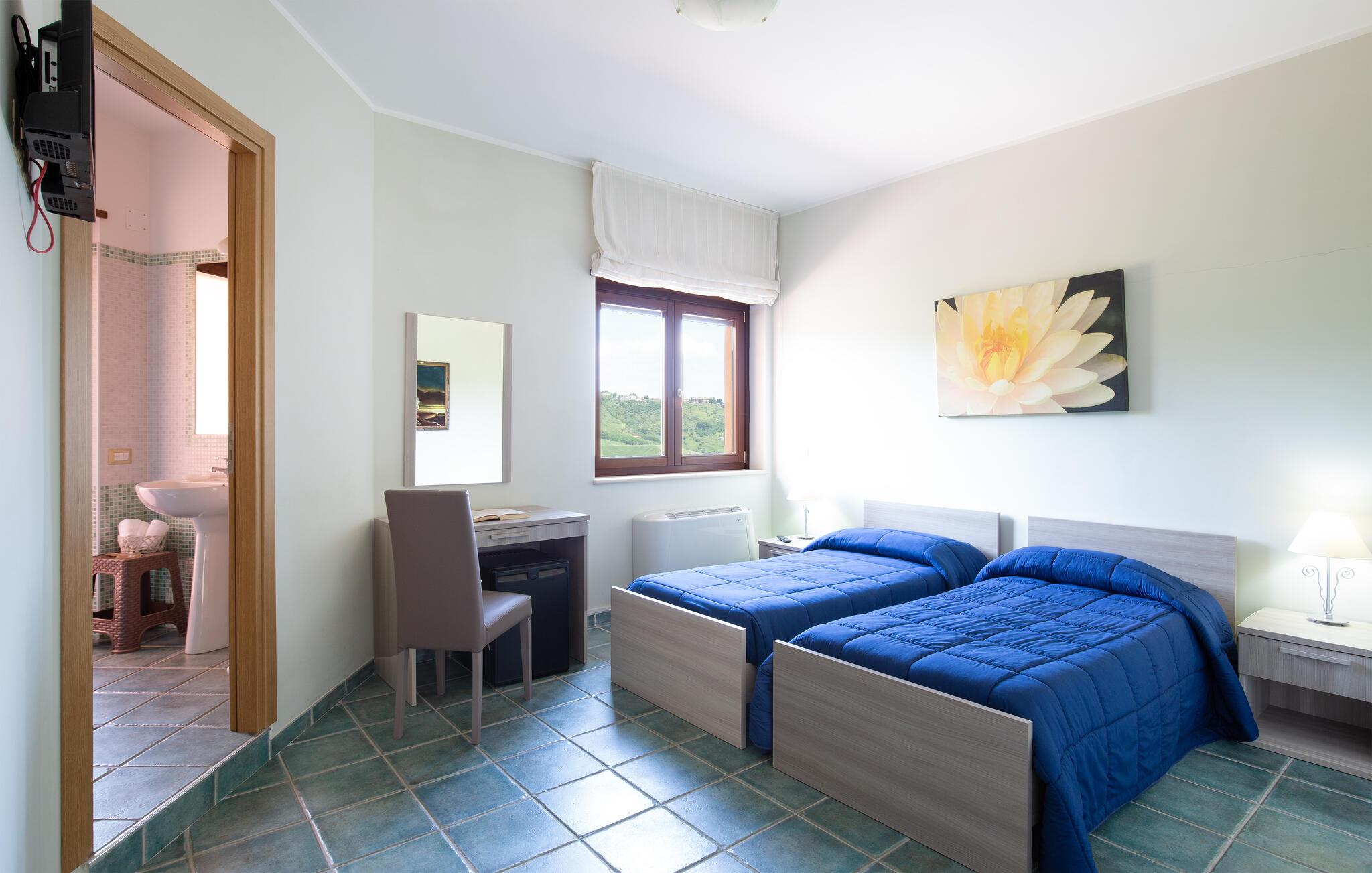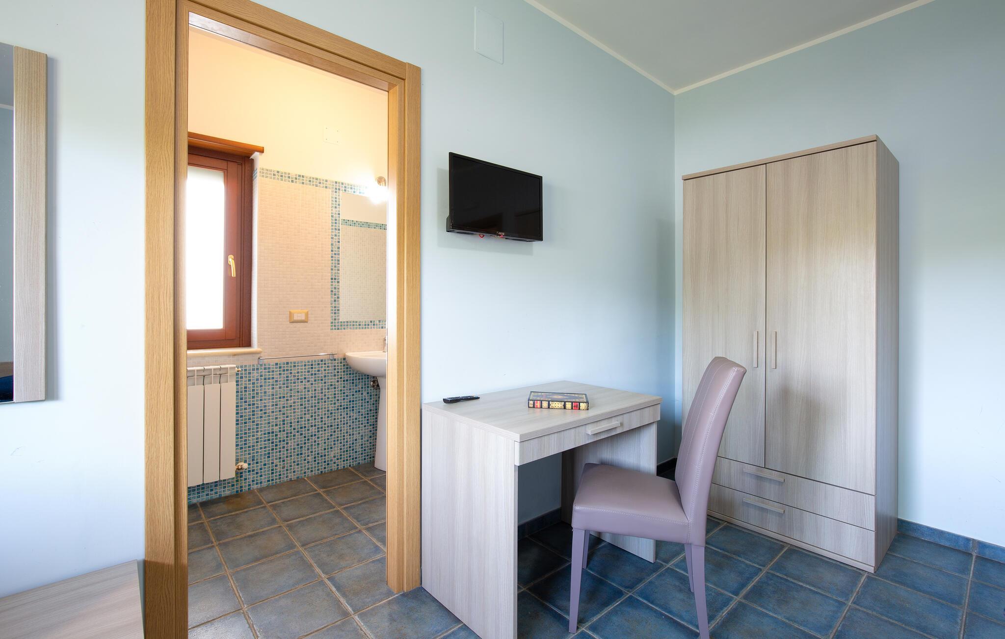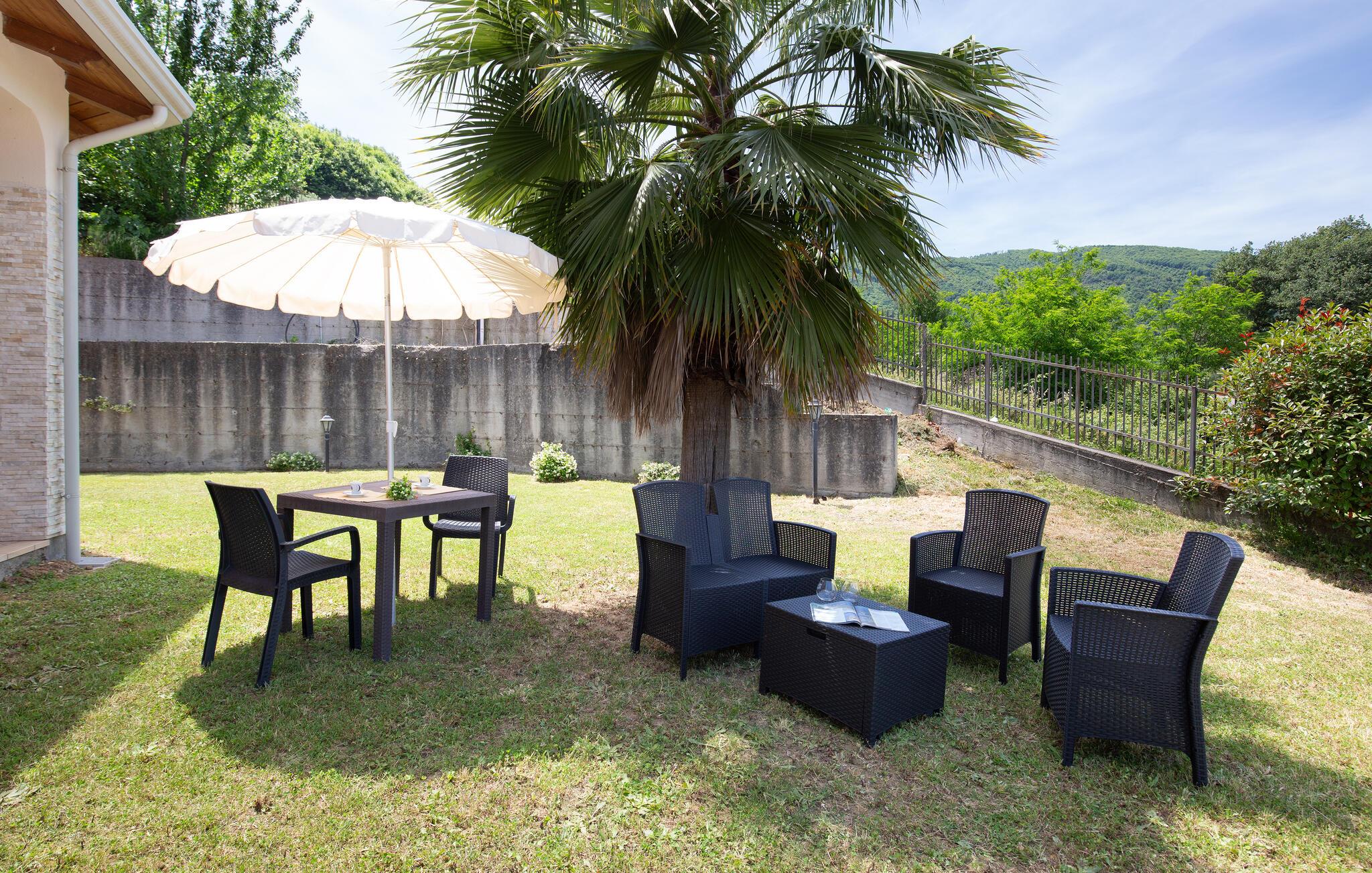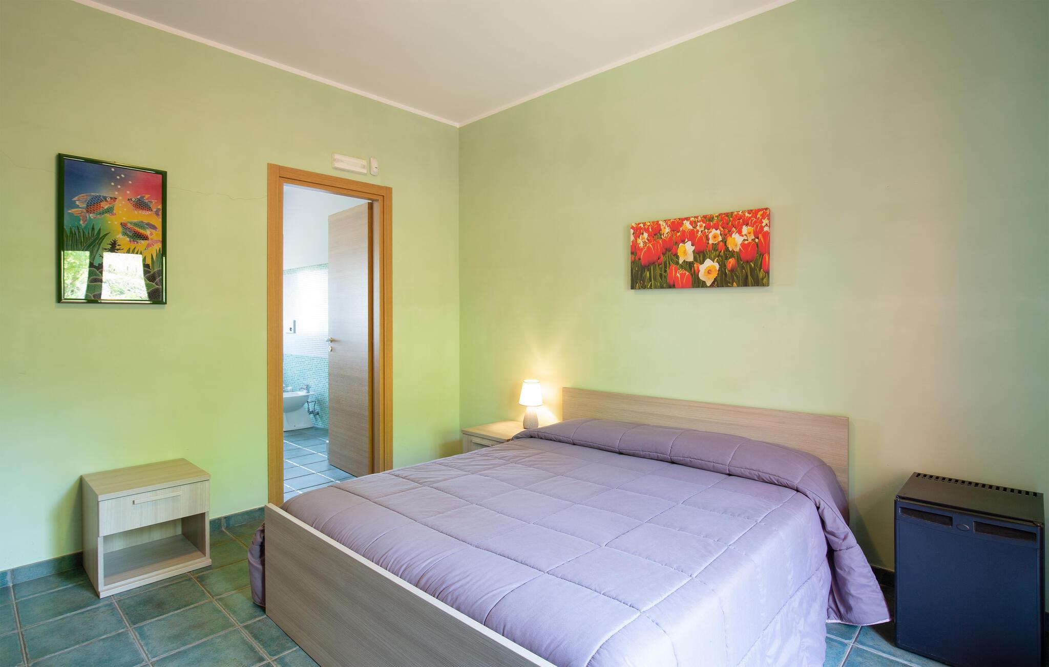 Dette store feriehus ligger i nærheden af Cosenza (5 km) og råder over en legeplads til børnene og grill i indhegnet have. Nyd den flotte udsigt over landskabet af Rende! Ferieboligen er helt perfekt til familier med børn, som gerne vil holde ferie i rolige omgivelser. Alle soveværelser har eget badeværelse med douche. En rummelig og lys stue inviterer til hyggelige og afslappende timer. Spændende udflugtsmål er Sila-Nationalparken (58 km), nationalparken Pollino (93 km) og de flotte byer Maratea (137 km) og Tropea (144 km). Ikke langt fra huset ligger IKK385.
