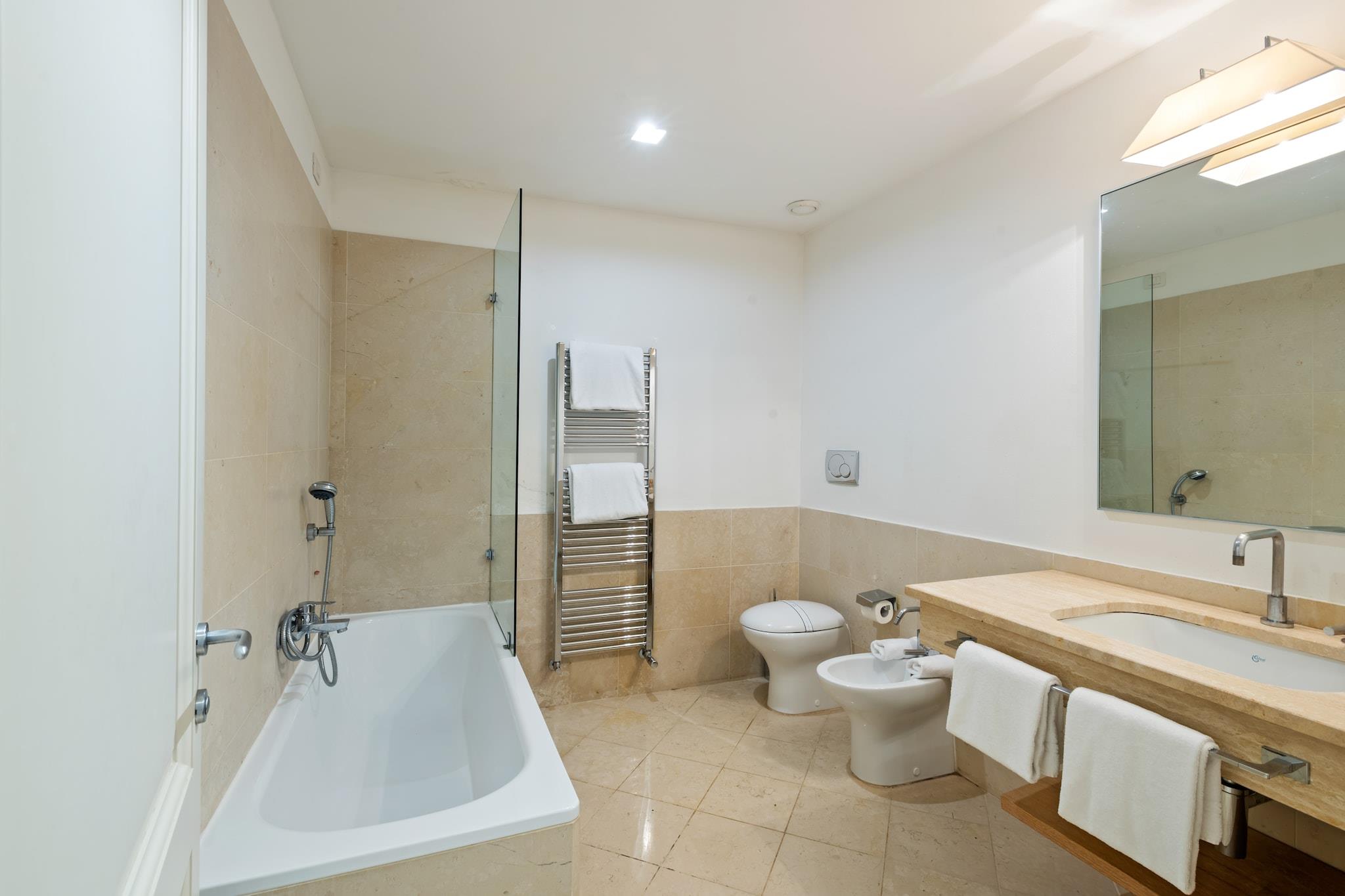 Stueetage: (åbent køkken(ovn, mikrobølgeovn, opvaskemaskine , køle-fryseskab), stue / spisestue(Fjernsyn(parabol)), soveværelse(dobbeltseng), soveværelse(dobbeltseng), badeværelse(badekar med bruser, håndvask, toilet, bidet), badeværelse(badekar med bruser, håndvask, toilet, bidet)) vaskemaskine, varme(elektrisk, central), klimaanlæg, have(deles med andre gæster), havemøbler, parkering, swimmingpool(deles med andre gæster, 20 x 12 m., opened from 1/2 May upto and including 1/2 Sep)