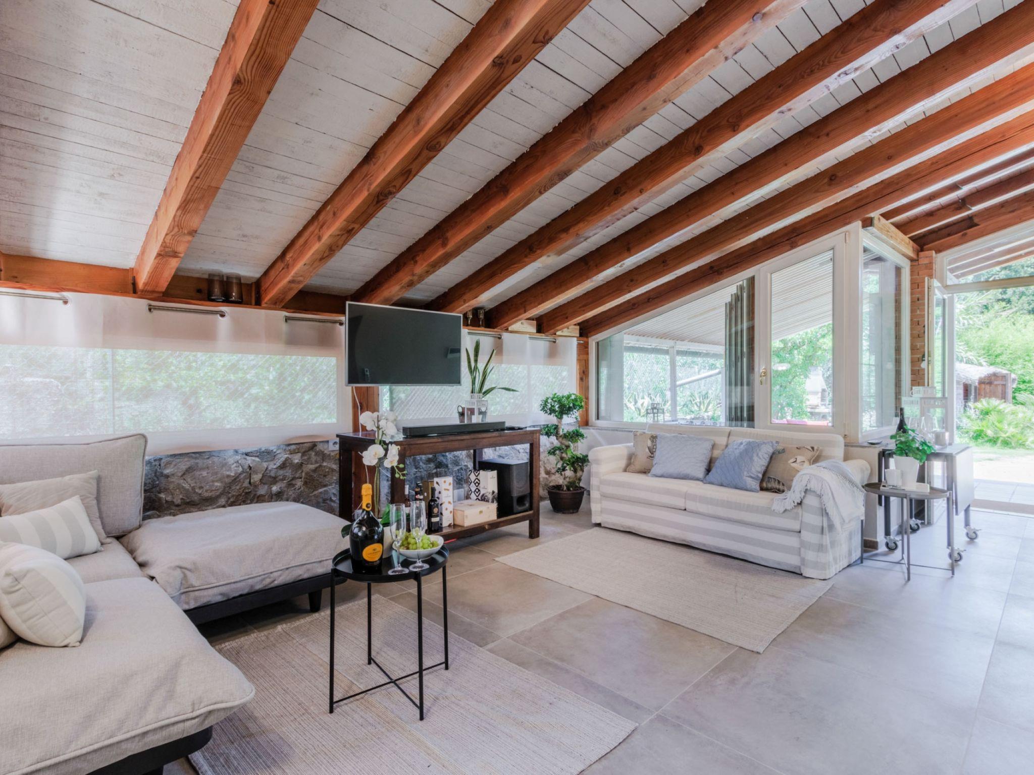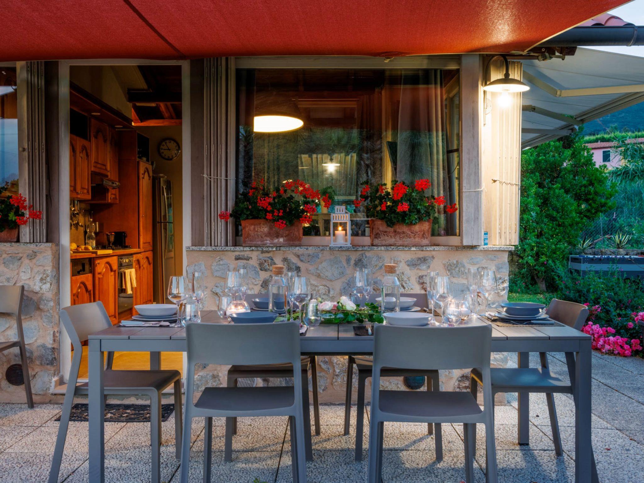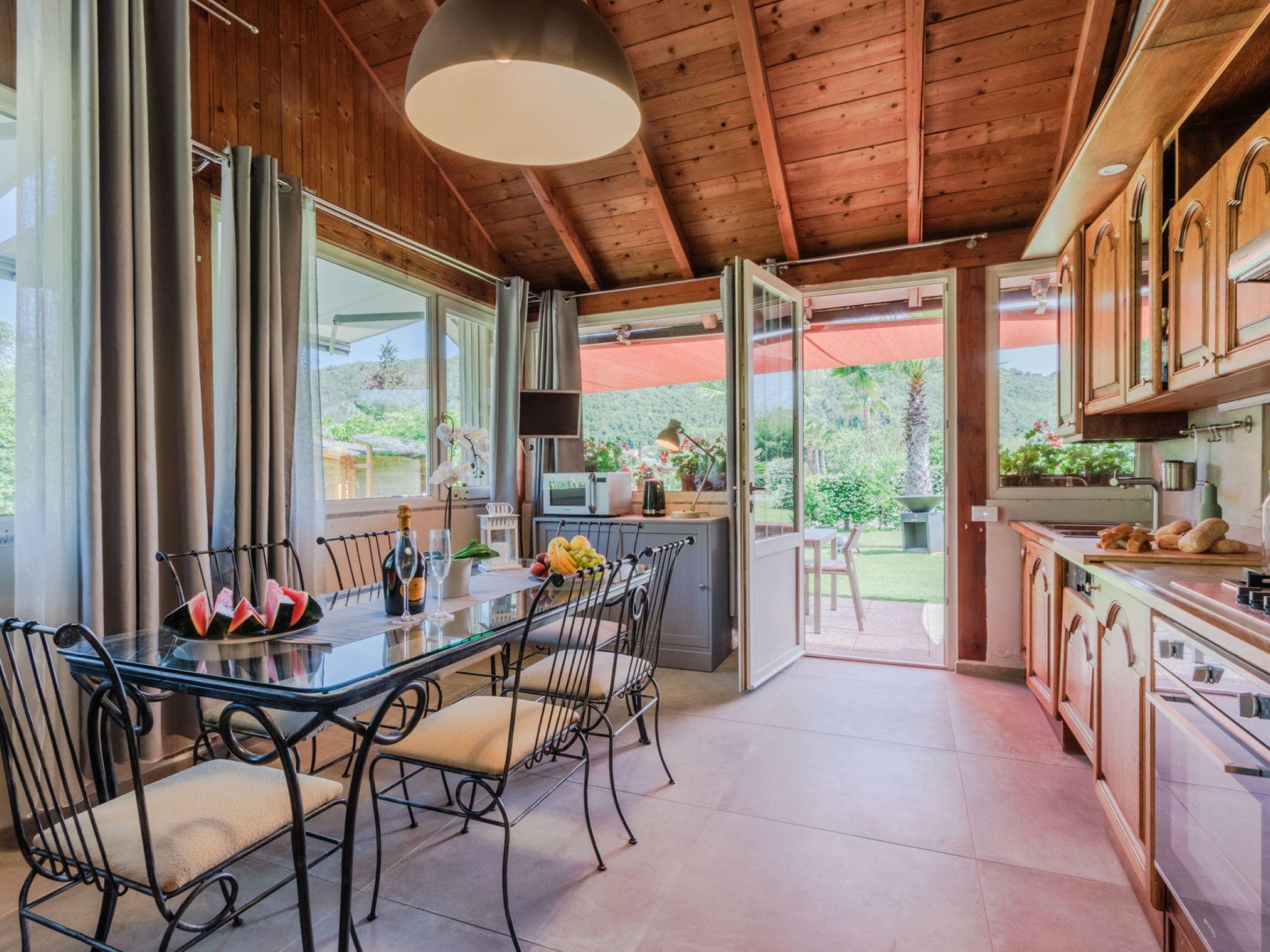 3-room semi-detached house 100 m2, on the ground floor. Fully renovated in 2023, modern and tasteful furnishings: living room with 1 double sofabed and TV. Exit to the garden, to the terrace. 1 large room with 1 double bed (170 cm, length 220 cm), shower/bidet/WC. 1 room with panoramic window with 1 bed and 1 pull-out bed. Exit to the terrace. Kitchen (oven, dishwasher, 5 gas rings, toaster, kettle, microwave, electric coffee machine) with dining table. Exit to the terrace. Shower/bidet/WC. Air-conditioning, forced-air heating. 2 large terraces covered, patio. Terrace furniture, barbecue electric barbecue (portable), deck chairs, conservatory. Beautiful view of the garden. Facilities: baby cot for up to 2 year olds, hair dryer. Internet (WiFi, free). Parking (roofed). Please note: maximum 1 pet/ dog allowed. Private entrance. IT049021C2XR5WGVPO