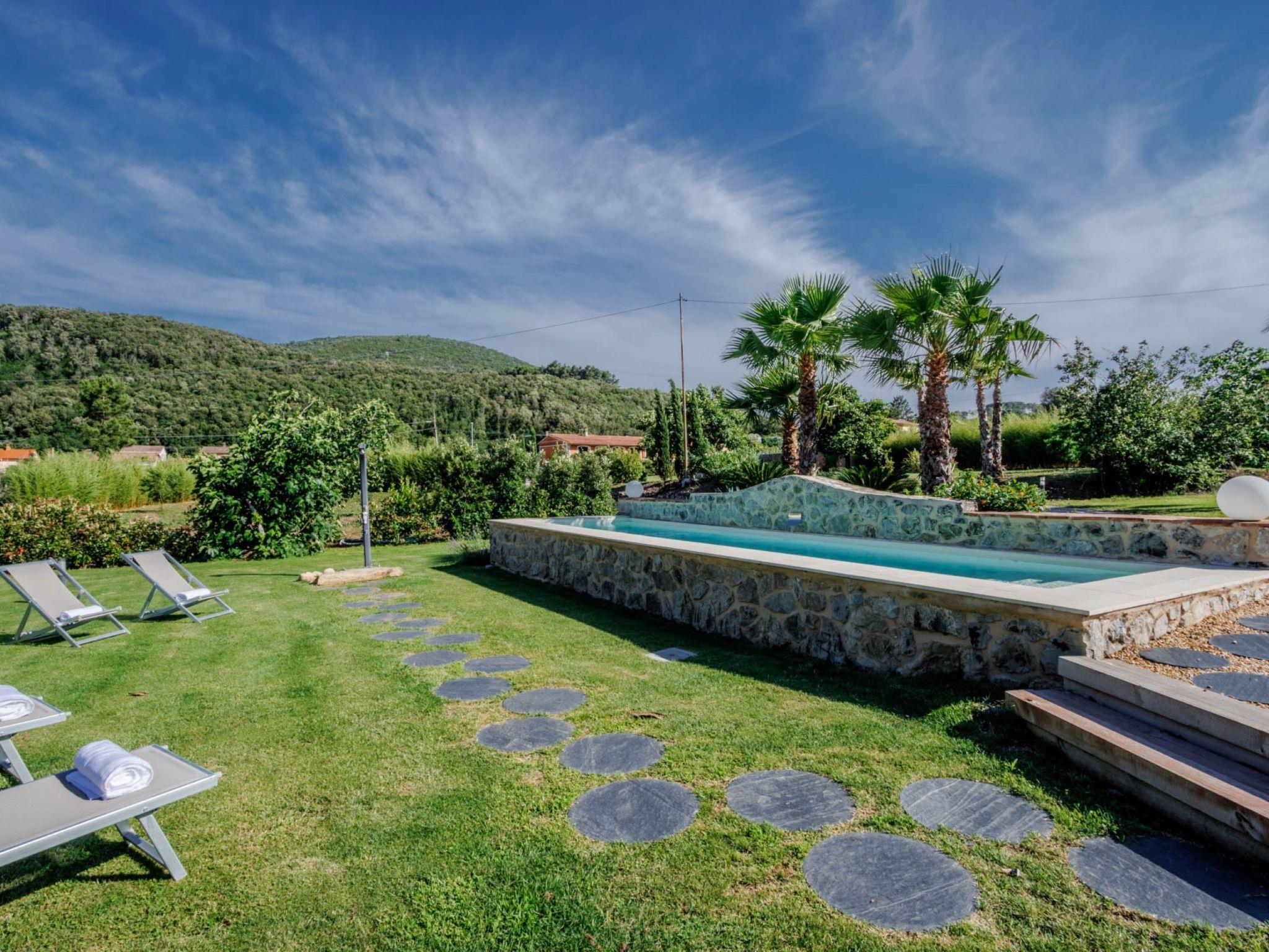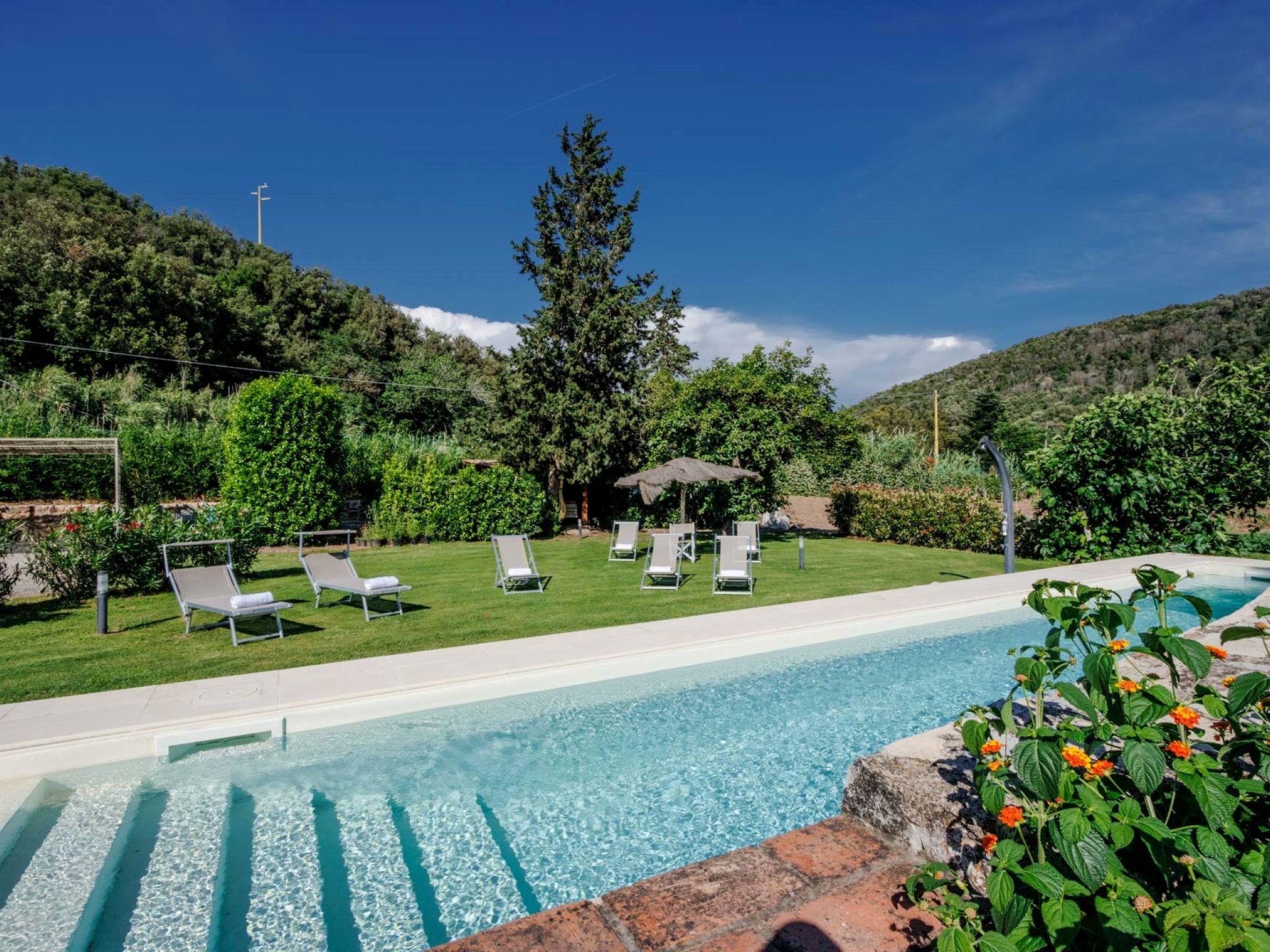 Very beautiful, comfortable villa "Serena", renovated in 2023, surrounded by trees and meadows. 2 m from the centre of Rio Marina, in a quiet, sunny position, 2 km from the sea, 3 km from the beach, in the countryside. Private: large garden with lawn and wildlife garden, swimming pool (9 x 3 m, seasonal availability: 01.Apr. - 15.Oct.) with salt water. Outdoor shower, garden furniture. In the house: roof terrace, washing machine, tumble dryer (for shared use). Roofed, parking on the premises. Shop 1.5 km, supermarket 400 m, restaurant 1.5 km, bar 2 km, bicycle rental 1.5 km, sandy beach "Ortano" 3 km. Tennis 50 m. Nearby attractions: Porto Azzurro 10 km, Cavo 8 km, Portoferraio 16 km, La Biodola 20 km, Capoliveri 15 km.