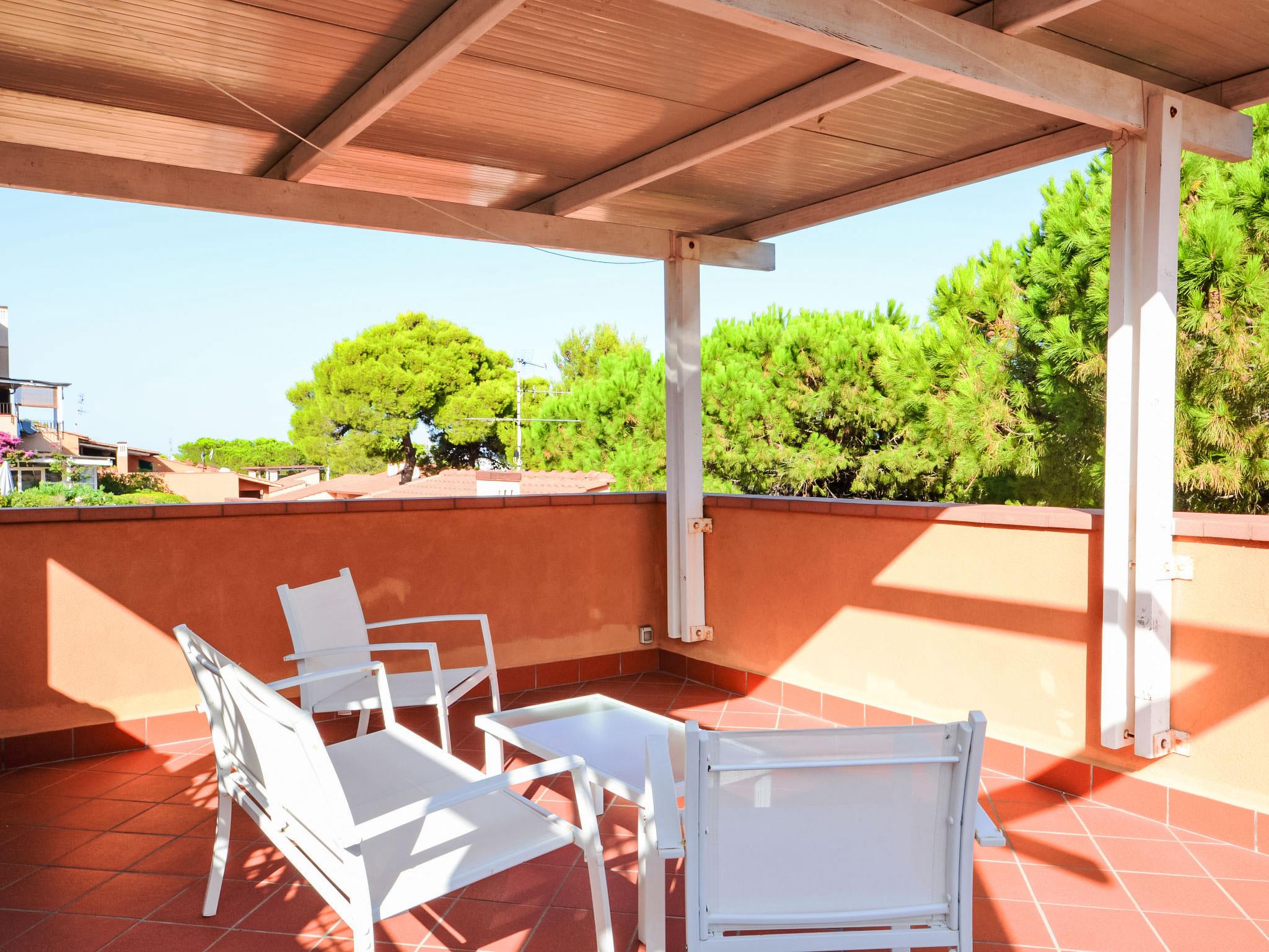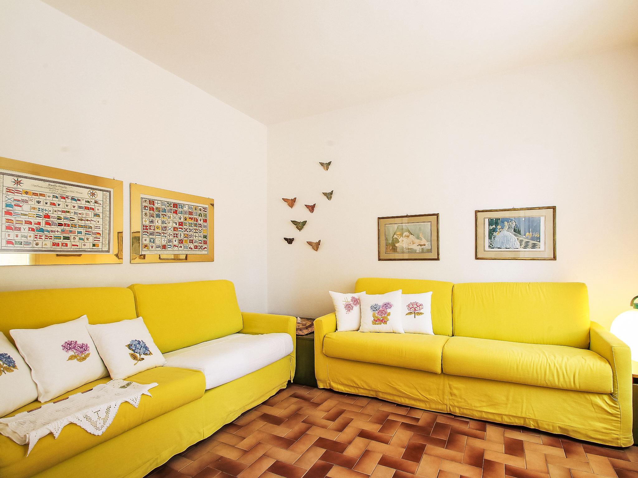 2-room apartment 45 m2, on the upper ground floor. Simple furnishings: living room with 1 double sofabed, dining table, TV and air conditioning. Exit to the balcony, to the terrace. 1 room with 2 beds and 1 pull-out bed. Kitchenette (4 hot plates, dishwasher). Shower/bidet/WC. Small balcony, large terrace. Terrace furniture, deck chairs, sitting area. Partial view of the sea. Facilities: washing machine. Internet (WiFi, free). Parking (1 car). Please note: private entrance. IT049021C29E98HUME