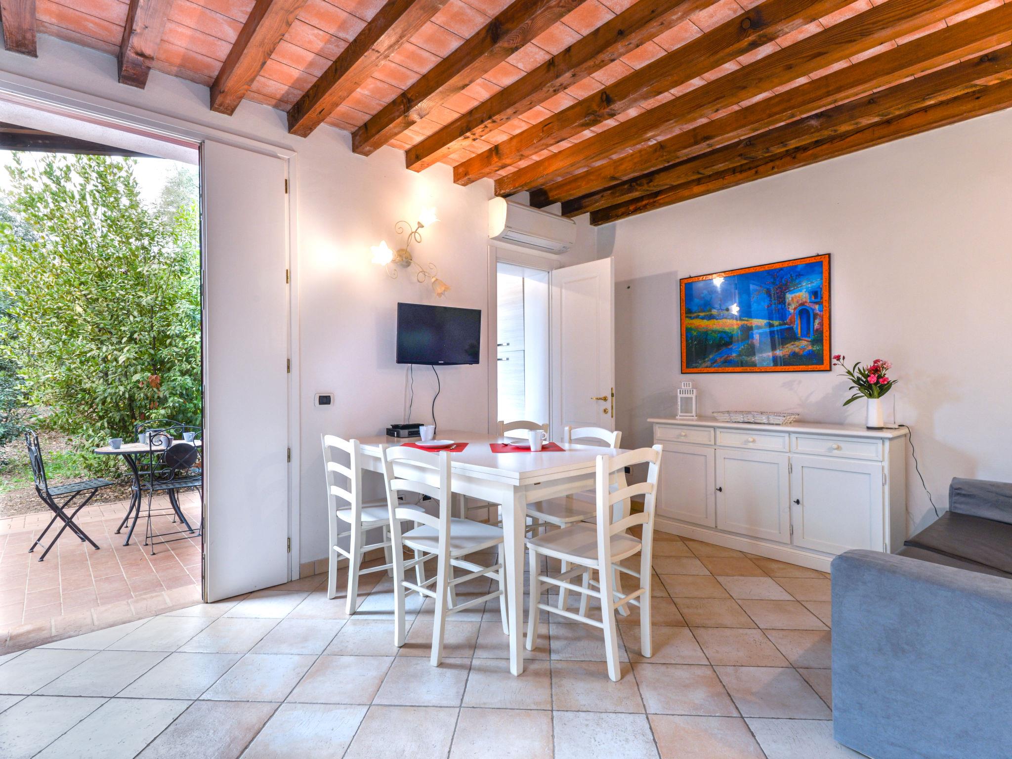 3-room house 61 m2 on 2 levels. Practical and cosy furnishings: living/sleeping room with 1 double sofabed, dining table and satellite TV. Exit to the terrace. 1 double bedroom. Exit to the garden. Small, open kitchen (oven, 4 gas rings). Exit to the terrace. Shower/bidet/WC. Upper floor: 1 room with 2 beds (80 cm), air conditioning. Air-conditioning, forced-air heating. Terrace roofed. Terrace furniture. Facilities: baby cot for up to 2 year olds. Internet (WiFi, free). Please note: non-smokers only. Maximum 1 pet/ dog allowed. Private entrance. IT049021B4K8XGEPA7