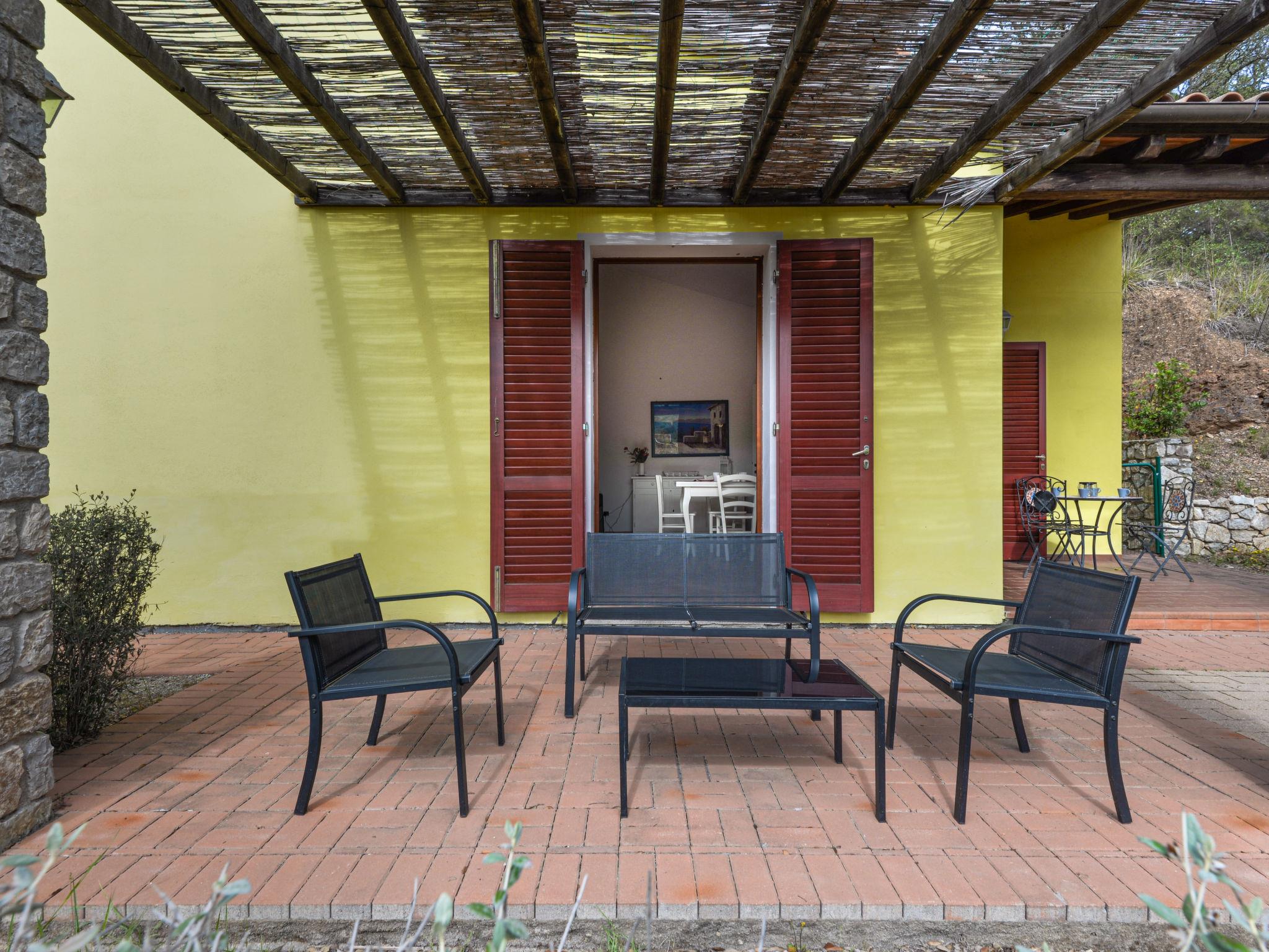 Cosy residence "Mezzo Ortano", surrounded by trees. 10 houses in the residence. 2 km from the centre of Rio nell'Elba, 4 km from the centre of Rio Marina, in a secluded, quiet position, 1.5 km from the sea, 1.5 km from the beach, in the countryside. For shared use: well-kept terraced garden, 10'000 m2 (not fenced) with plants and trees. 150 m long motor access (via unmade road). Stepped path to the house. Roofed, parking (for 8 cars, limited number of spaces) on the premises, public parking 50 m. Grocery 2 km, supermarket 4 km, restaurant 2 km, bus stop 1.5 km, ferry "Rio Marina" 4 km, sandy beach "Ortano" 1.5 km. Nearby attractions: Porto Azzurro 15 km, Capoliveri 18 km, Monte Capanne 38 km, Portoferraio 17 km. Please note: car recommended.
