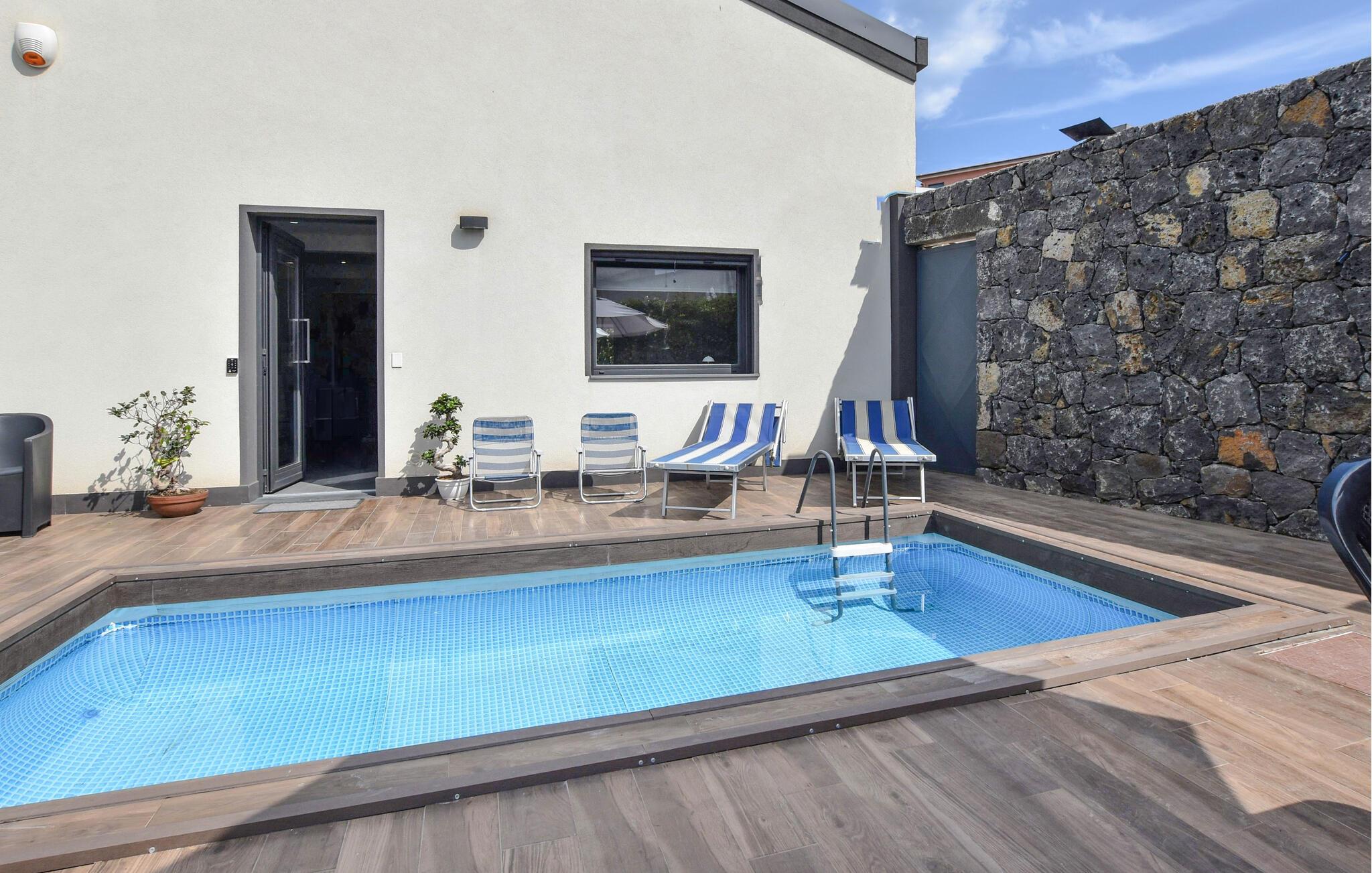 Gå barfodet ud til poolen allerede fra morgenstunden og tag en forfriskende dukkert. Tank ny energi på solvognen og planlæg dagens oplevelser over en skøn morgenmad i skyggen af parasollen.