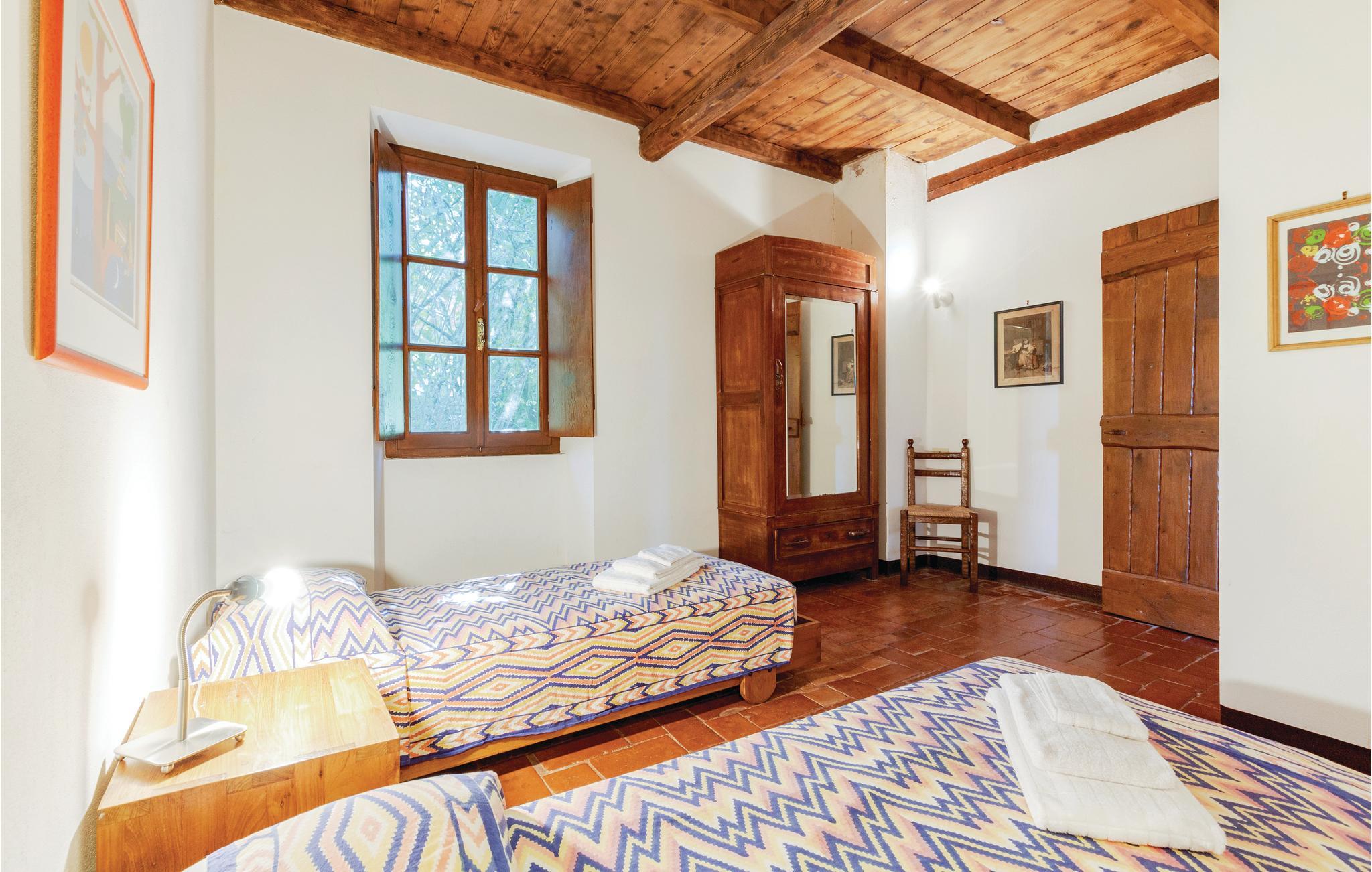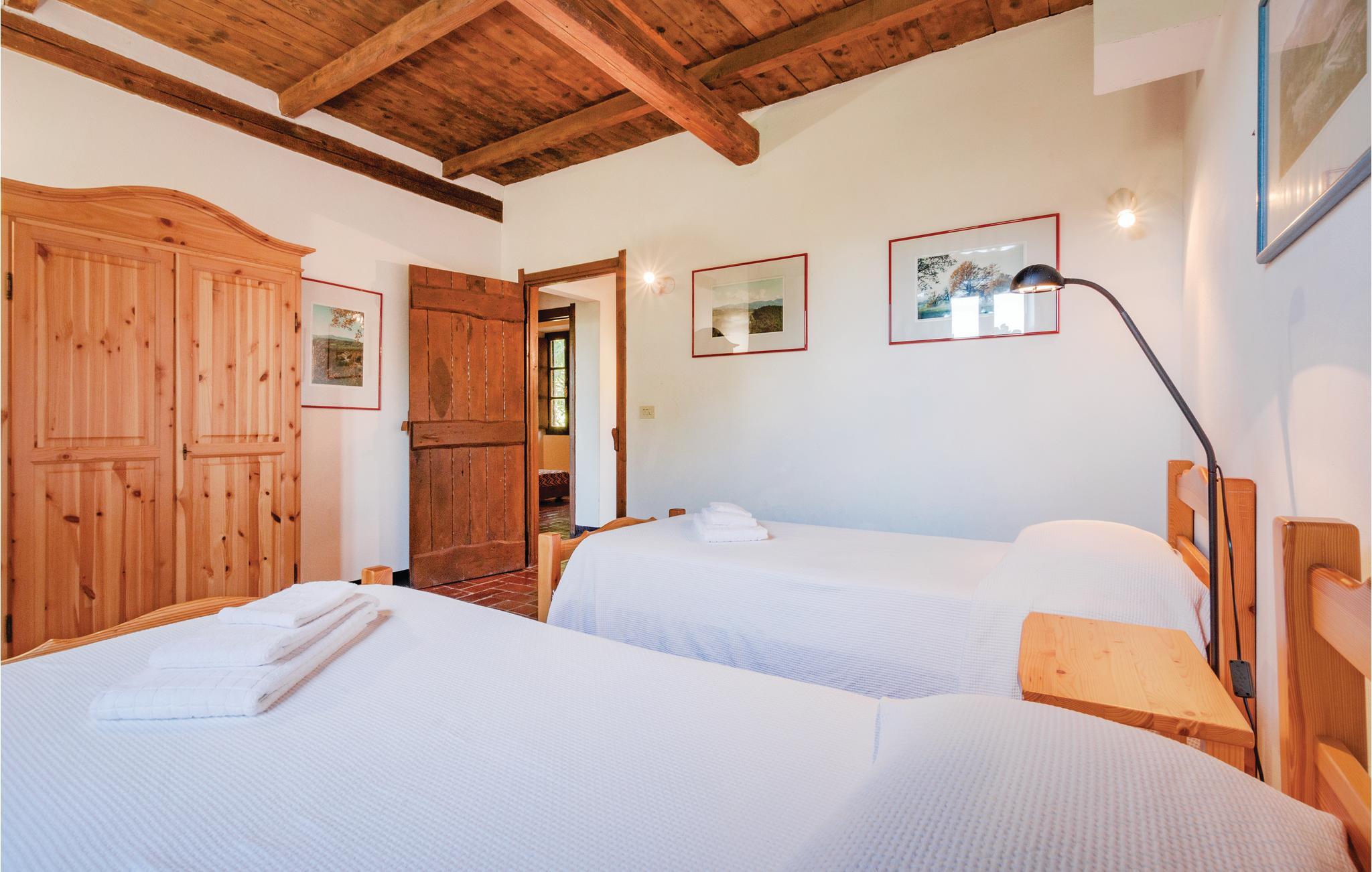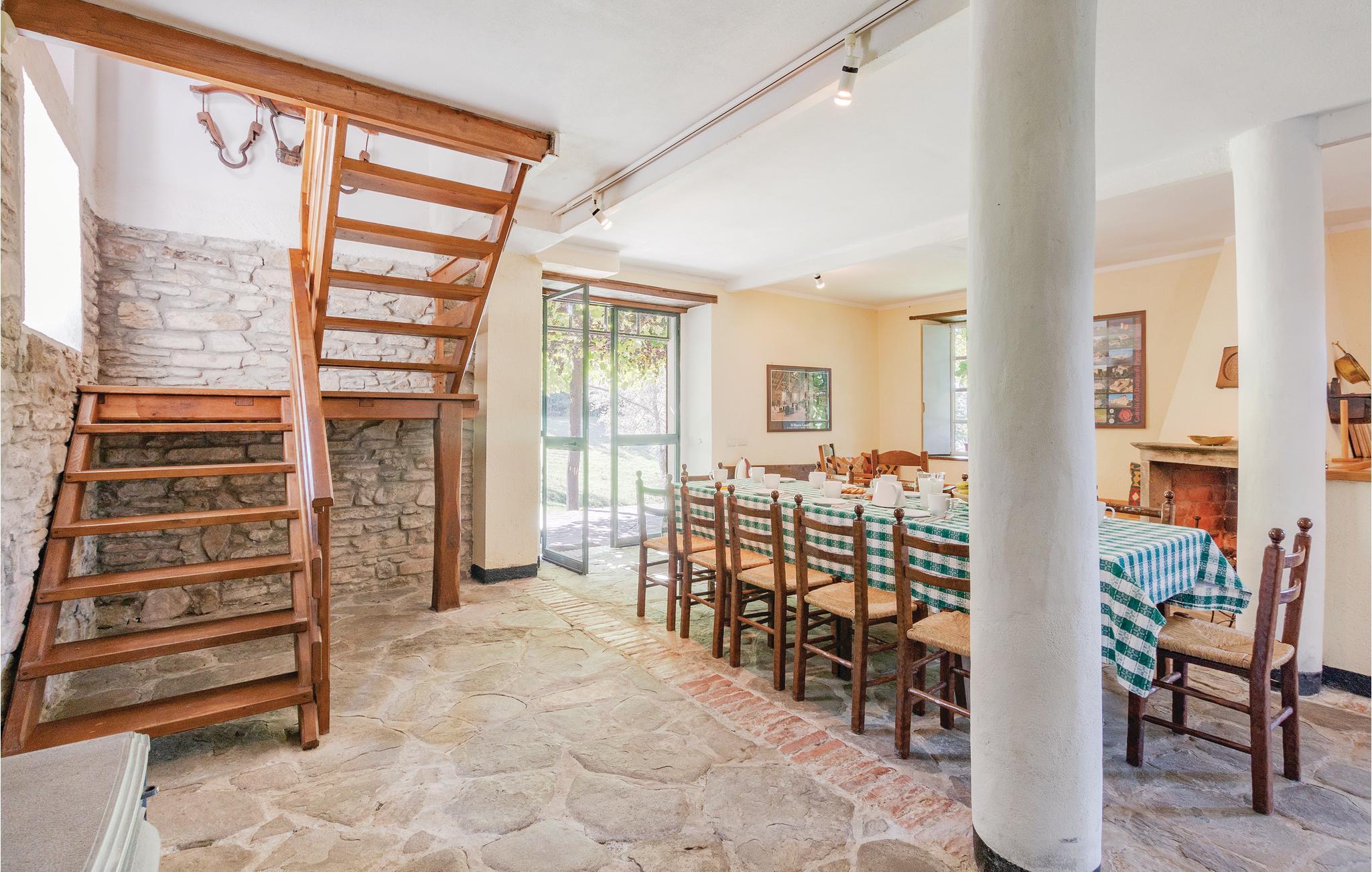 Et yderst attraktivt kompleks med tre traditionelle landhuse beliggende i Ghirardi Regional Nature Reserve og WWF Oasis. Komplekset udlejes samlet, men hvert af de tre huse er selvstændigt, hvilket betyder, at det har eget badeværelse og køkken (hvilket giver en vis grad af privatliv). Plads til 12 personer. Stor overdækket terrasse med indbygget grill. Brændeovn. Opvaskemaskine og vaskemaskine. Tre overdækkede parkeringspladser. Ghirardi Nature Reserve ligger i en højde af 600-700 meter, beliggende i Appenninerne mellem regionerne Toscana, Ligurien og Emilia-Romagna. Skønheden i dette 600 hektar store reservat med dets bakker, skove og marker er betagende. Ghirardis fred og ro indbyder til vandreture. Dagsture til de omkringliggende bjerge, den liguriske kyst og adskillige byer er også let tilgængelige. Naturreservatet kan nås i bil via en 3-5 km lang grusvej, der er reserveret til gæster og lukket for offentligheden. Kontaktpersonerne kan efter anmodning tilberede kulinariske specialiteter eller levere lokale økologiske produkter (brød, pizza, kager, æg, grøntsager, frugt, vin, olie, marmelade osv.). Se også ITL102-103 (2 km væk).