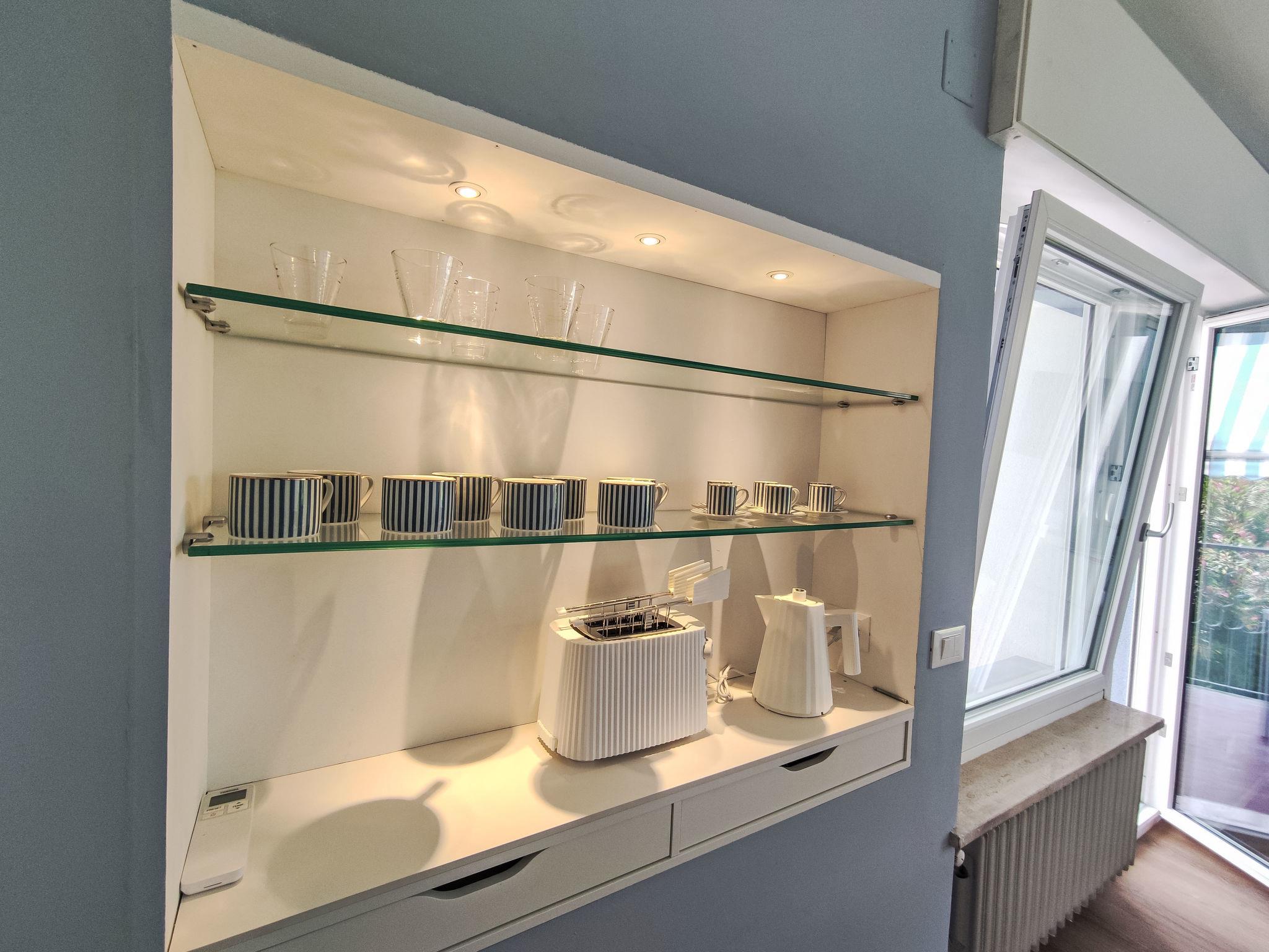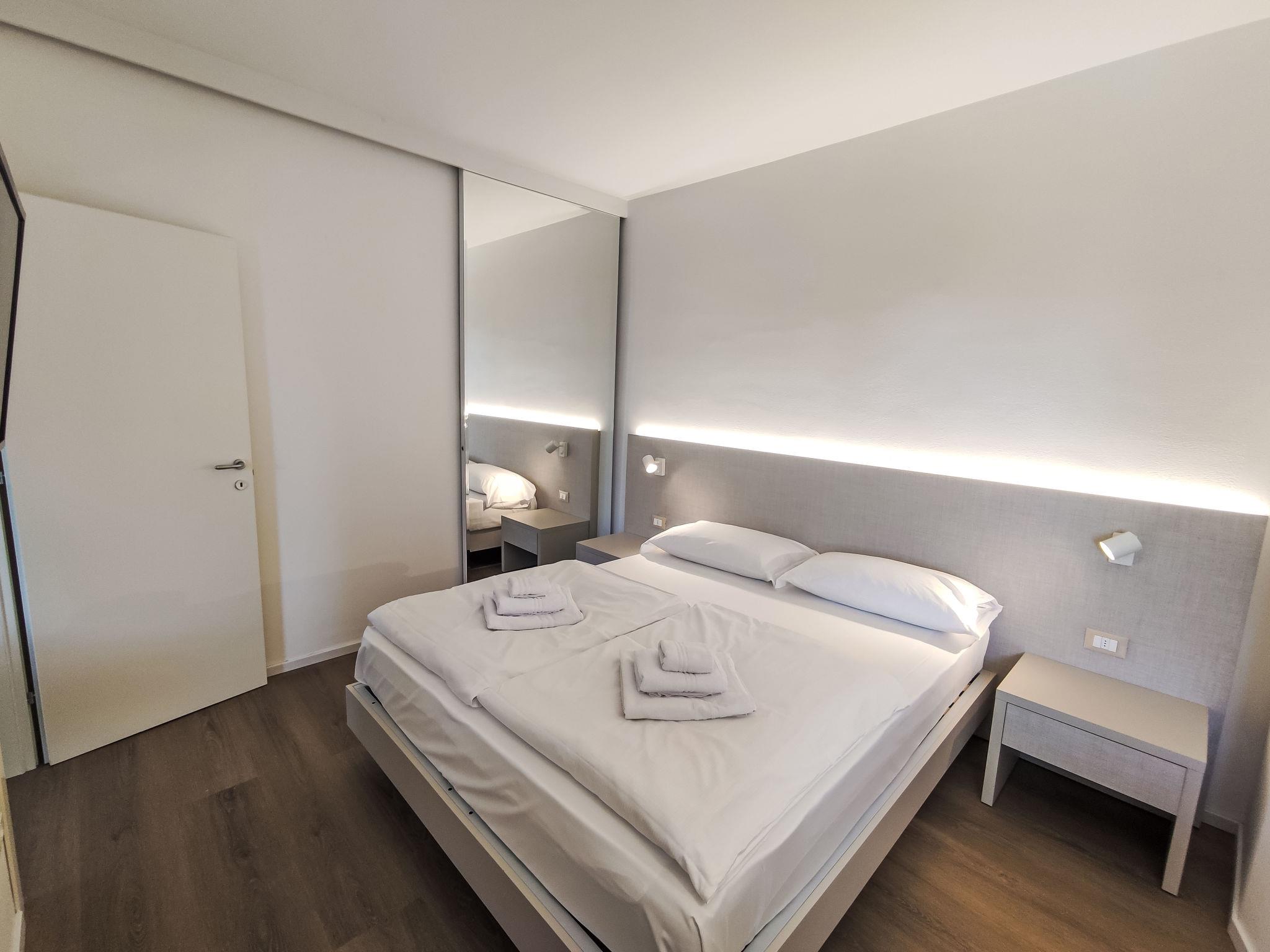 Riva del Garda: Very modern, comfortable apartment block "Condominio Garda". 70 apartments in the property. In the centre of Riva del Garda, in a central, sunny position in the residential district, 50 m from the lake, 50 m from the beach, direct access to the beach, direct access to the lagoon, south-east facing position. For shared use: with natural garden 500 m2 (fenced), lawn for sunbathing, beautiful garden to relax, natural pond. In the complex: reception, lounge, WiFi, relaxation room, table tennis, lift, storage room for bicycles. Linen change weekly (suppl. charge extra). Towel change weekly (suppl. charge extra). Room cleaning weekly on request (extra). Roofed, parking at the house. E-charging station. Grocery 100 m, supermarket, shopping centre 200 m, restaurant, bar 30 m, bakery 100 m, pedestrian zone 50 m, bicycle rental, pub garden 100 m, 5 minute walk to the centre, bus stop 50 m, railway station "Rovereto" 17 km, ferry "San Nicolò" 500 m, pebble beach "Sabbioni" 50 m, thermal baths "Garda Therme" 4 km, lake Garda 50 m. Golf course (18 hole) 4 km, surf school, sailing school 50 m, tennis 2 km, indoor tennis centre 1 km, minigolf 4 km, riding stable 4 km, walking paths from the house, cycle lane, children's playground 50 m. Nearby attractions: Castello di Arco 5 km, Trento 44 km, Terme di Sirmione 90 km, Gardaland 62 km, Climbing Stadium Arco 5 km, Stazione dei Bus 2 km. Well-known ski regions can easily be reached: Pinzolo - Madona di Campiglio 58 km. Well-known lakes can easily be reached: Lago di Ledro 14 km, Lago di Tenno 14 km, Lago di Molveno 50 km. Hiking paths: Ferrata Cima SAT 1 km, Ferrata Colodri 4 km, Pista Ciclabile Riva - Torbole - Sarche 50 m. Please note: private mooring. The complex has night security. Motorway close by 18 km from the property. Railway line closeby 20 km from the property. Airfield 90 km from the property. Neighbourhood highly sensitive to noise. Quietness and good behaviour expected.