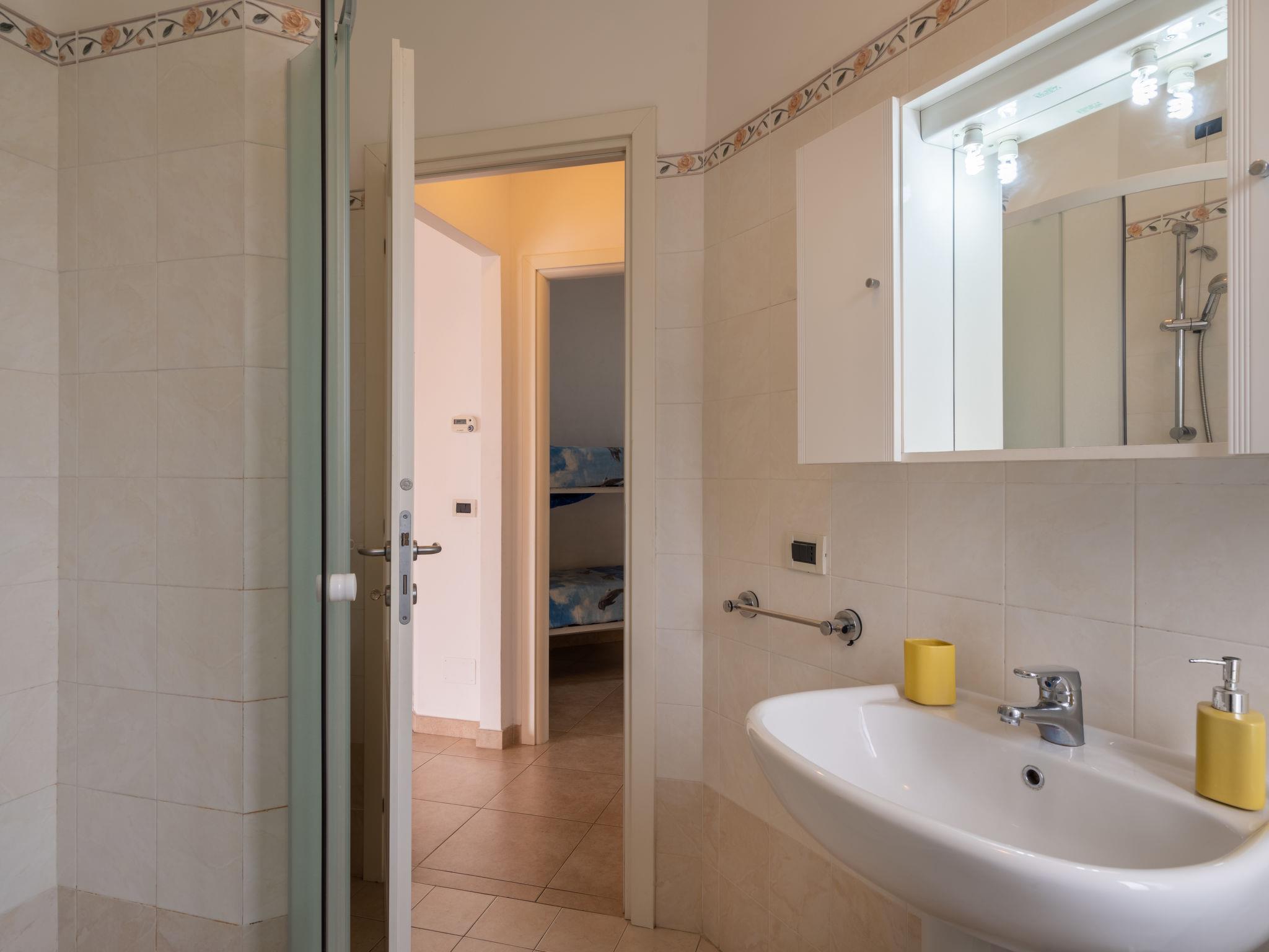 3-room apartment 70 m2, on the ground floor. Bright, practical furnishings: living/sleeping room with 1 double sofabed (140 cm), dining table and cable TV. Exit to the garden. 1 room with 1 french bed (160 cm). 1 room with 1 x 2 bunk beds (80 cm). Open kitchen (oven, dishwasher, 4 gas rings, toaster, kettle, freezer). Shower/bidet/WC. Gas heating. Heating available only from 15.10. to 30.04. Terrace. Terrace furniture, deck chairs (2). Partial view of the sea. Facilities: washing machine, iron, children's high chair, baby cot, hair dryer. Internet (WiFi, free). Garage at the house, height 210 cm, width 220 cm. Please note: suitable for families. Private entrance. No mandatory extra charges to be paid on-site. Bedlinen, towels, final cleaning and all energy costs are included. IT008050C2LLJWVQLP