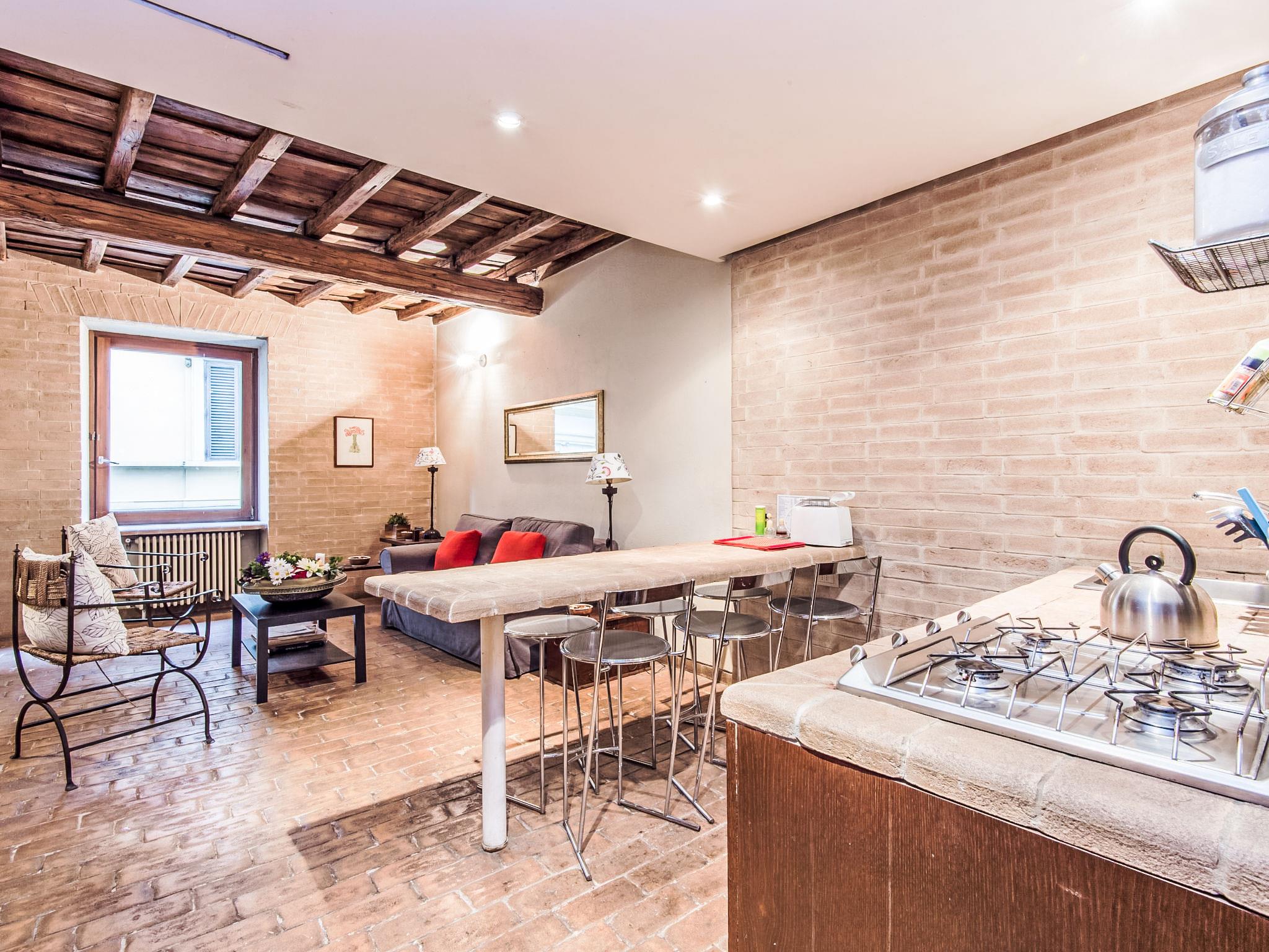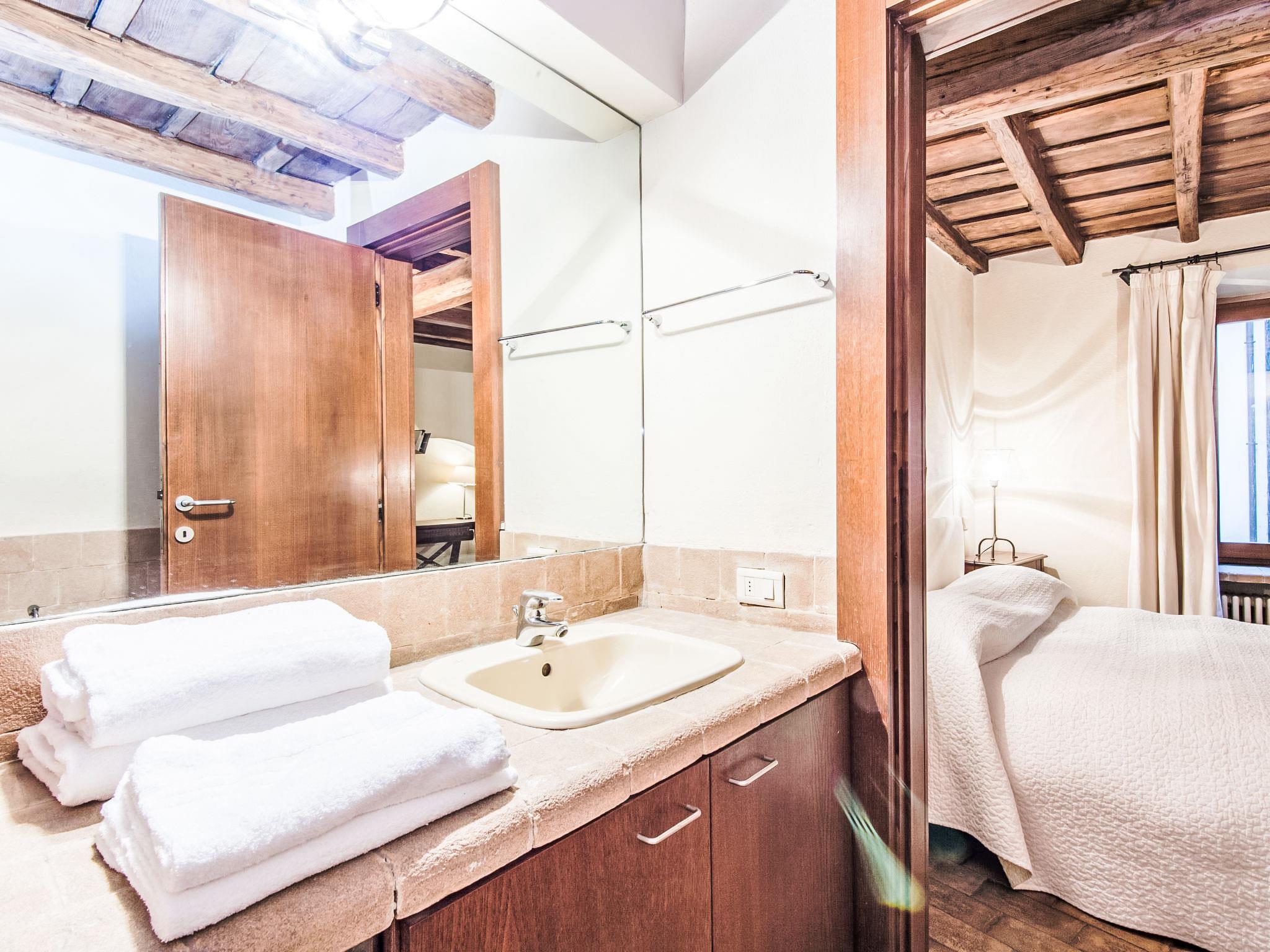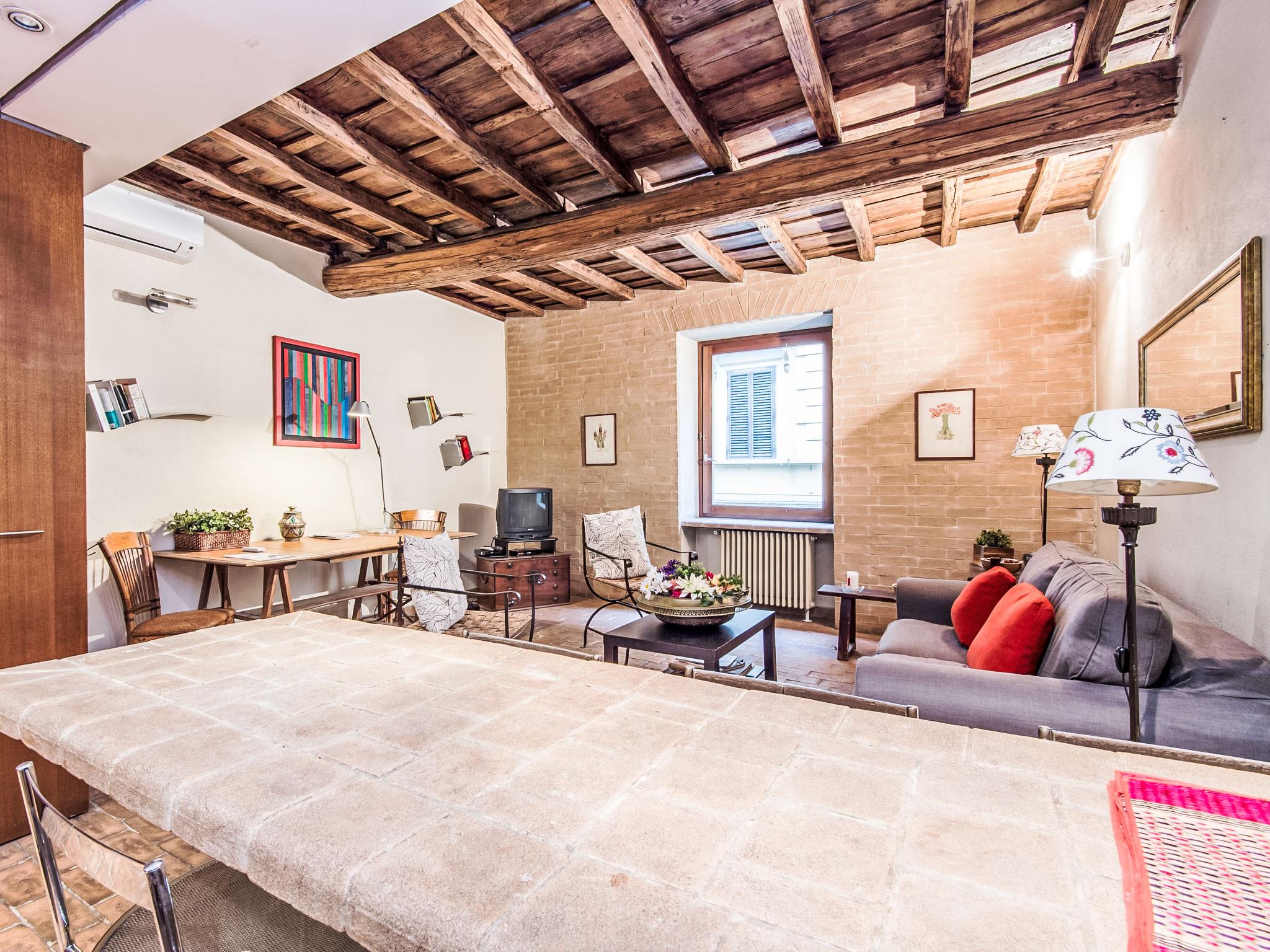 Historical apartment block from the 18th century. In the centre of Roma, in the district Campo dei Fiori, in the heart of the city. Airport transfer (extra). Shop 100 m, grocery 200 m, supermarket, restaurant 50 m, bar, tram "Largo di Torre Argentina" 500 m, bus stop "Corso Vittorio Emanuele Navona", railway station "Termini" 3 km, underground station "Barberini" 2 km. Nearby attractions: Piazza Navona 150 m, Pantheon 600 m, Colosseo 2 km, Vaticano 1.2 km, Campo de'Fiori 300 m, Fontana di Trevi 1.3 km. Please note: car not advisable, no lift. The apartment is located in a zone with limited traffic. Check in after 22.00h extra 30 euro, after 24.00h extra 50 euro, at the arrival to be paid.