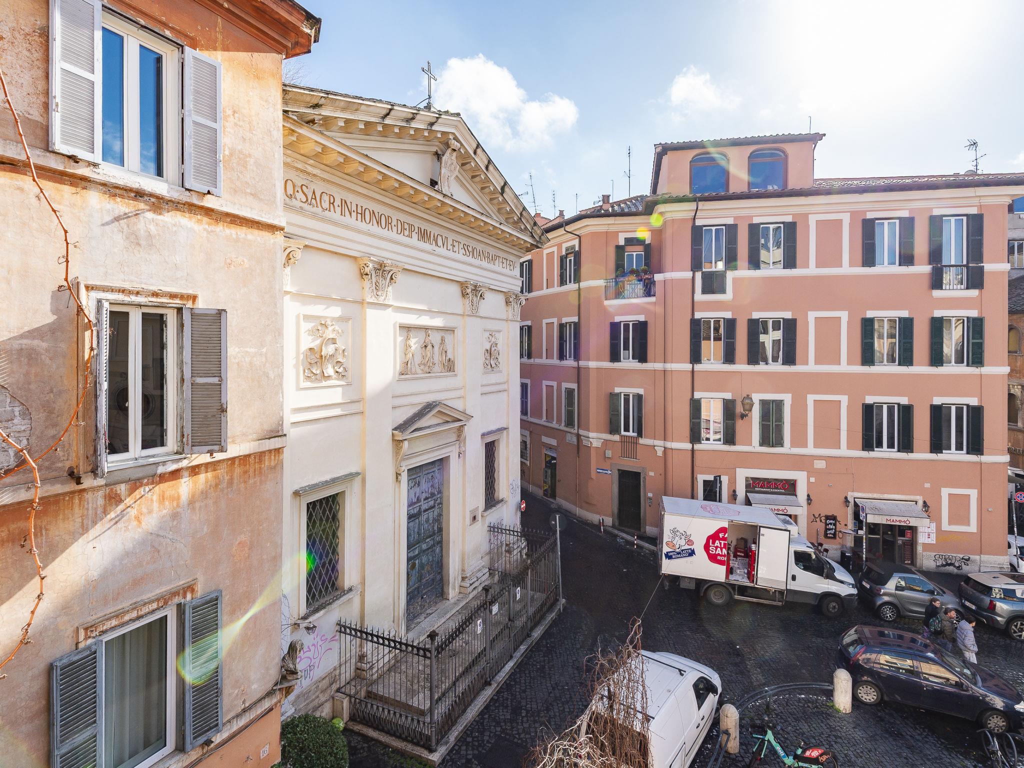 Roma Trastevere: Historical apartment block. 2 km from the centre of Città del Vaticano, in the district Trastevere, in a central position. Bus stop 200 m, railway station "Termini" 3.5 km, underground station "Cavour" 2.5 km. Nearby attractions: Campo de' Fiori 600 m, Piazza Navona 1 km, Pantheon 1.3 km, Foro Romano 1.9 km, Fontana di Trevi 2 km, Colosseo 2.5 km. Please note: no lift.